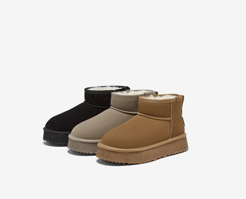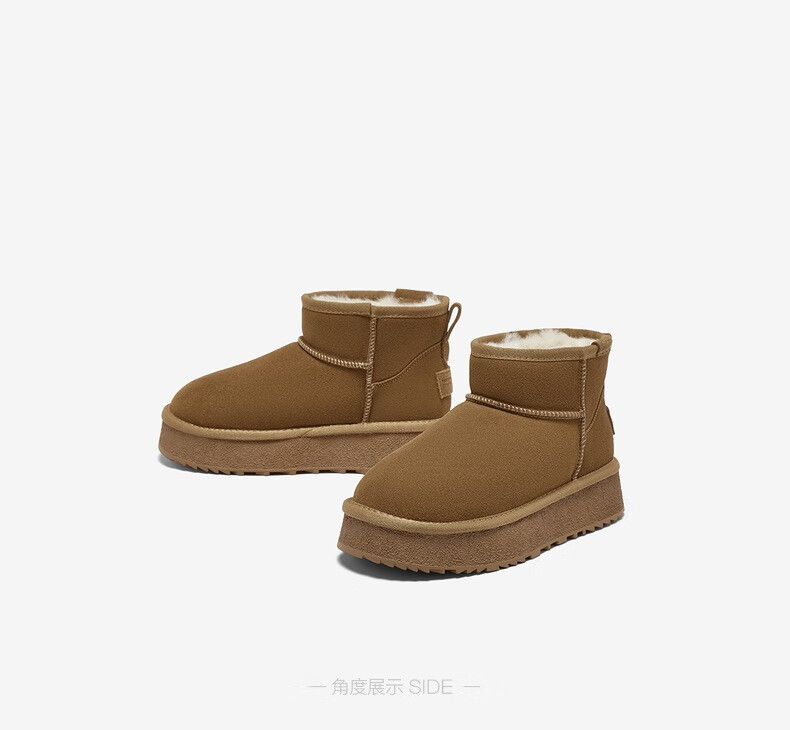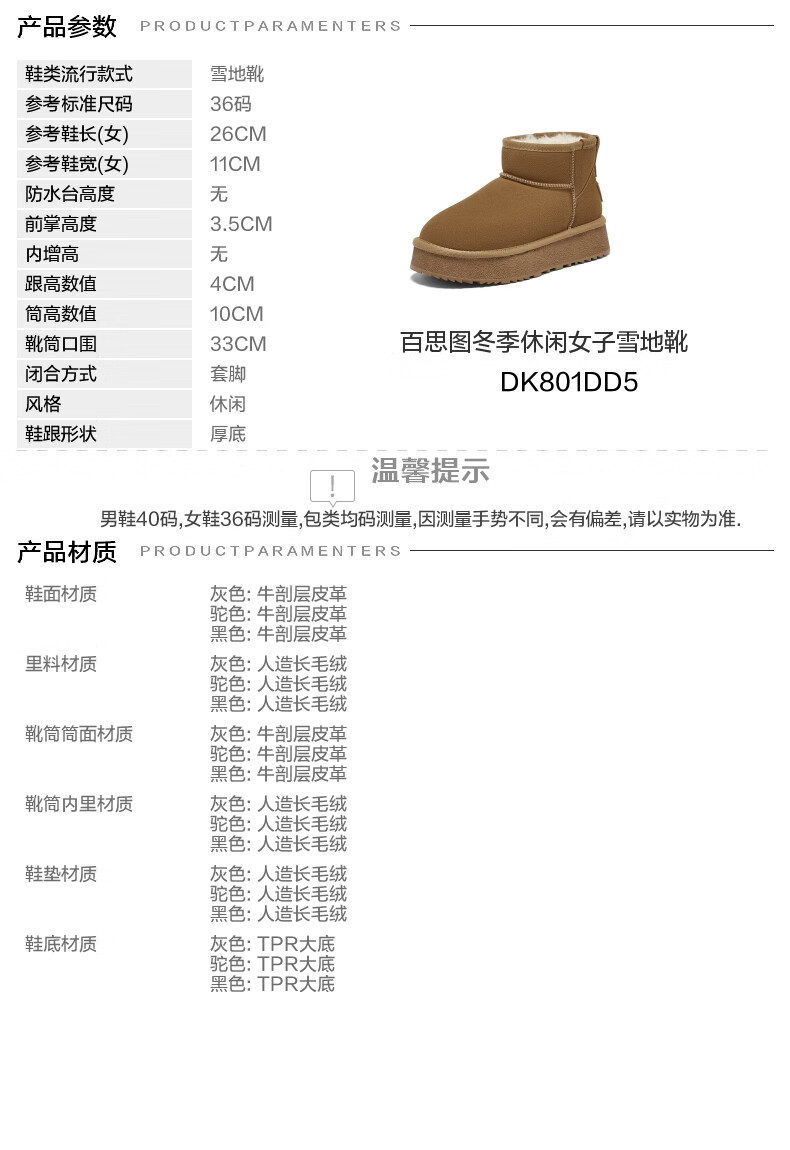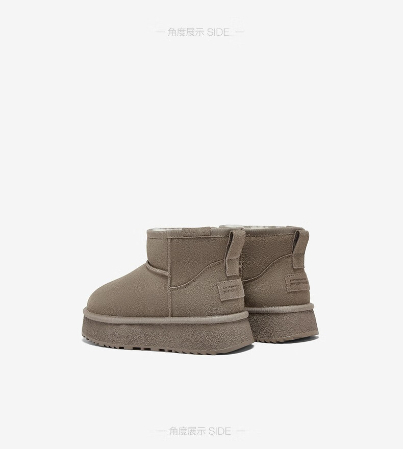 百思图2025冬季新款雪地靴时尚简约户外休闲厚底女短靴DK801DD5【预售】 灰色 34