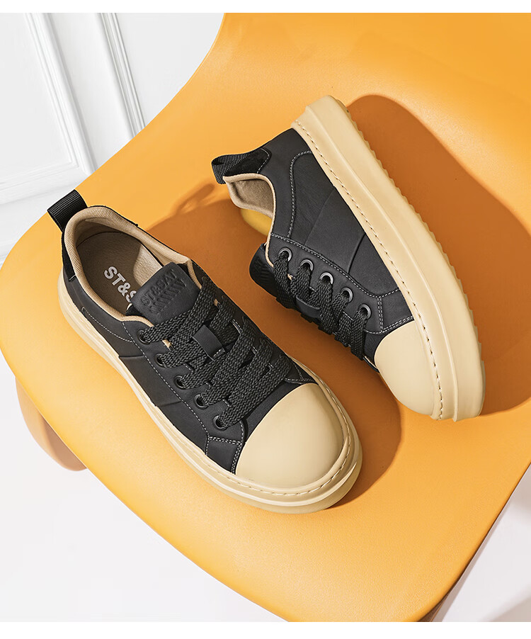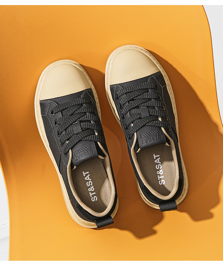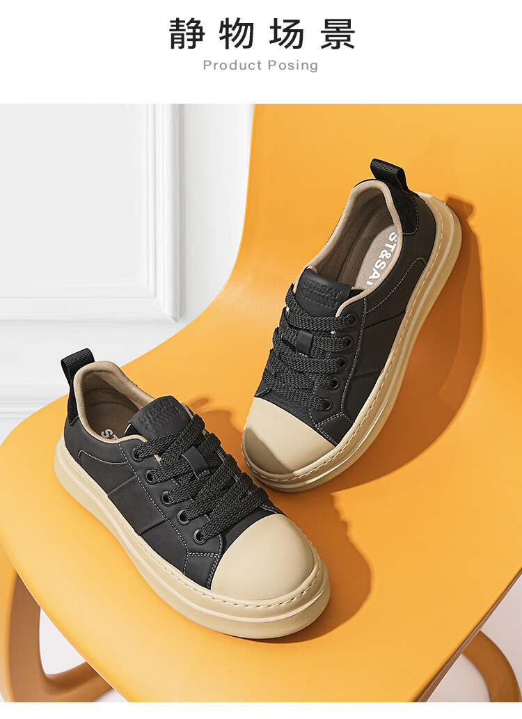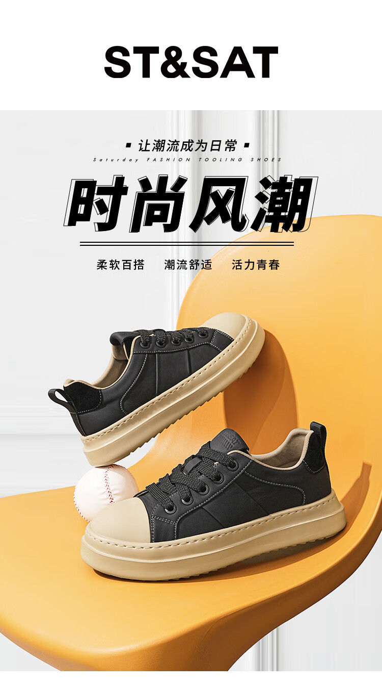 星期六男鞋头层牛皮男士透气休闲鞋小白鞋运动百搭鞋子男