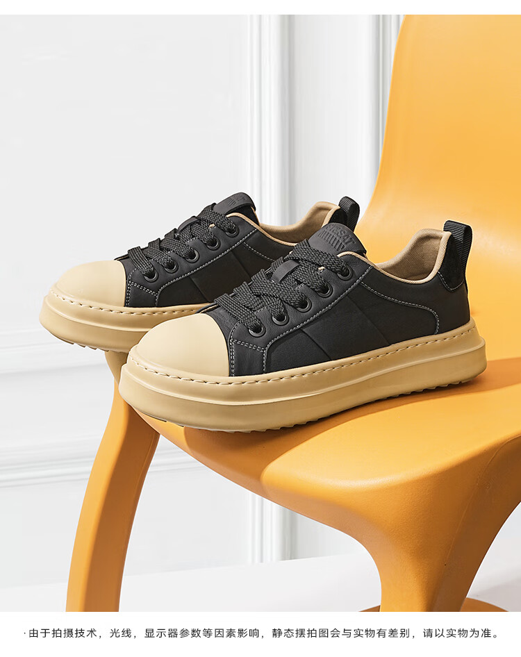 马克华菲男鞋厚底老爹鞋2025新款秋季增高鞋子男士运动休闲鞋 白棕 45