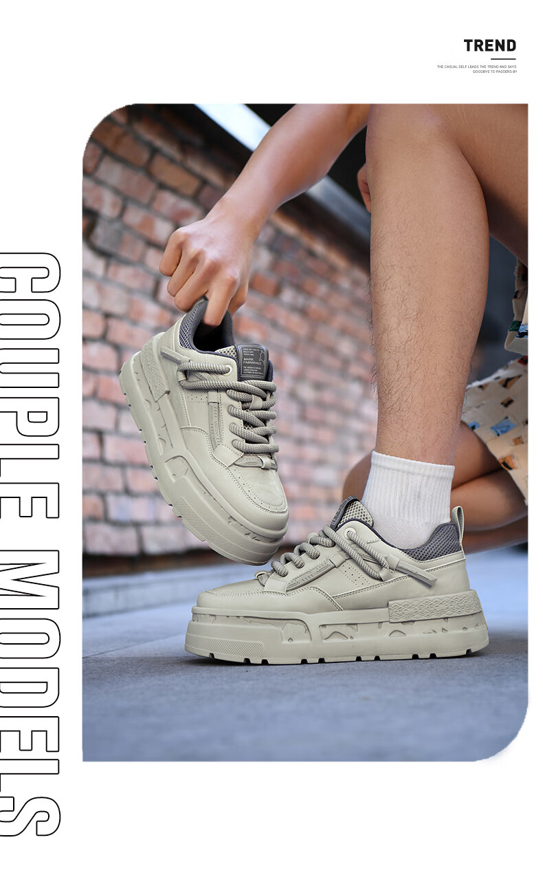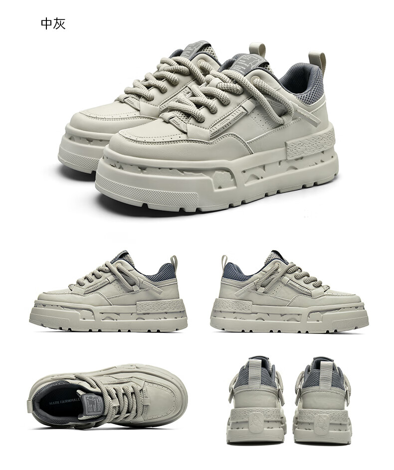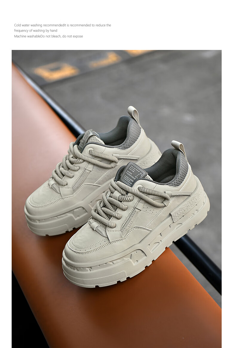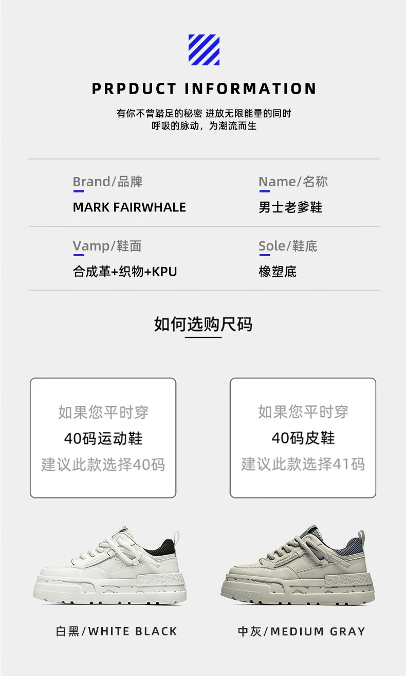 马克华菲男鞋厚底老爹鞋2025新款秋季增高鞋子男士运动休闲鞋 白棕 45