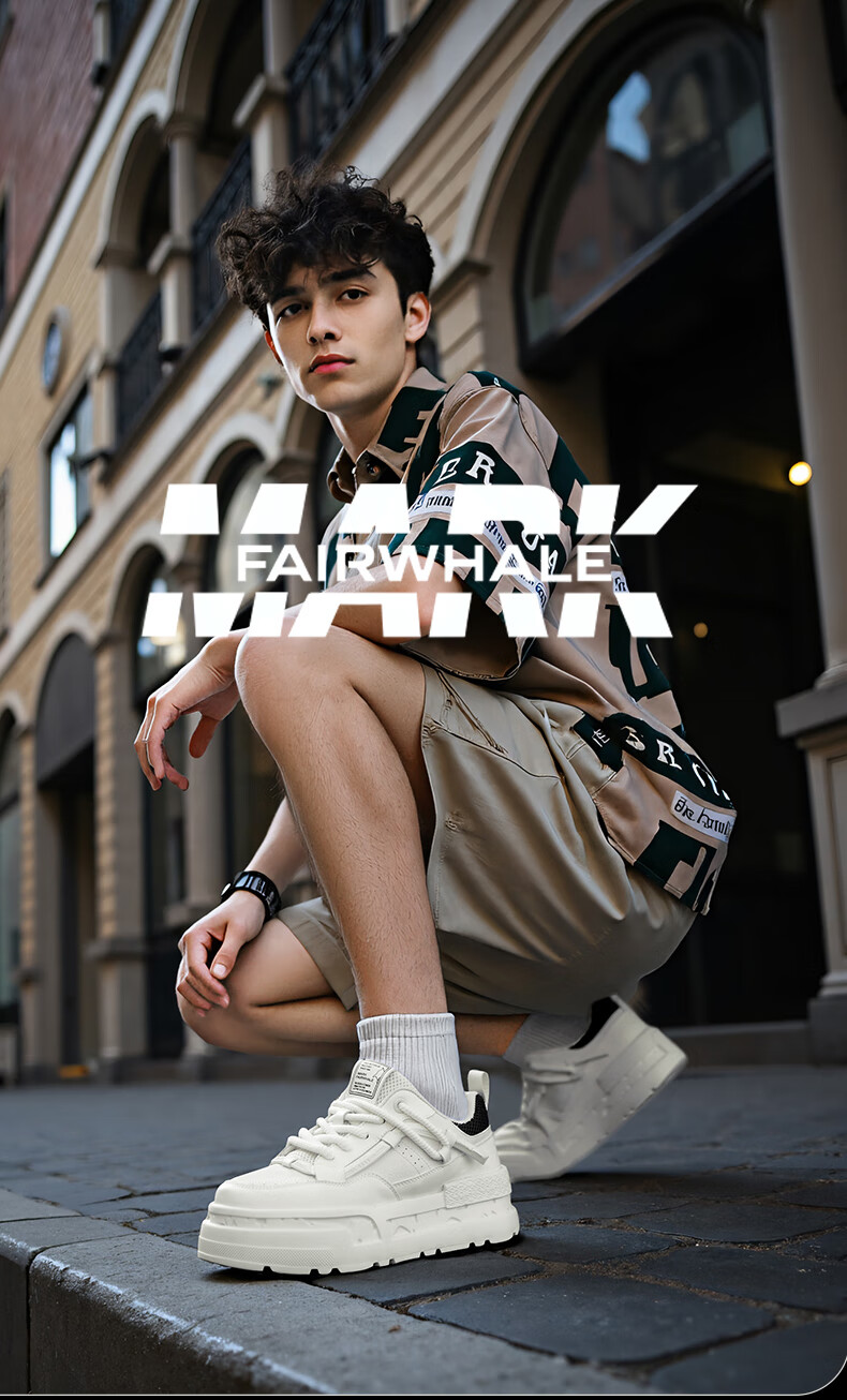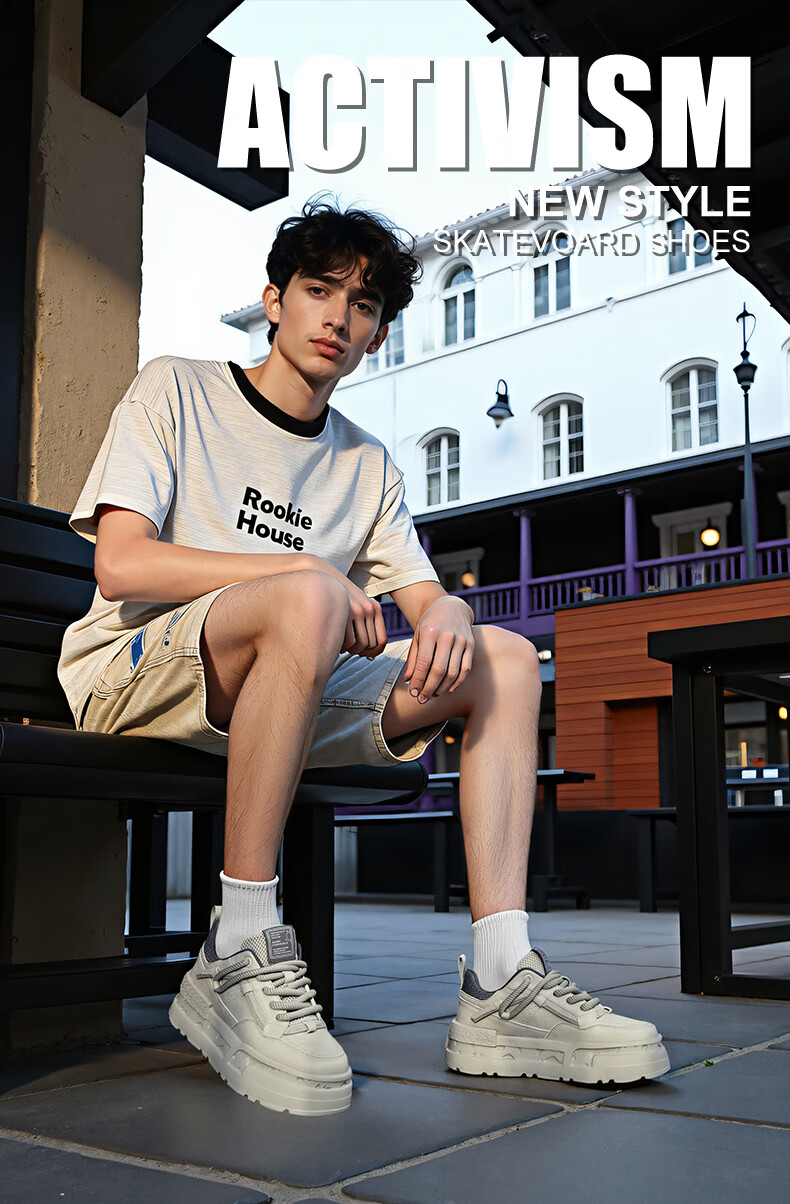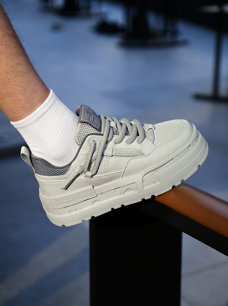 马克华菲男鞋厚底老爹鞋2025新款秋季增高鞋子男士运动休闲鞋 白棕 45