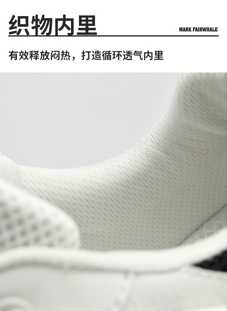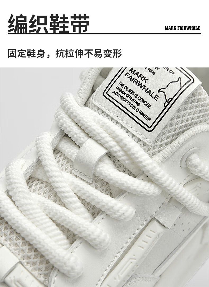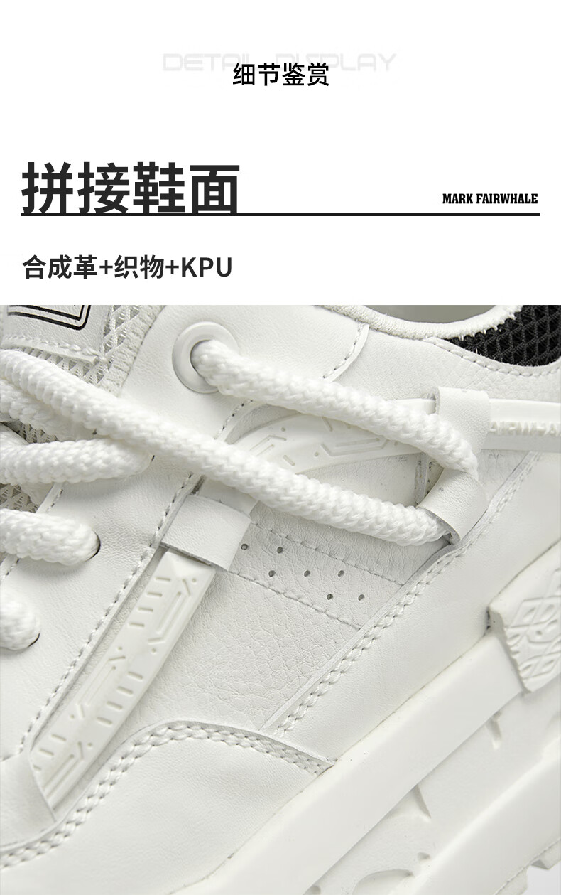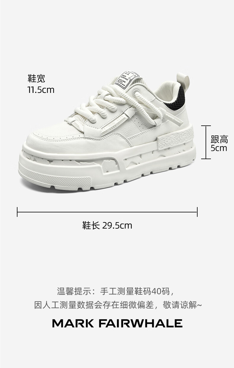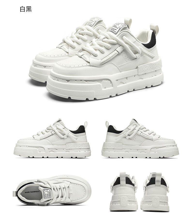 马克华菲小白鞋男款2025夏季新款男鞋休闲鞋子男士厚底增高板鞋男 白黑 42