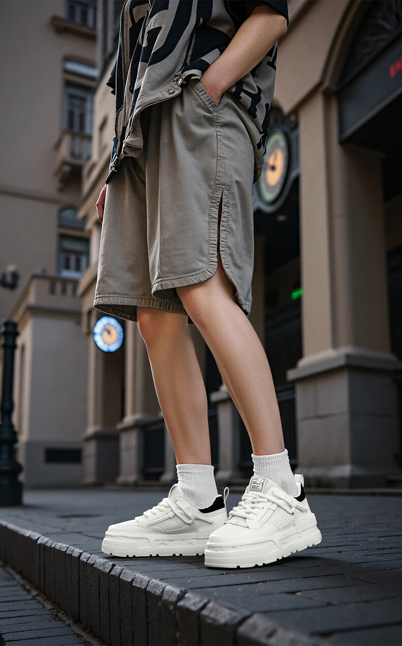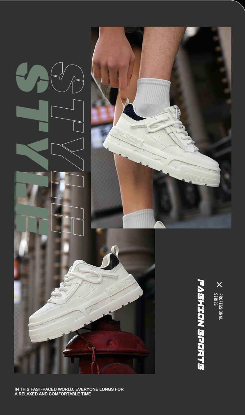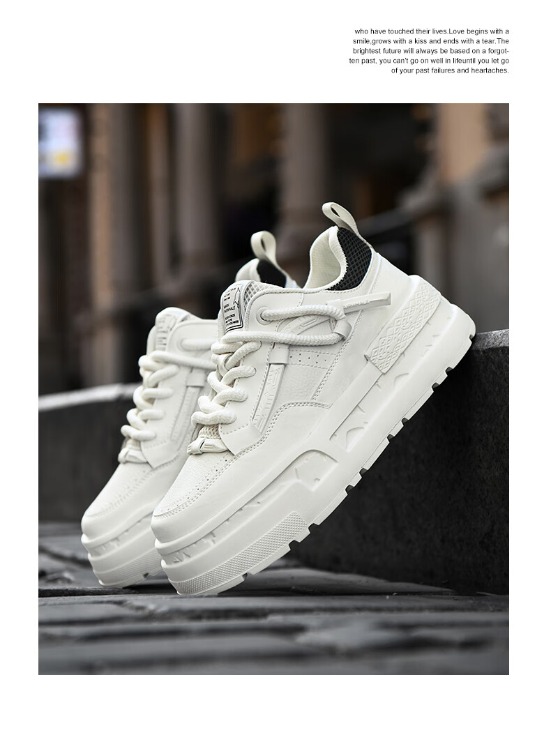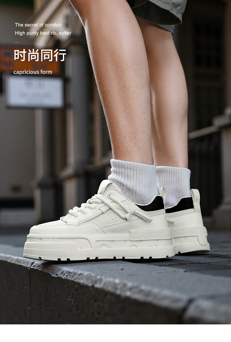 马克华菲小白鞋男款2025夏季新款男鞋休闲鞋子男士厚底增高板鞋男 白黑 42