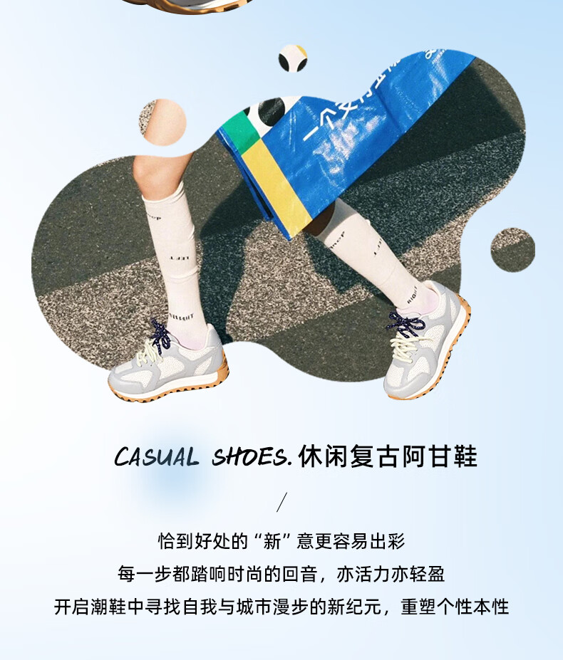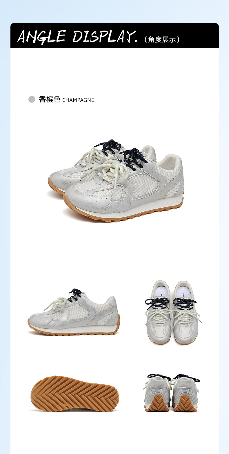 马克华菲女鞋2025春新款厚底增高德训鞋复古阿甘鞋运动休闲鞋 香槟色 36