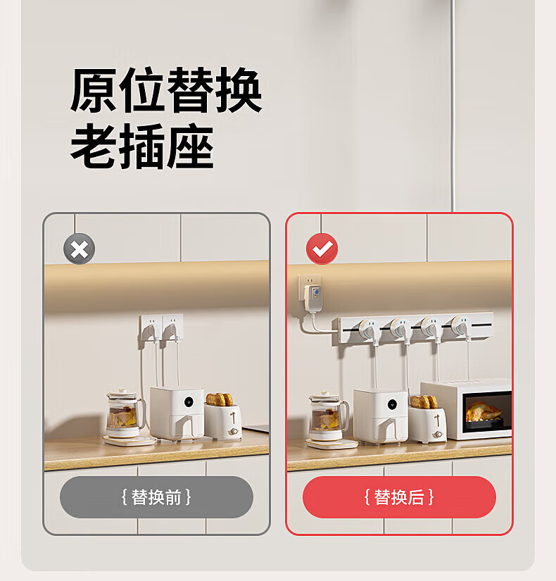 国际电工86型明装扩展插座厨房墙壁排插多功能转换器插座多孔位插头插线板 向右扩展-【白色三开21孔分控】免接线