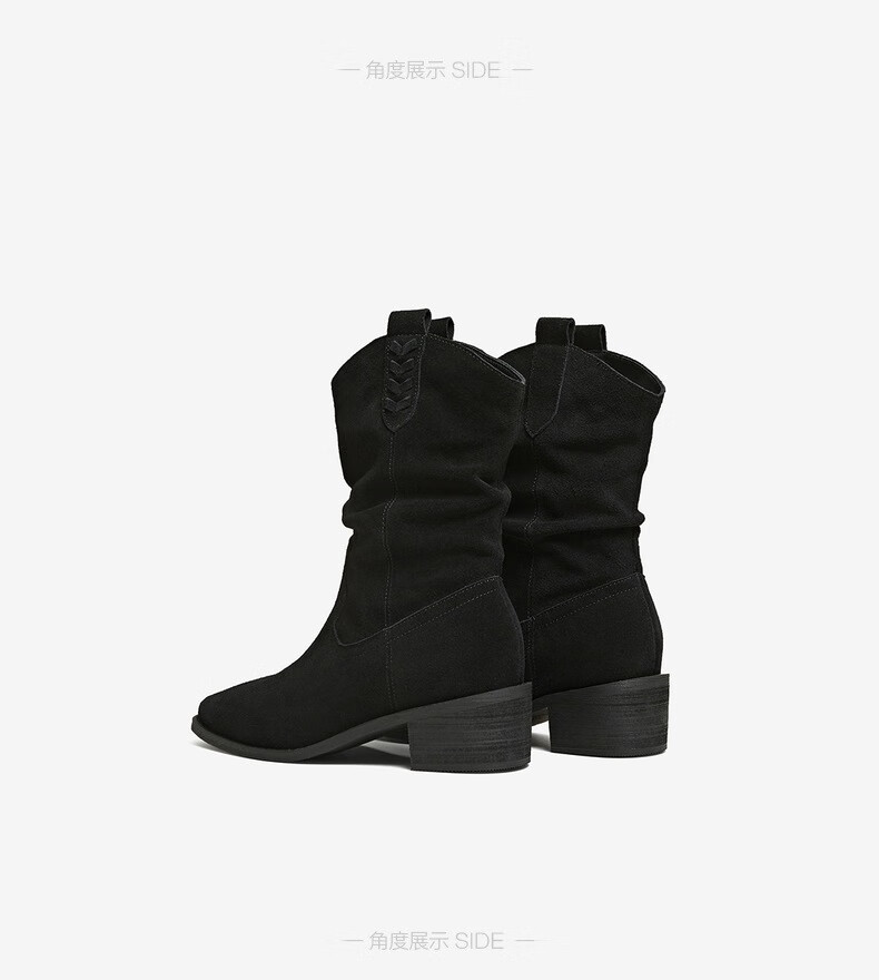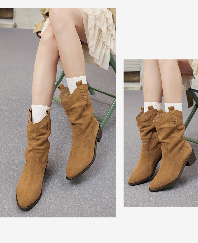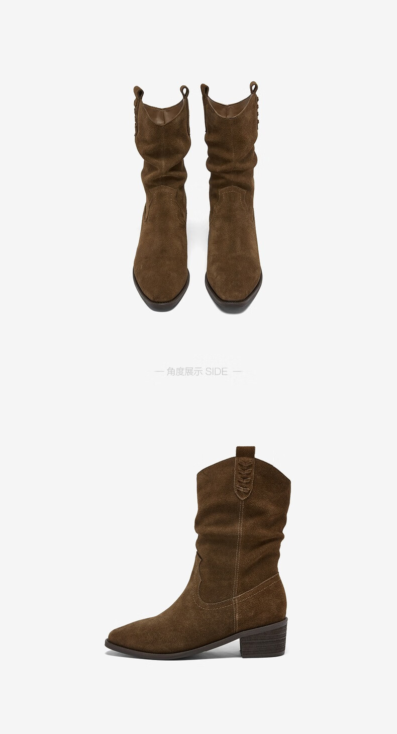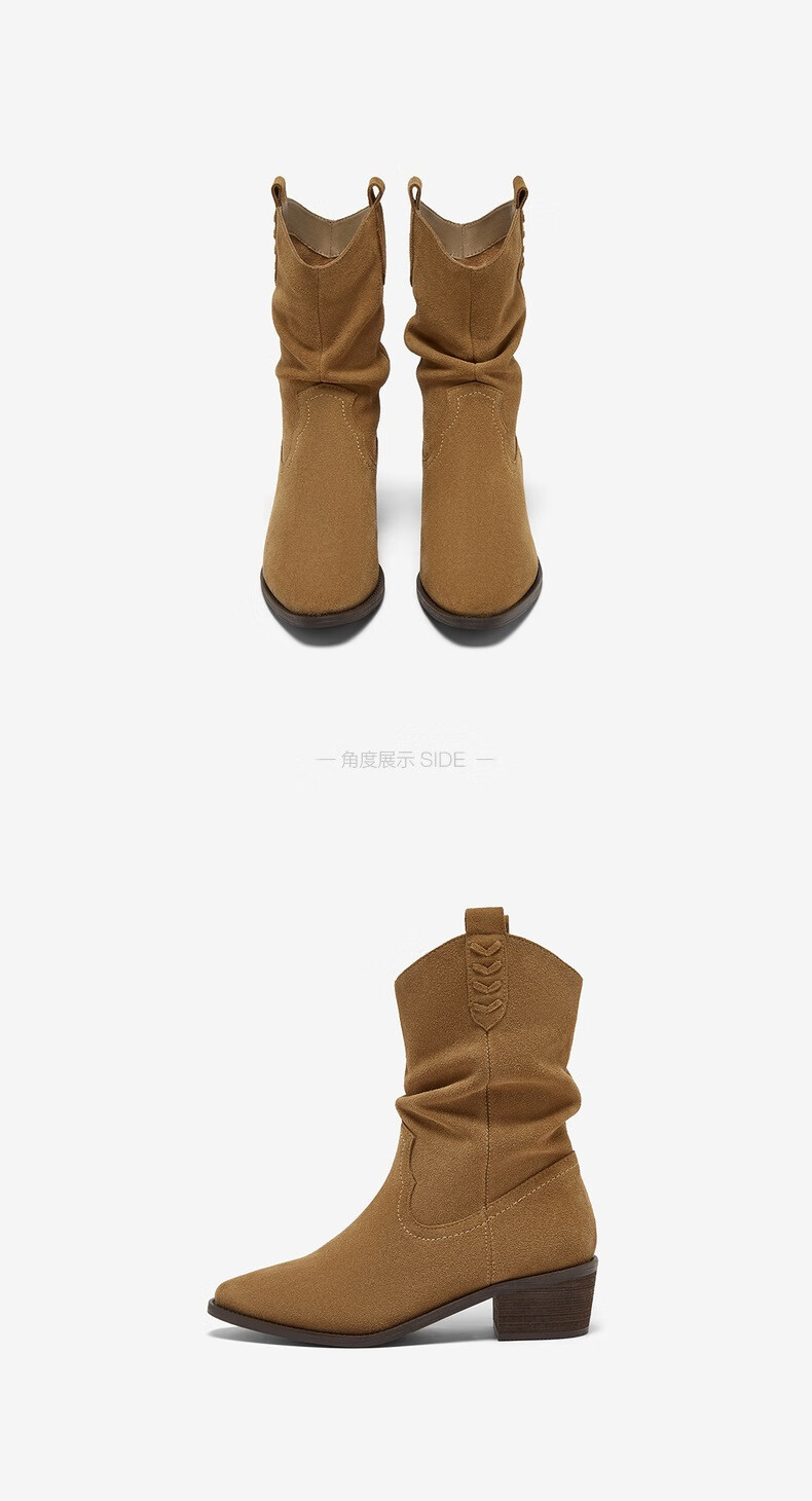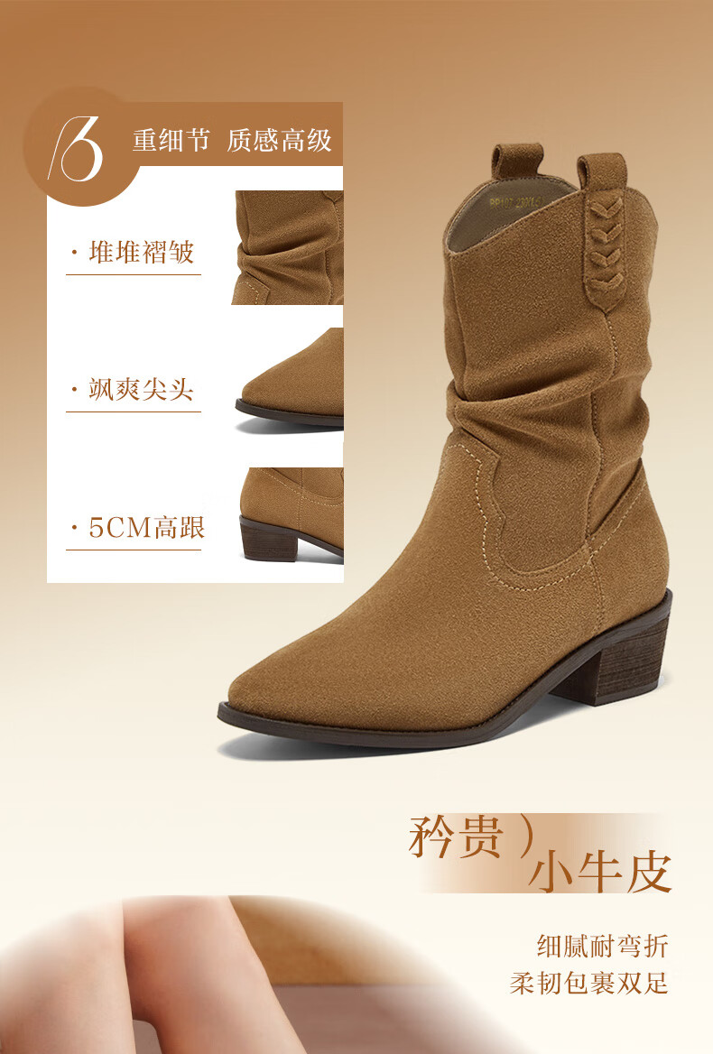百思图【张碧晨同款】西部旅人25冬新款美拉德西部牛仔堆堆短靴女 驼色 38