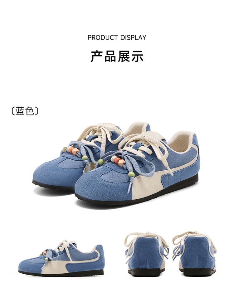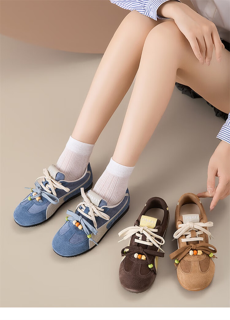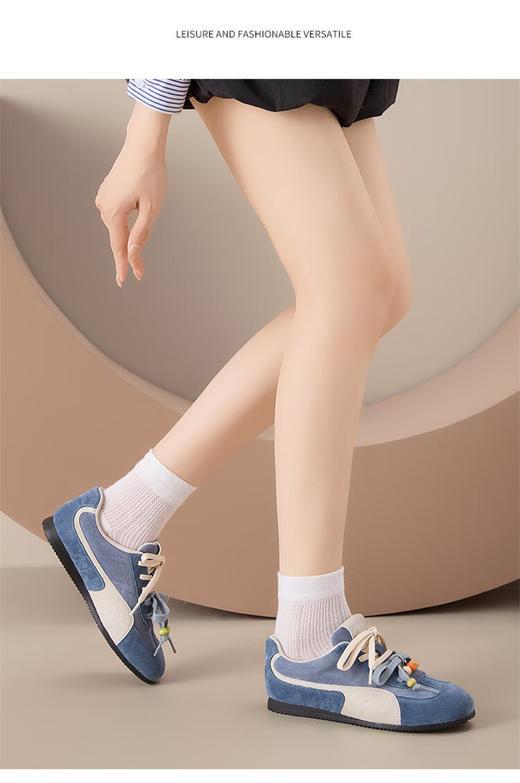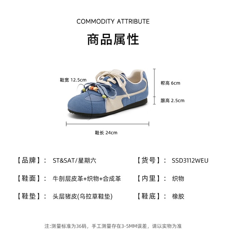 星期六时尚圆头双鞋带女鞋2025秋季新款百搭舒适德训鞋MTSSD3112WEU 蓝色 35