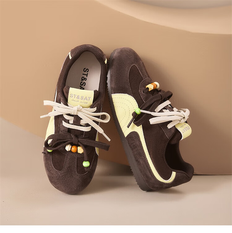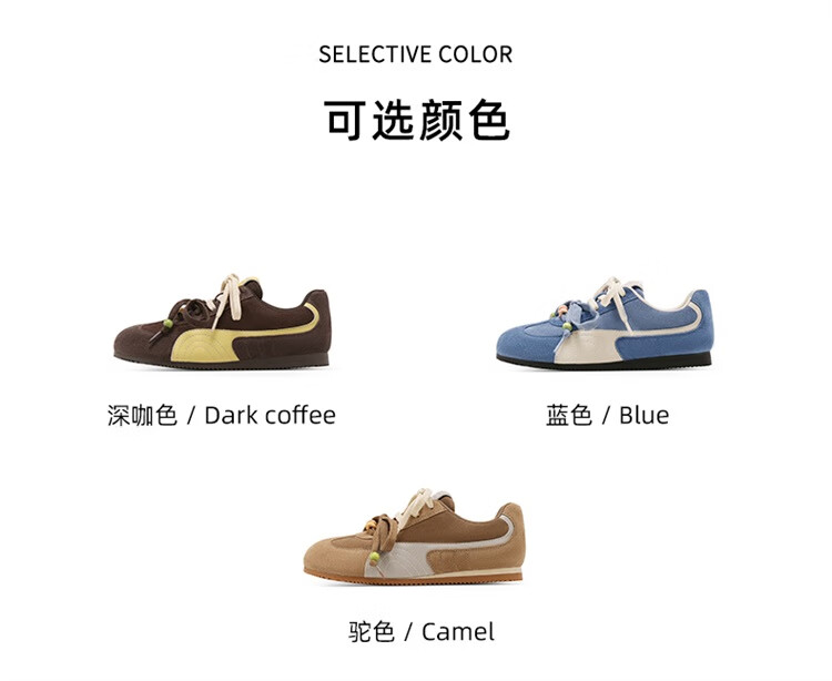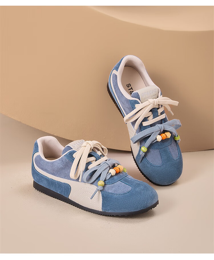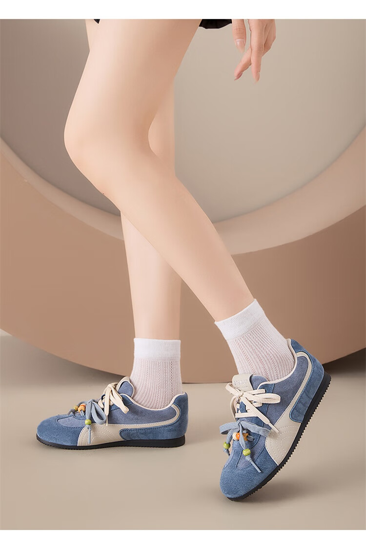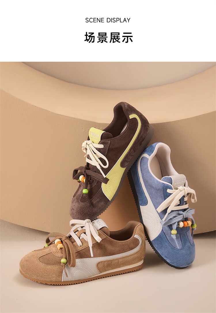 星期六时尚圆头双鞋带女鞋2025秋季新款百搭舒适德训鞋MTSSD3112WEU 蓝色 35