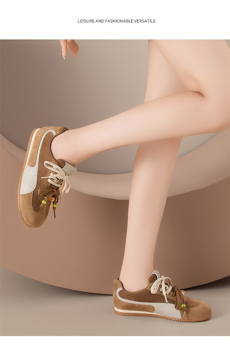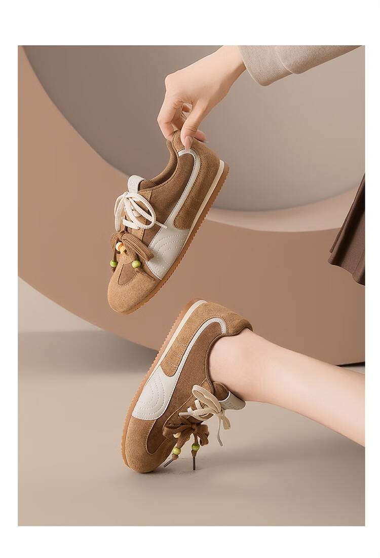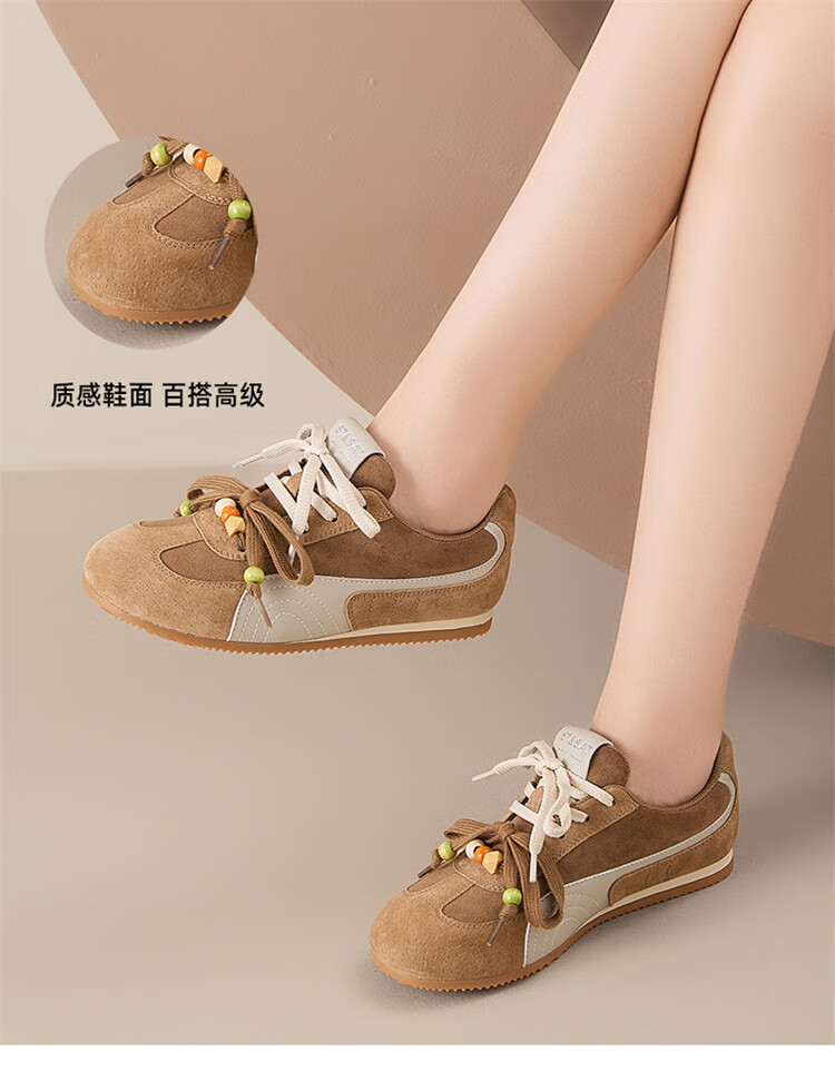 大东老爹鞋女鞋2025年秋季新款时尚潮流休闲鞋拼接5015 米红色 35