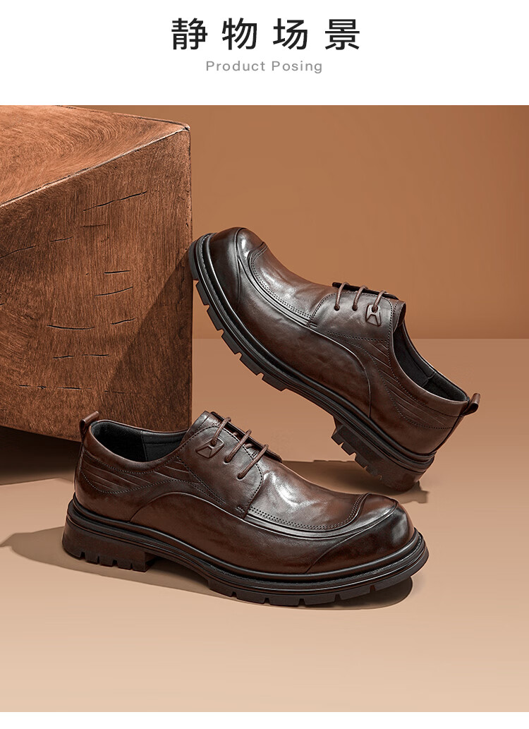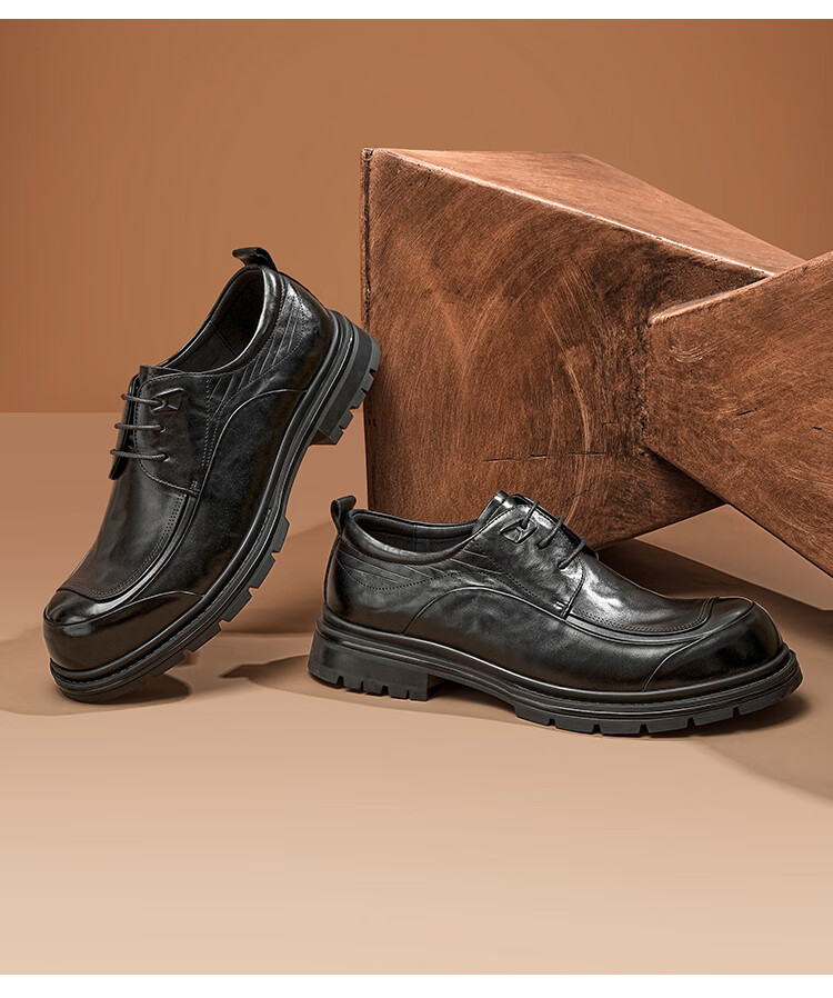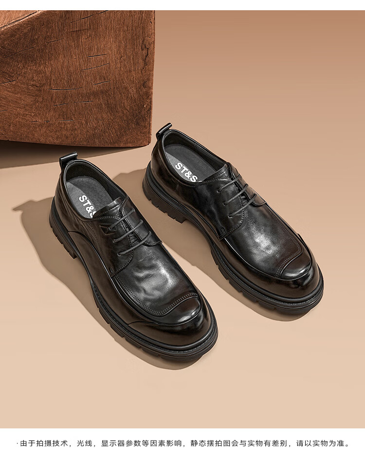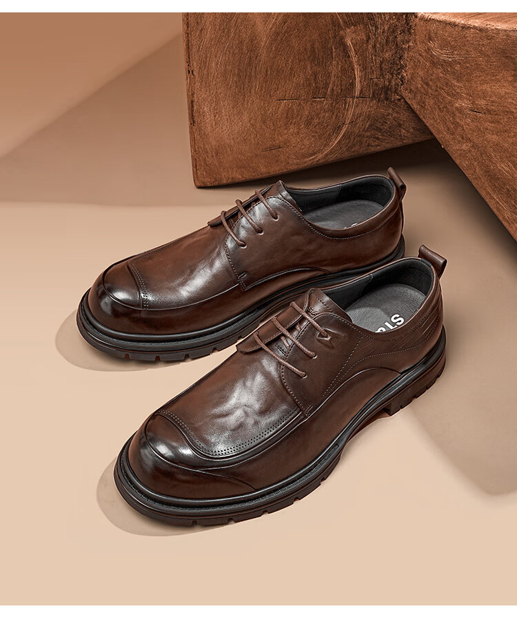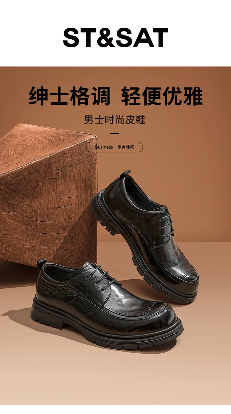 星期六男鞋时尚牛皮商务正装皮鞋男百搭系带休闲皮鞋通勤鞋子男