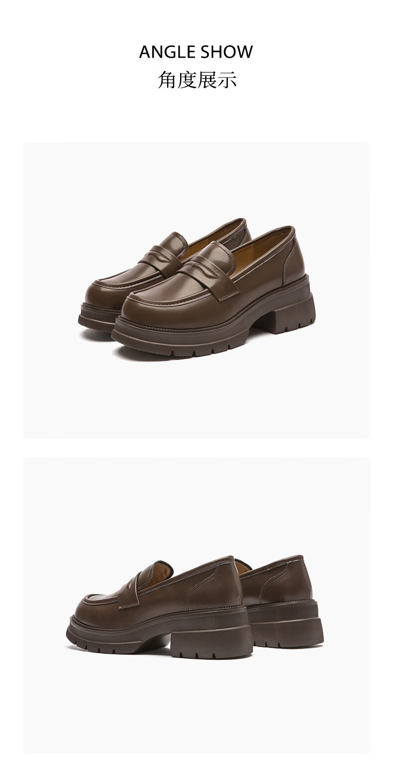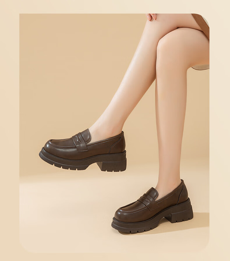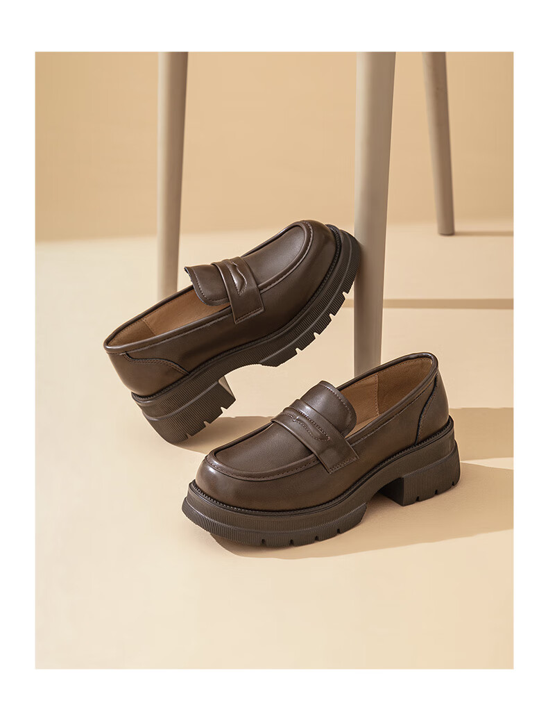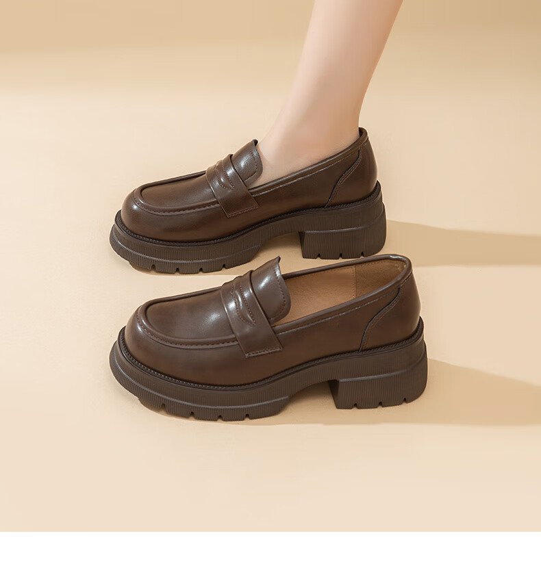 大东厚底乐福鞋2025年秋季新款英伦风小皮鞋1118 咖啡色 35