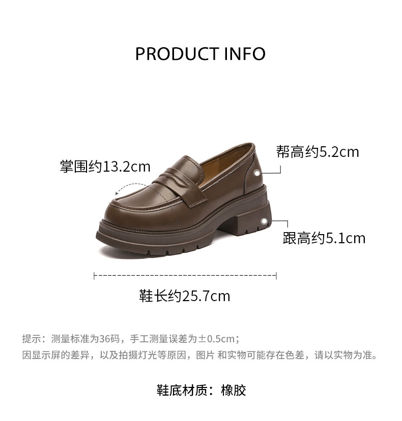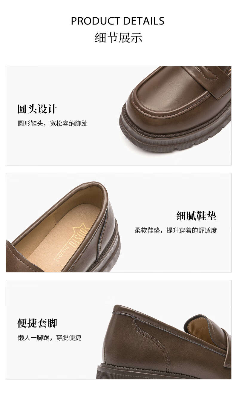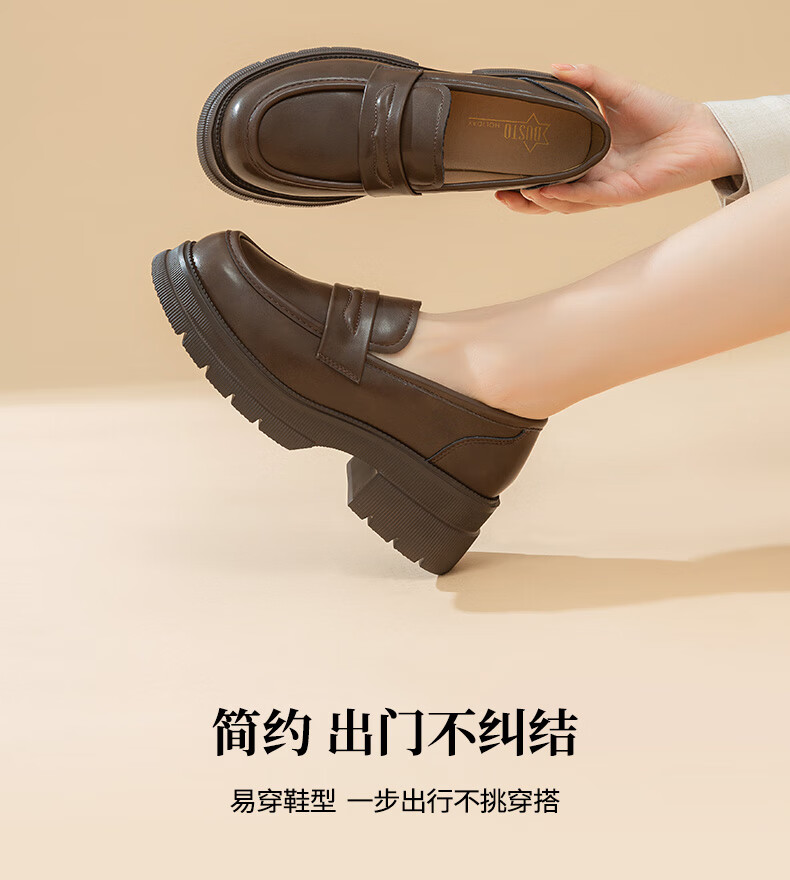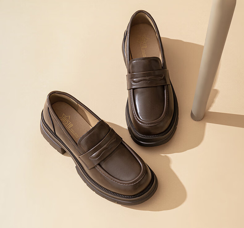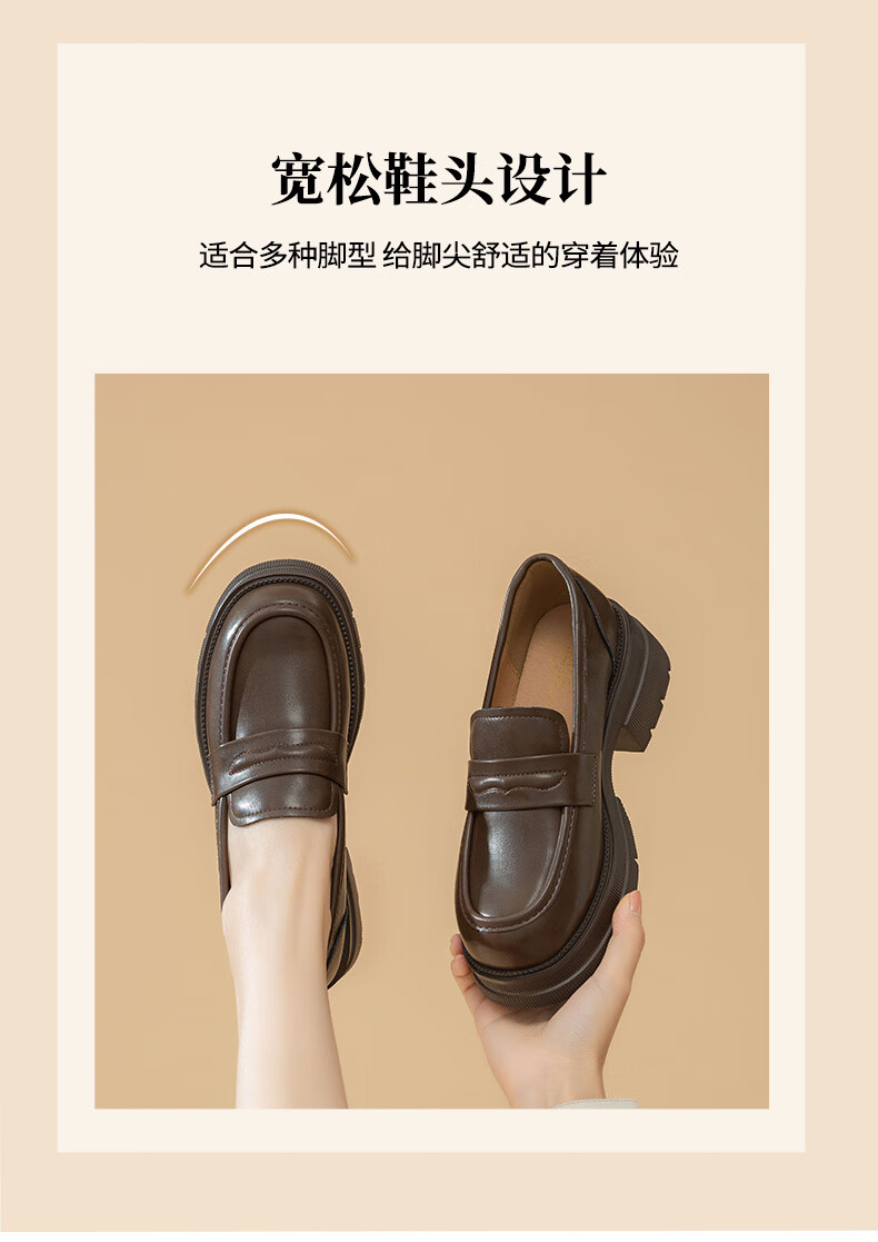 大东厚底乐福鞋2025年秋季新款英伦风小皮鞋1118 咖啡色 35