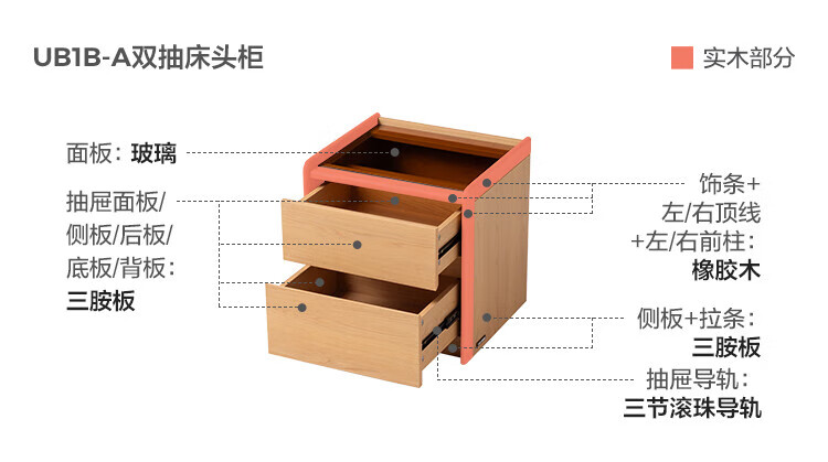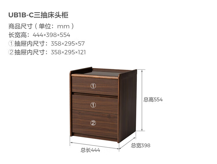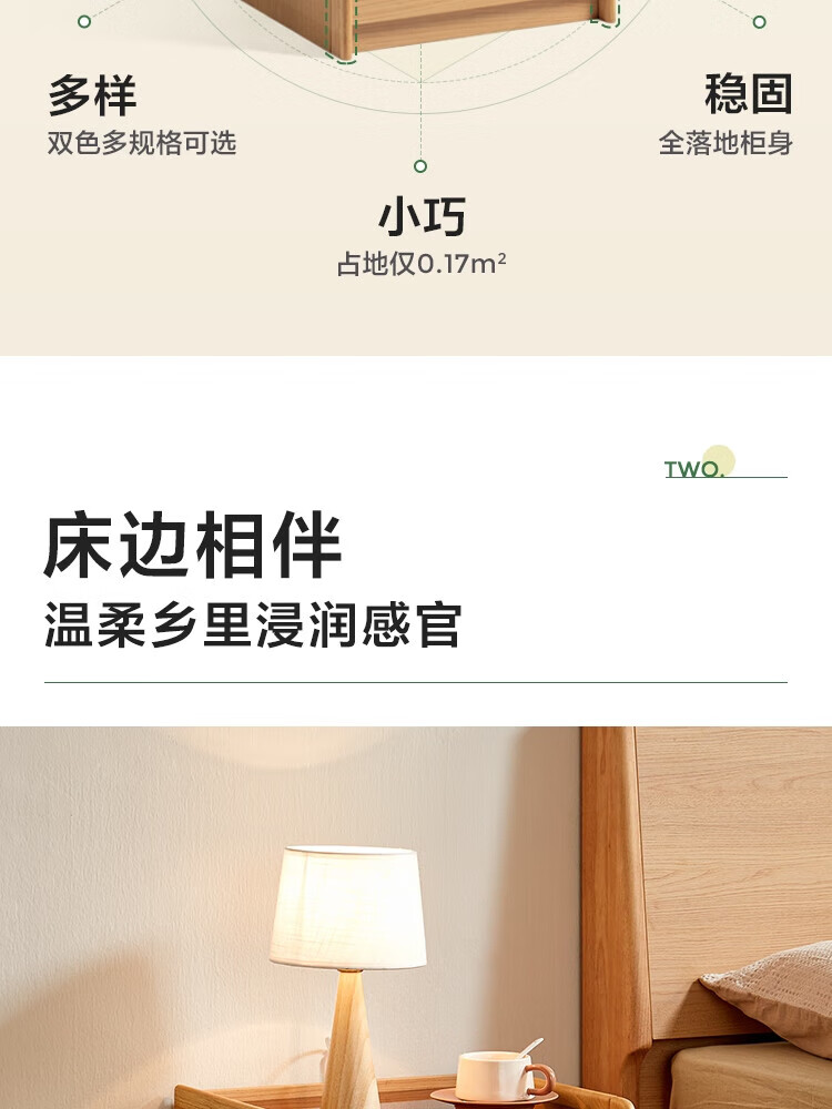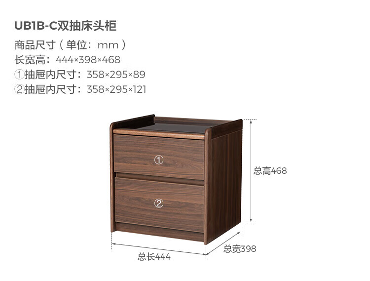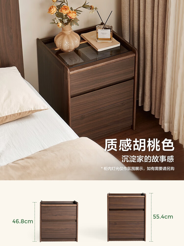 林氏家居家用卧室收纳床头柜三抽床边小储物柜子2025林沐系列UB1B 【胡桃色|0.44m】双抽床头柜