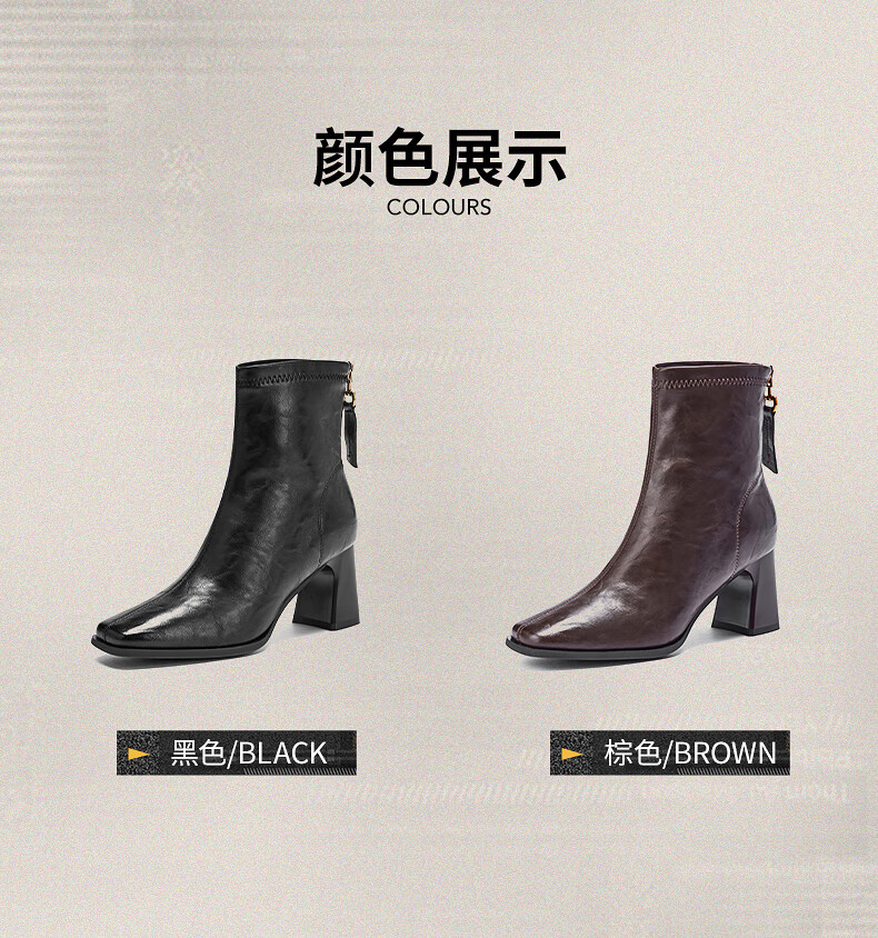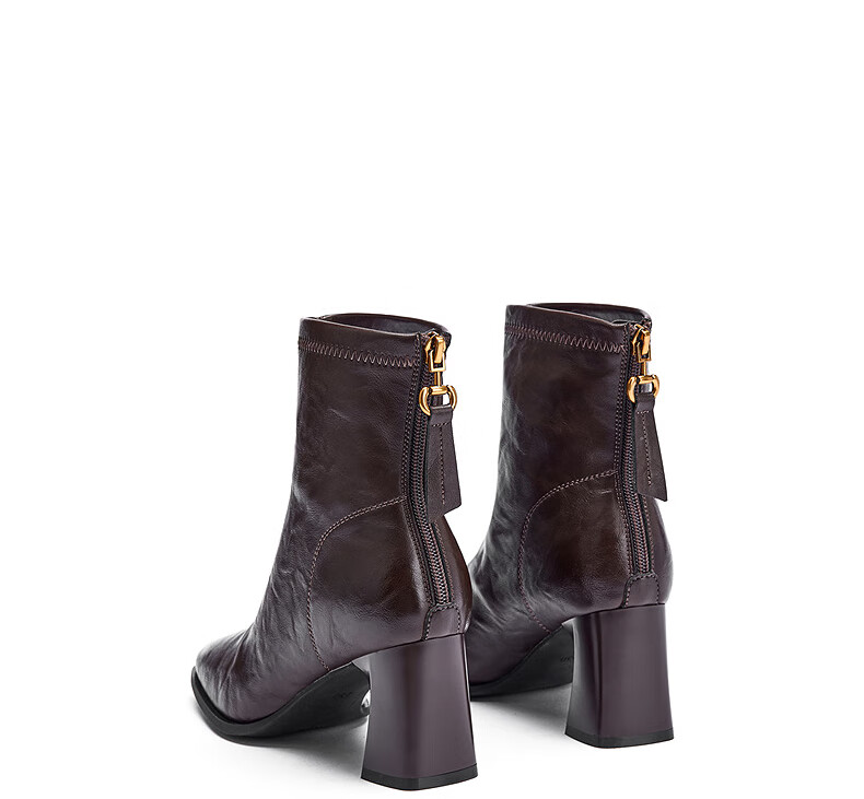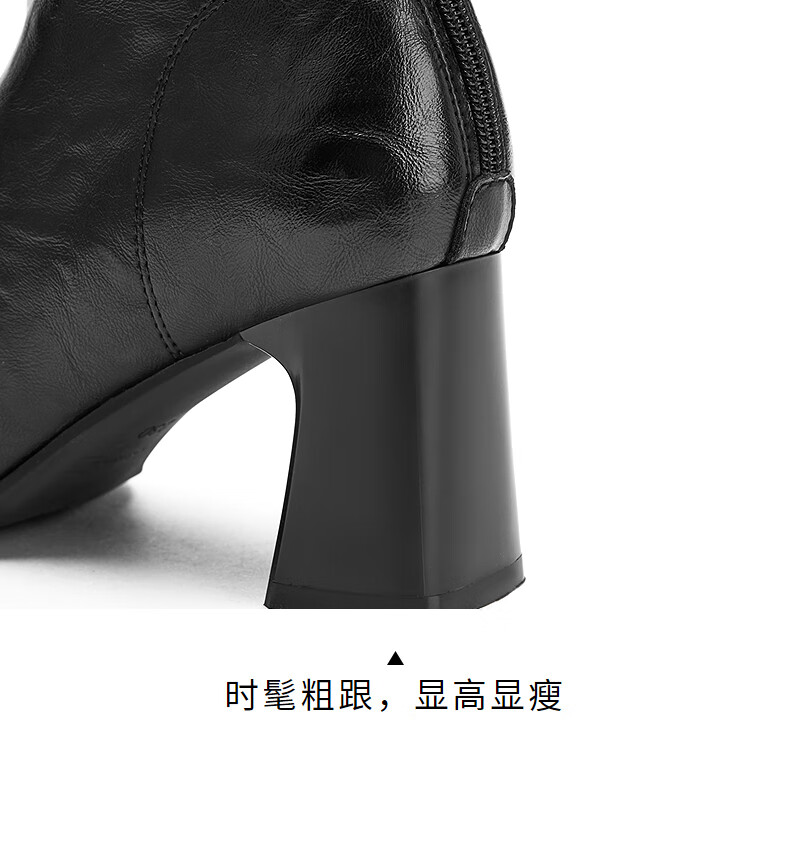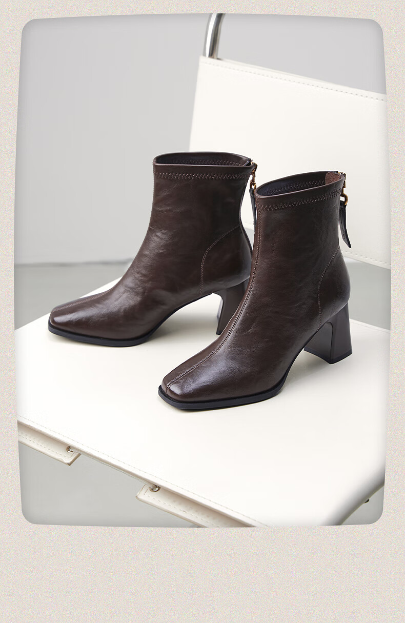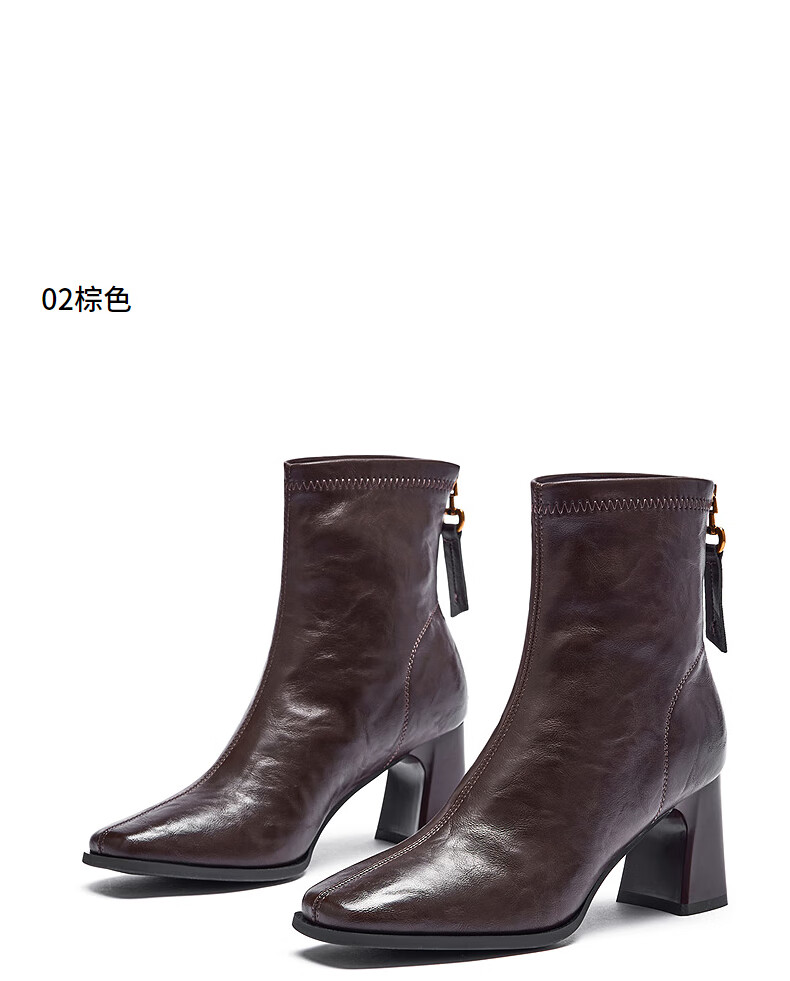 热风高跟时装靴2025年冬季新款法式方头粗跟短靴通勤休闲靴子女鞋 02棕色 38