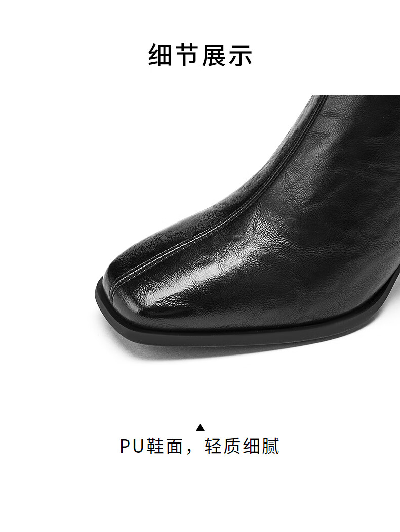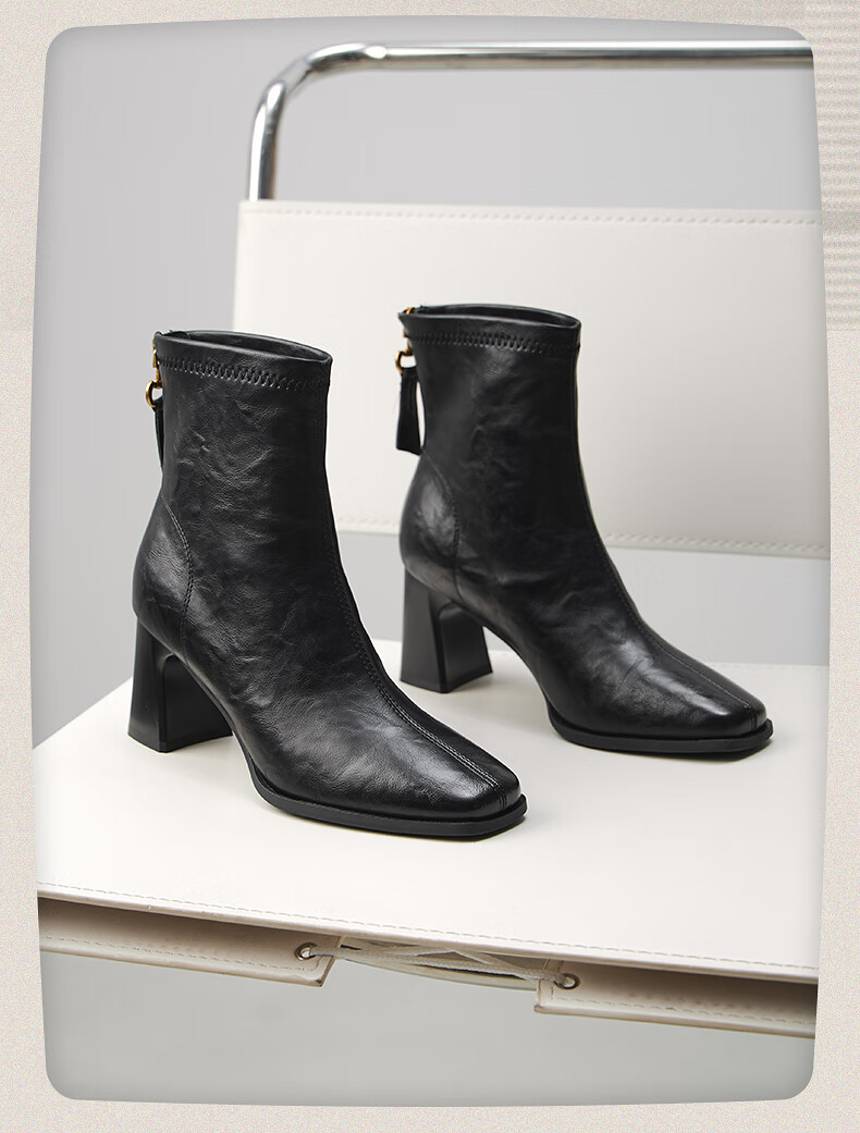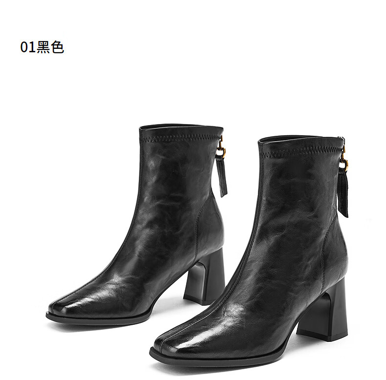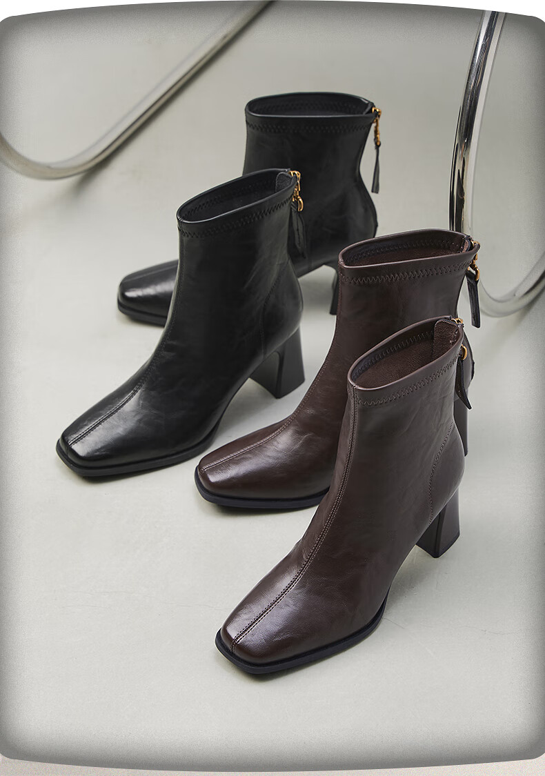 热风高跟时装靴2025年冬季新款法式方头粗跟短靴通勤休闲靴子女鞋 02棕色 38