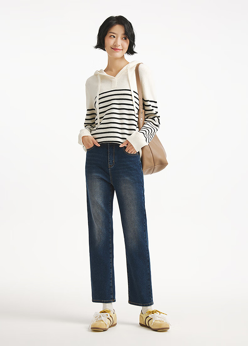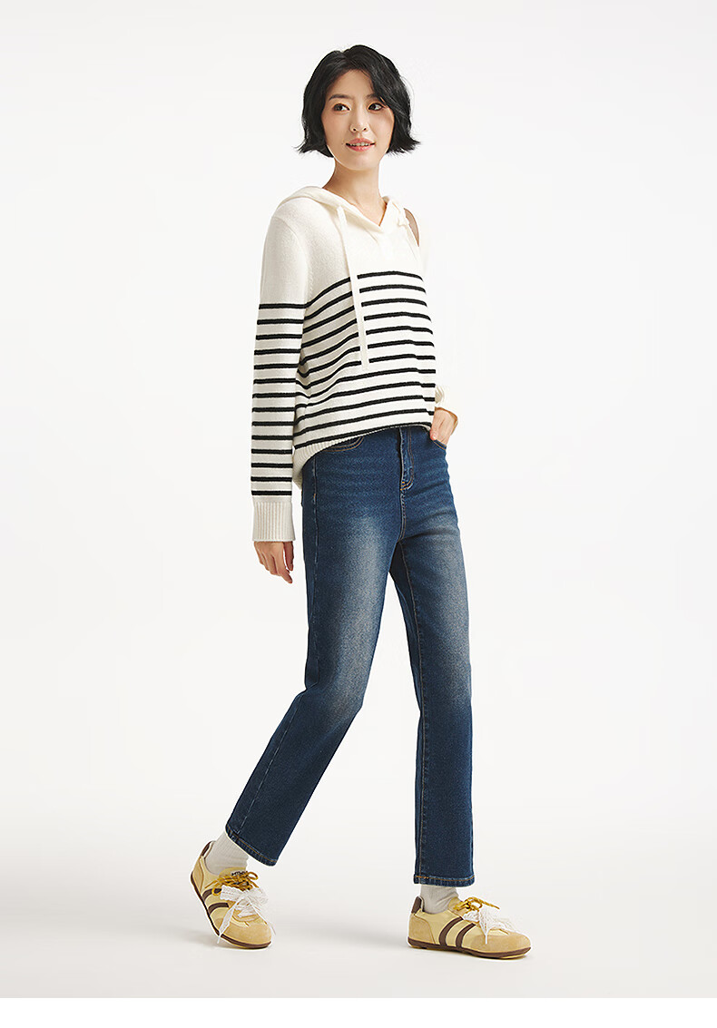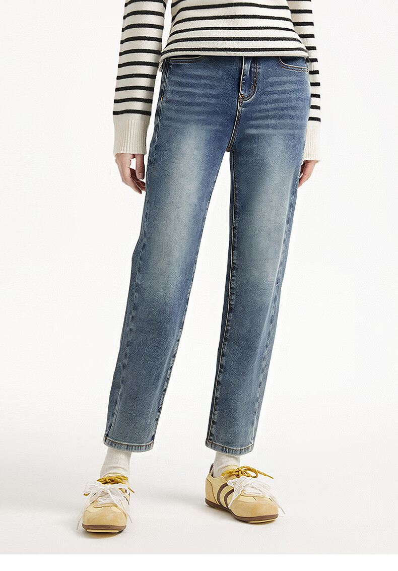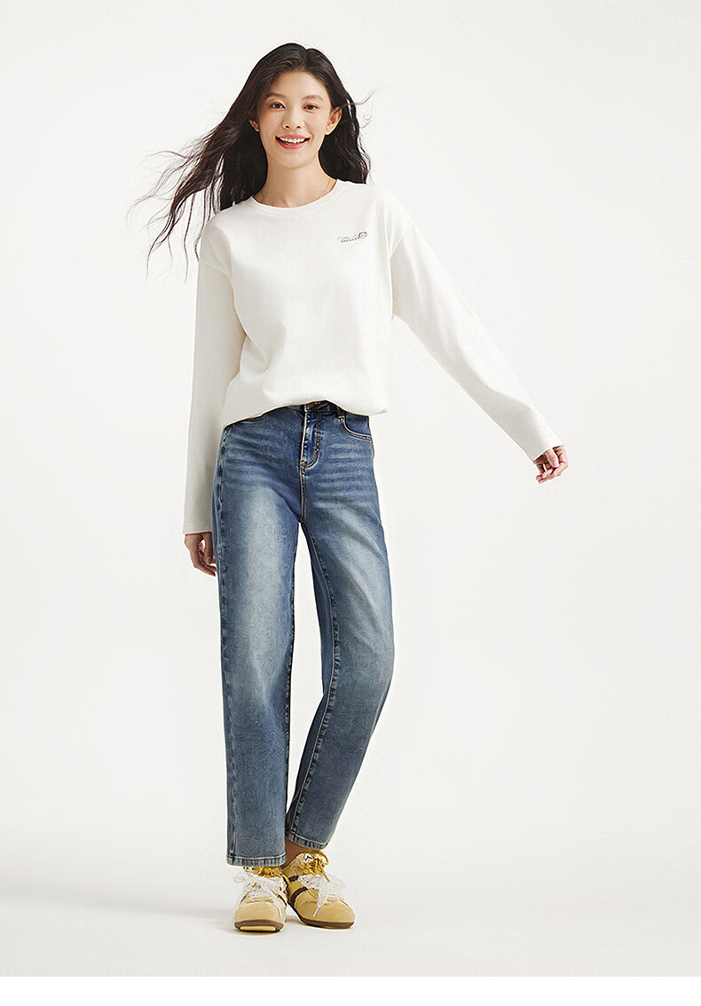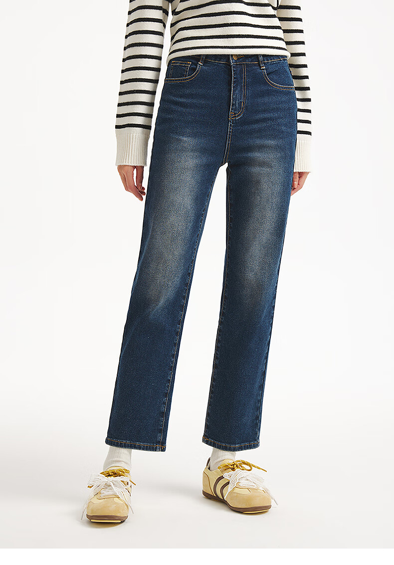 热风2025年秋季新款女士基础合体直筒牛仔裤 06兰色 25