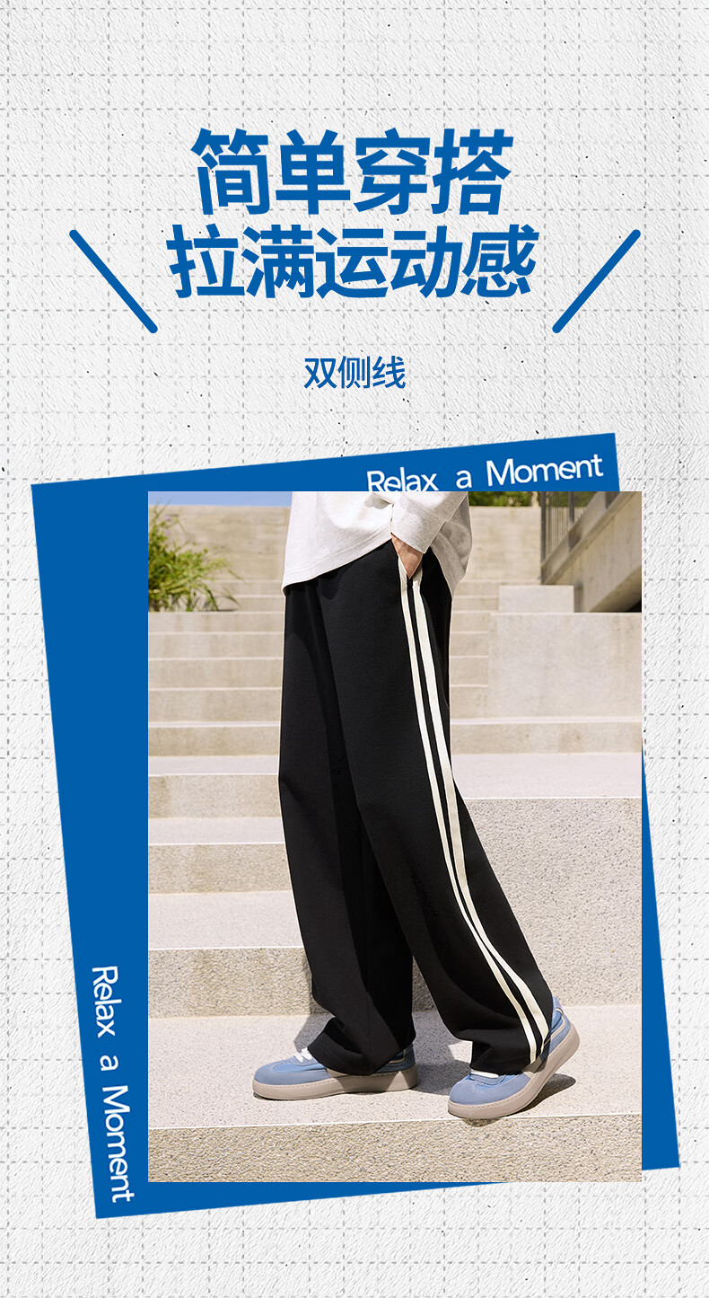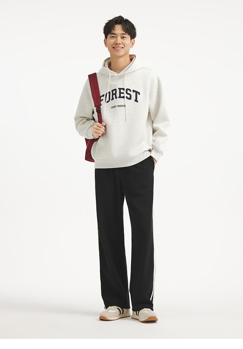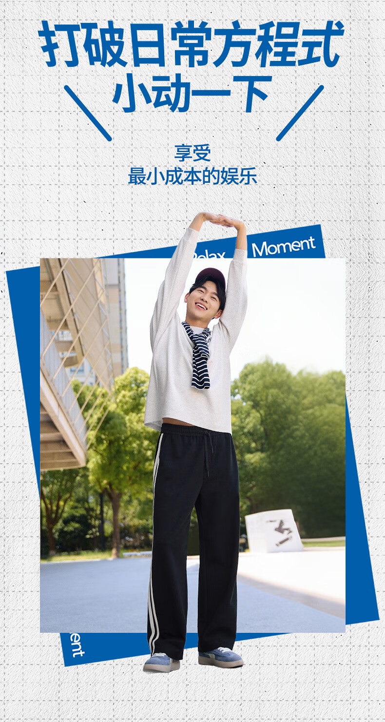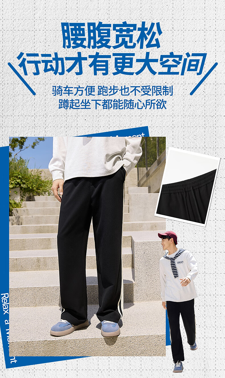 热风【商场同款】男士直筒卫裤2025年秋新款松紧腰宽松休闲舒适长裤 01黑色 XL