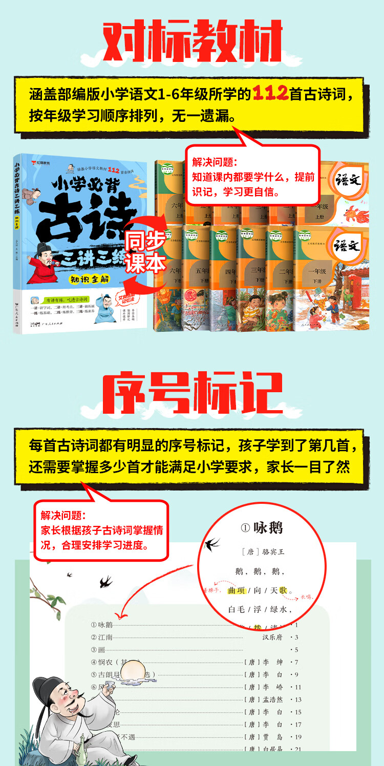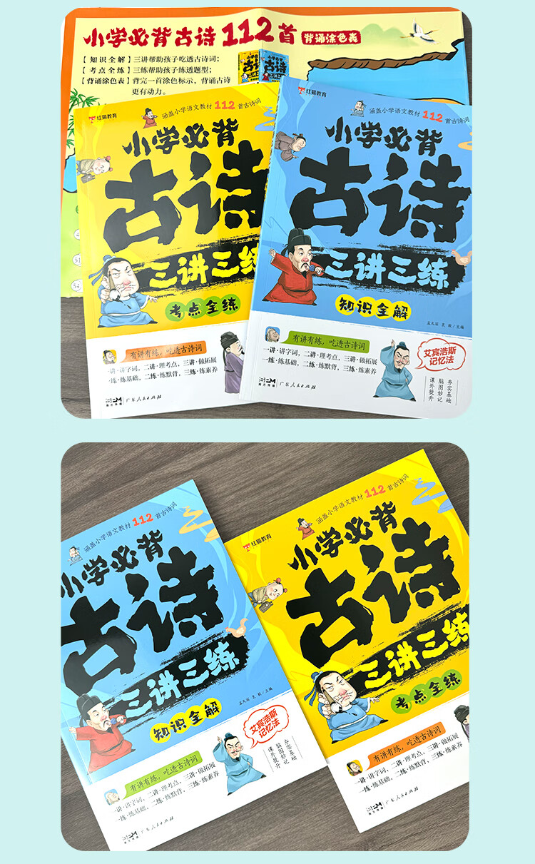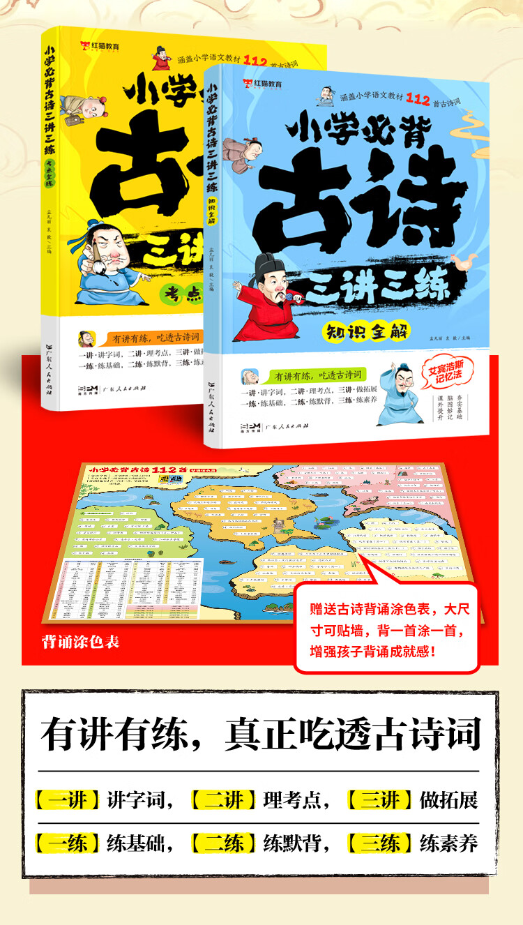 小学必背古诗三讲三练(全二册)112首 随书附赠背诵涂色表 【限价59.80元】小学必背古诗 无规格