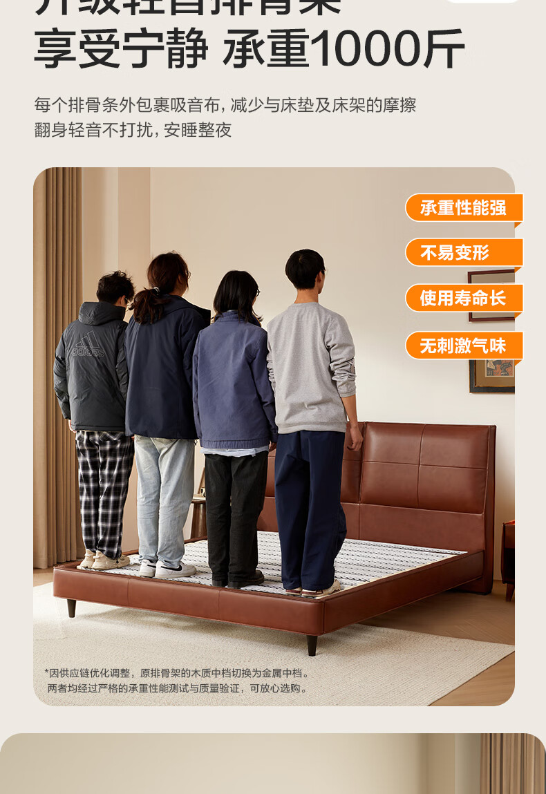 喜临门皮艺双人床头层牛皮中古风主次卧室真皮大婚床【摩卡】[床架] 极光黑+白骑士pro床垫 1.5*2米