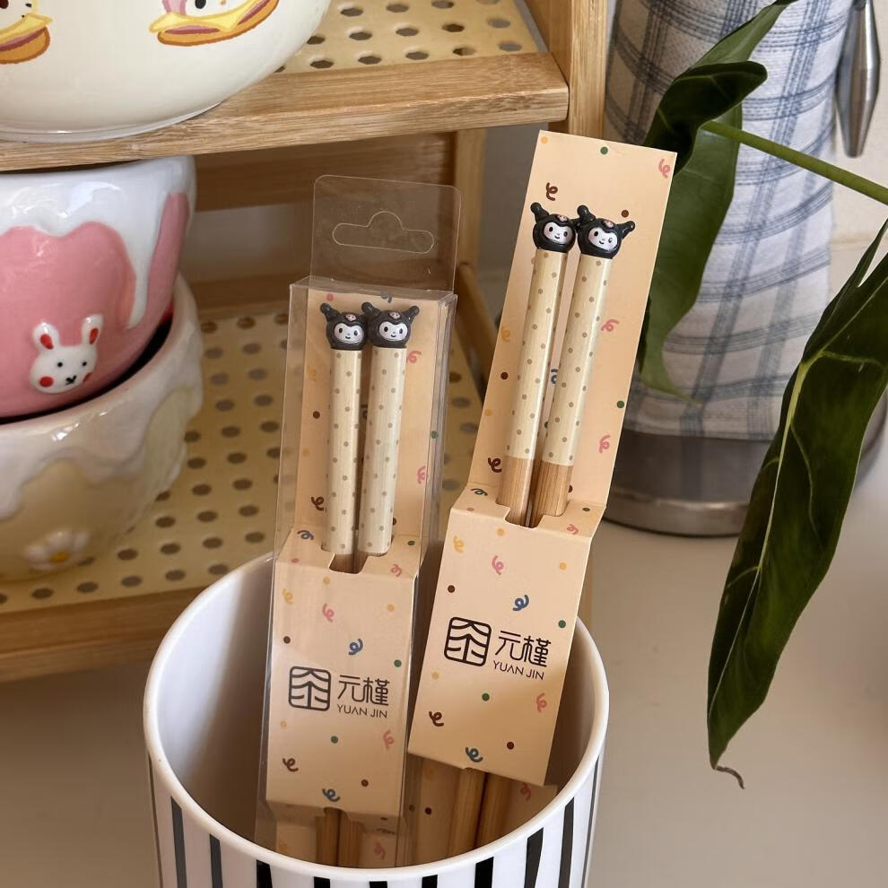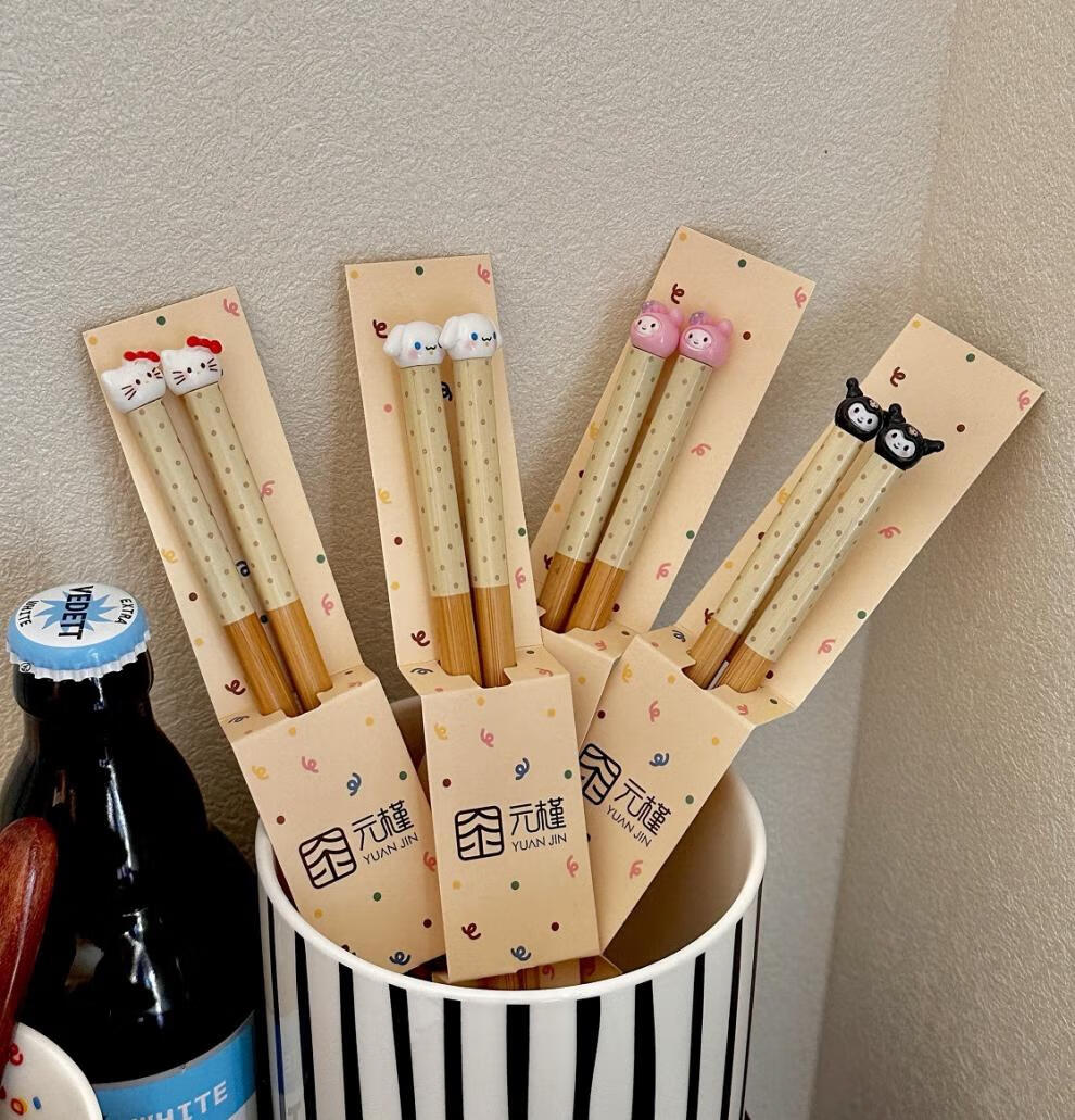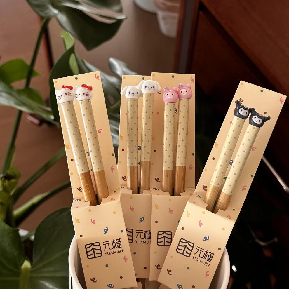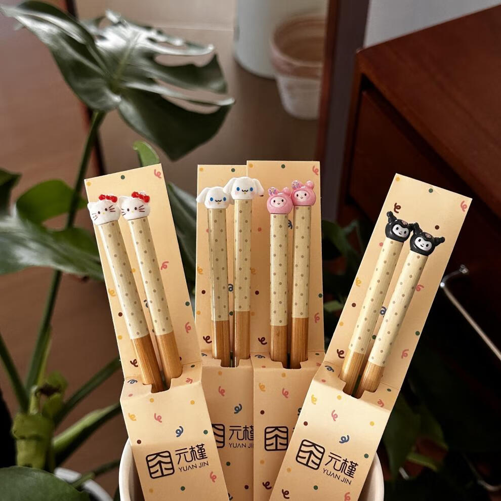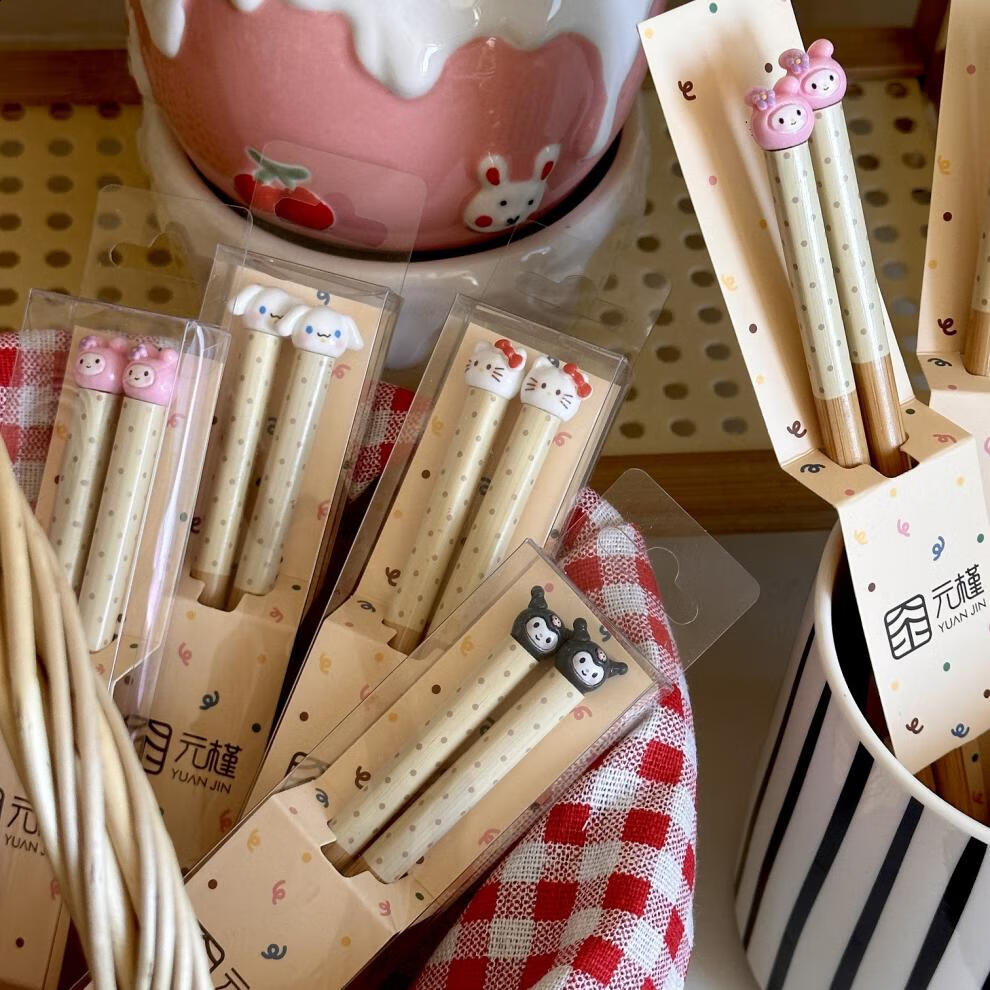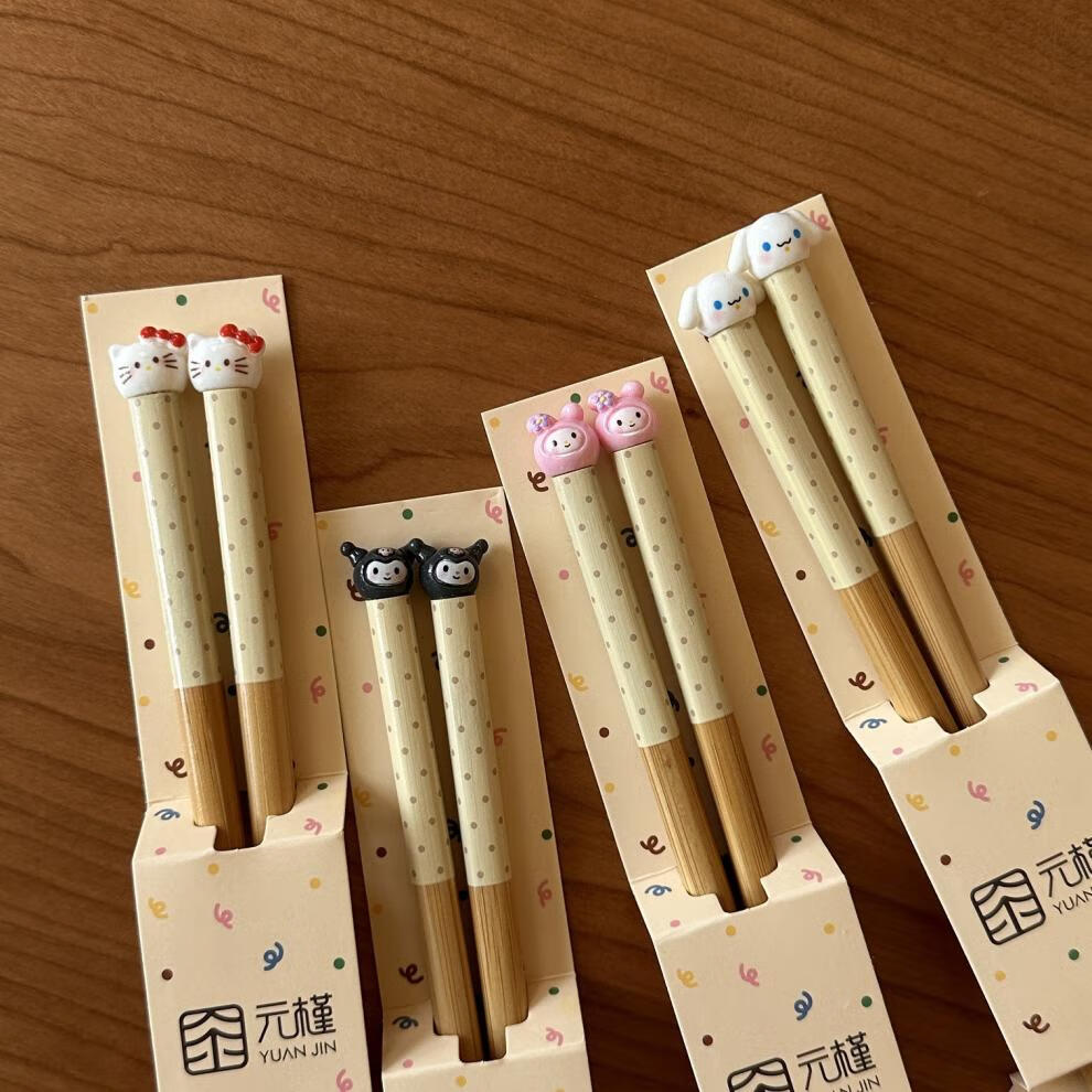 礼盒装~ins风奶油立体小熊可爱大人儿童家用餐具楠木筷子送人礼物 Kitty猫-高品质礼盒筷子 19.5cm(儿童筷)