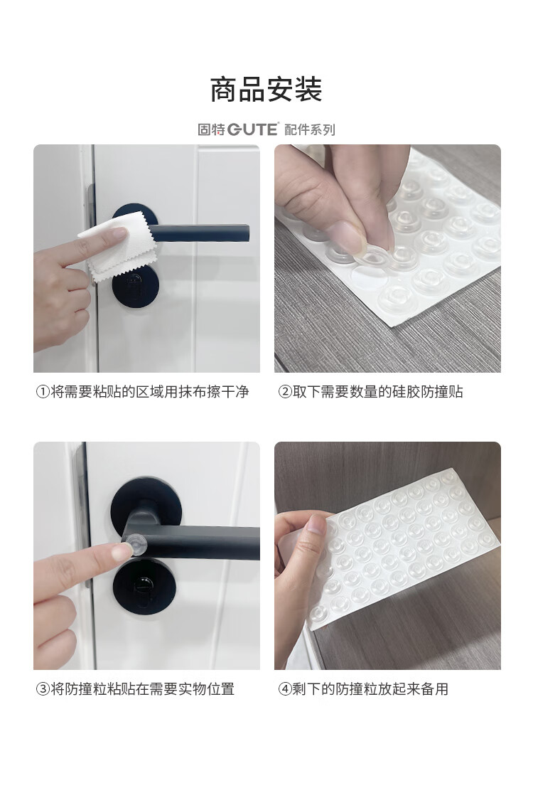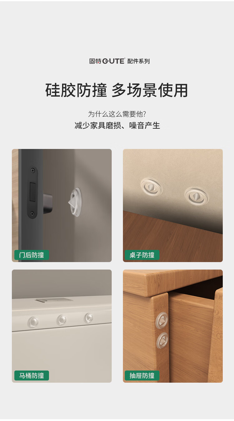 固特(GUTE)硅胶防撞贴垫冰箱防撞条门把手防磕碰无痕硅胶垫柜门墙面防碰颗粒 50粒+10条 无痕硅胶
