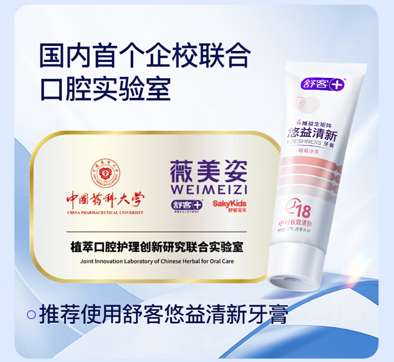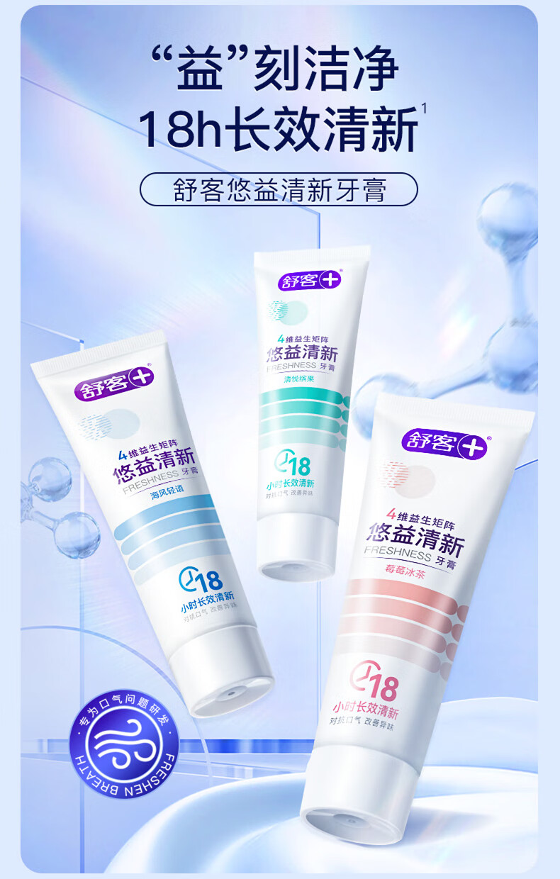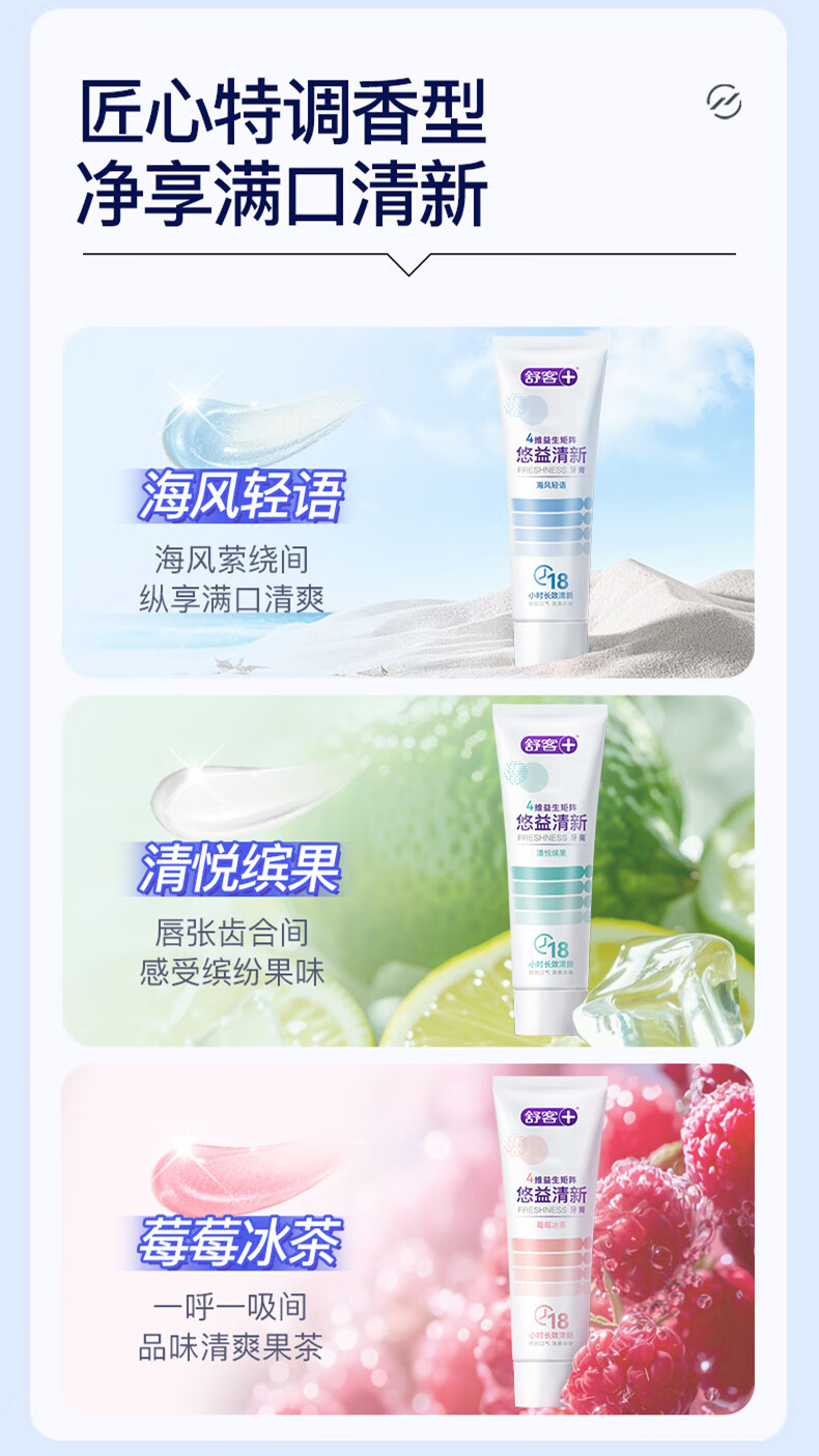 舒客优益清新牙膏清新口气口臭亮白去渍家用四维益生菌长效清新正品 莓莓冰茶*1+牙刷*1+杯子*1