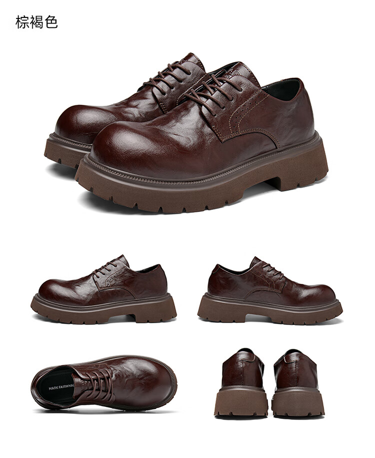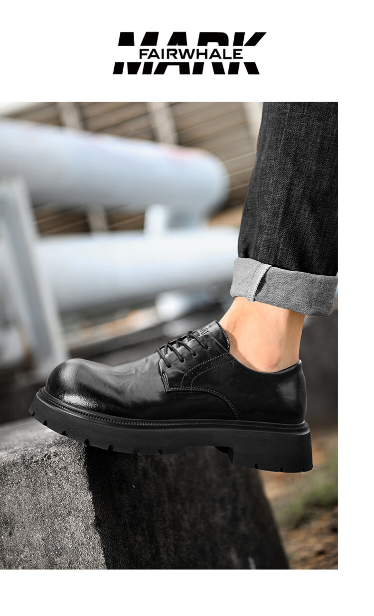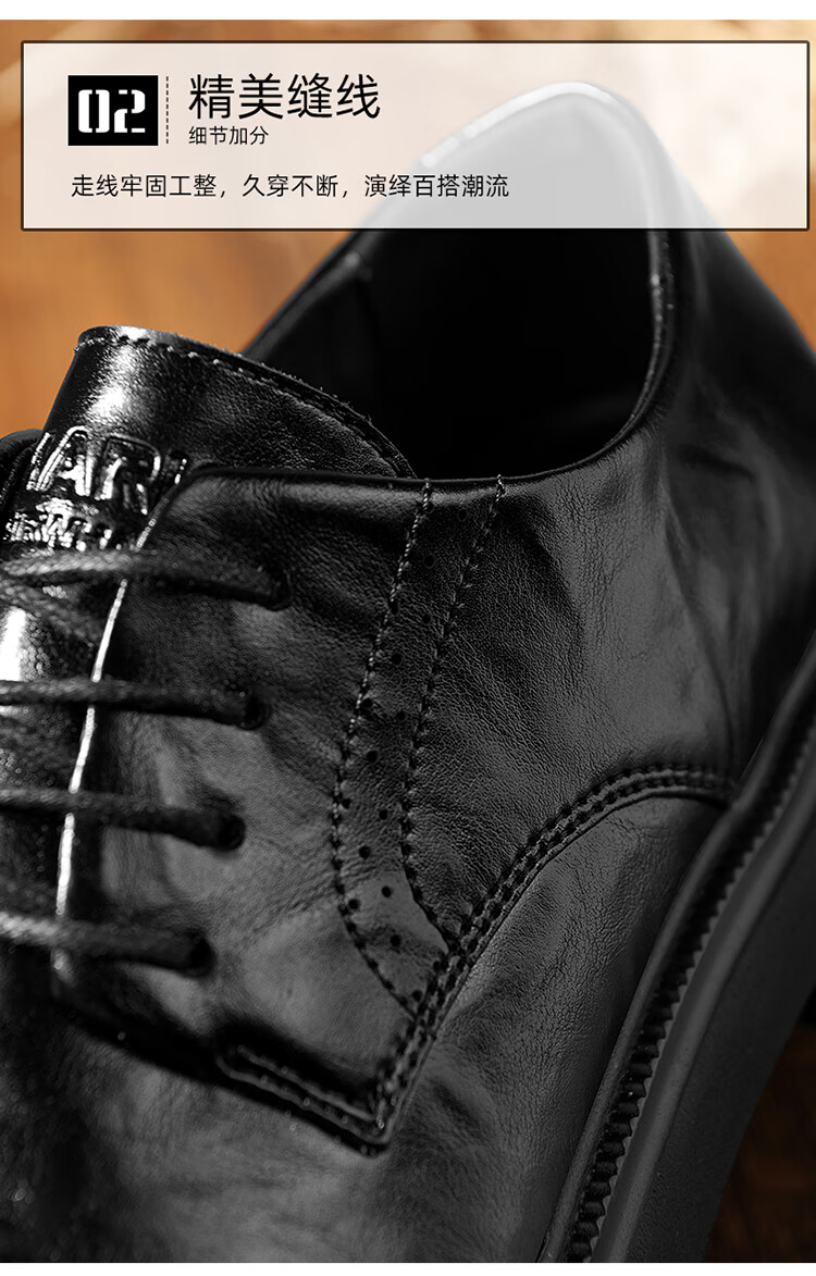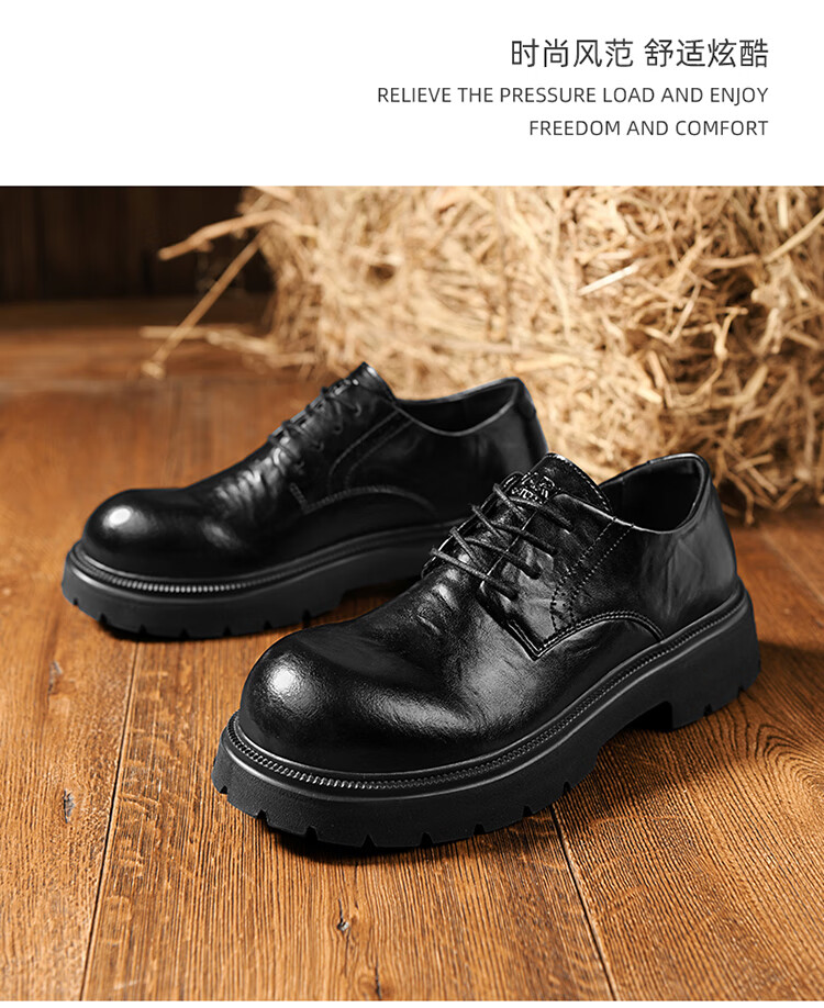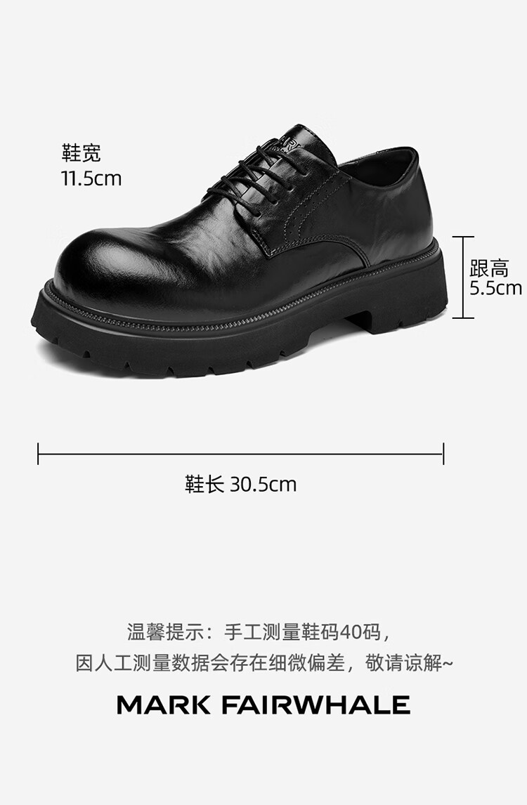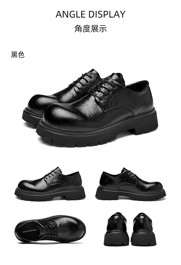 马克华菲休闲皮鞋男士商务英伦风大头皮鞋2024夏季新款增高鞋 黑色 39