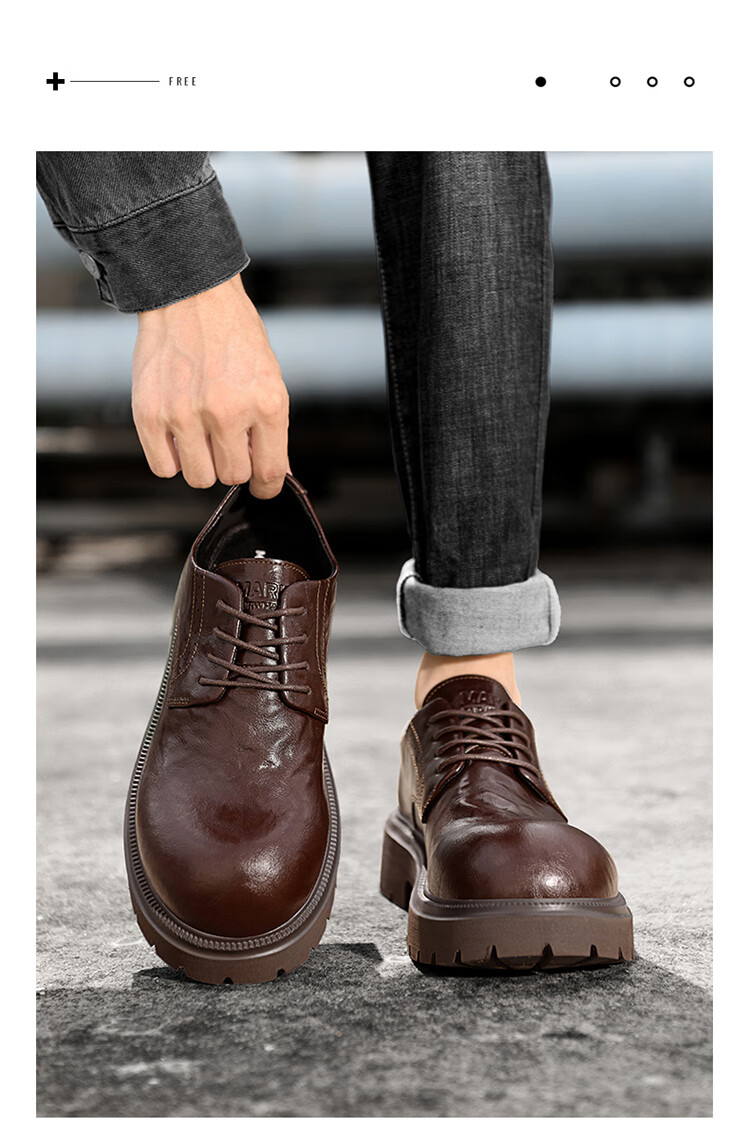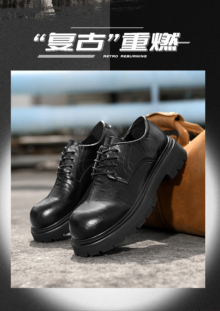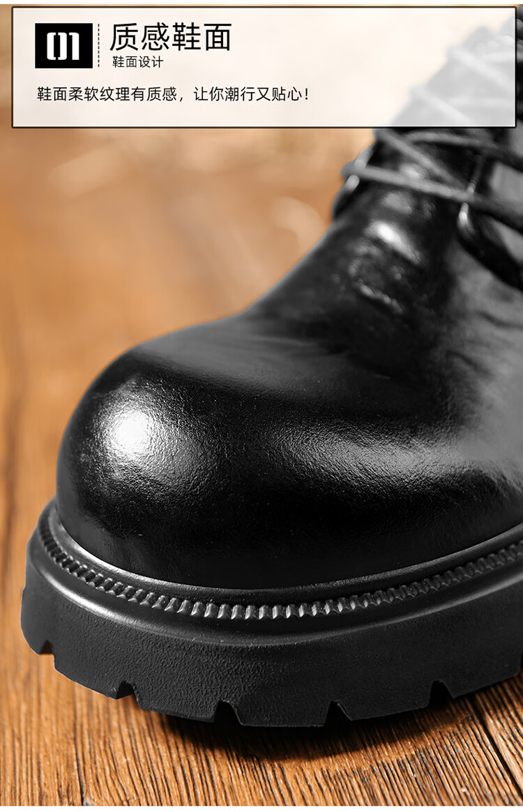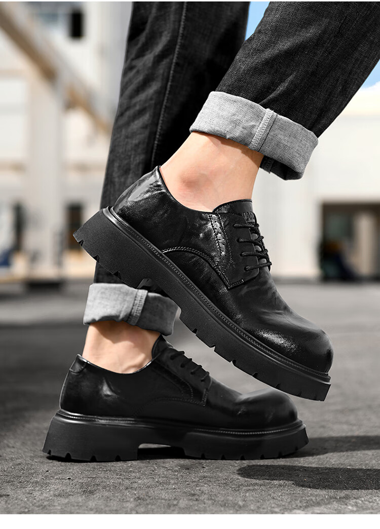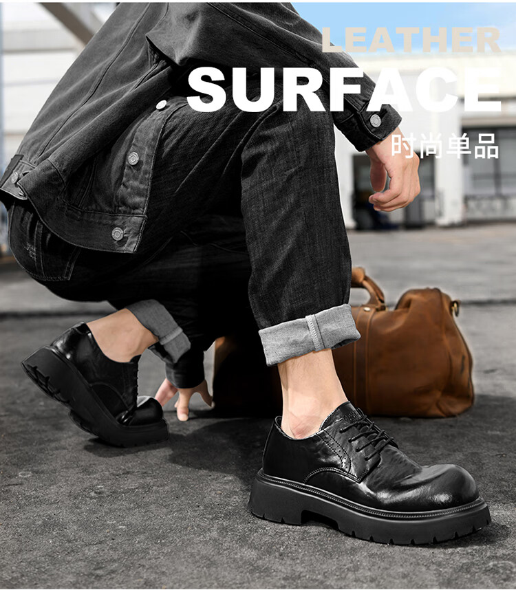 马克华菲休闲皮鞋男士商务英伦风大头皮鞋2024夏季新款增高鞋 黑色 39