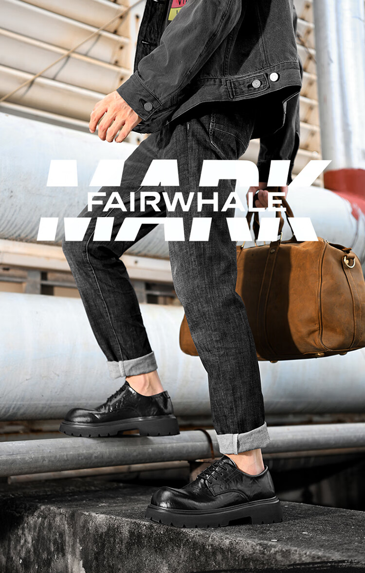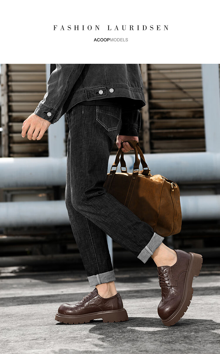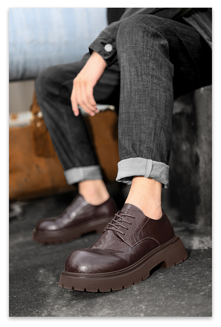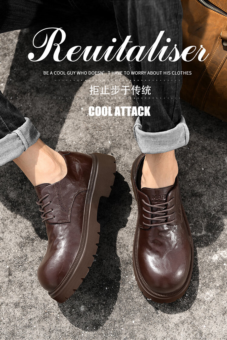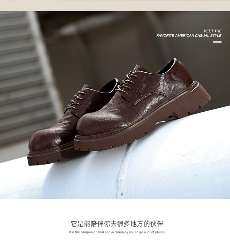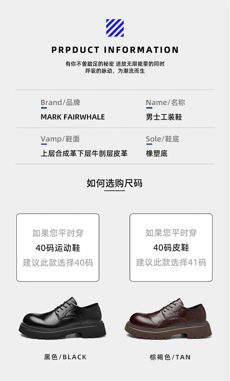 马克华菲休闲皮鞋男士商务英伦风大头皮鞋2024夏季新款增高鞋 黑色 39