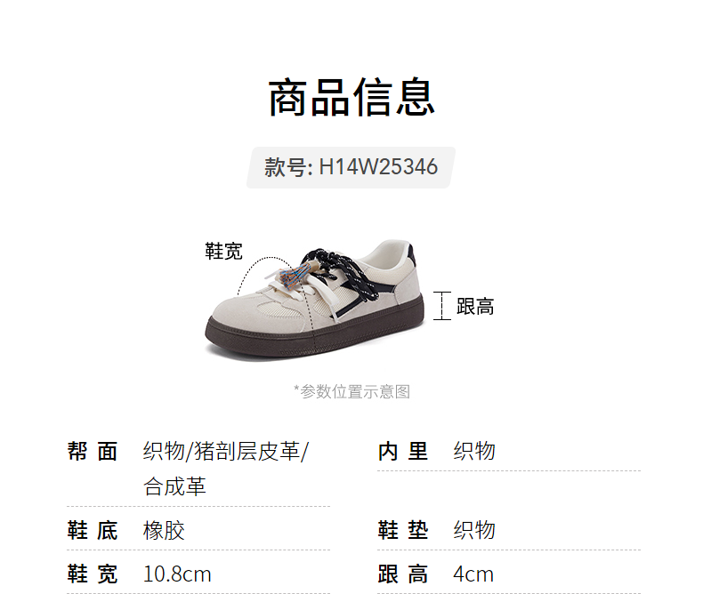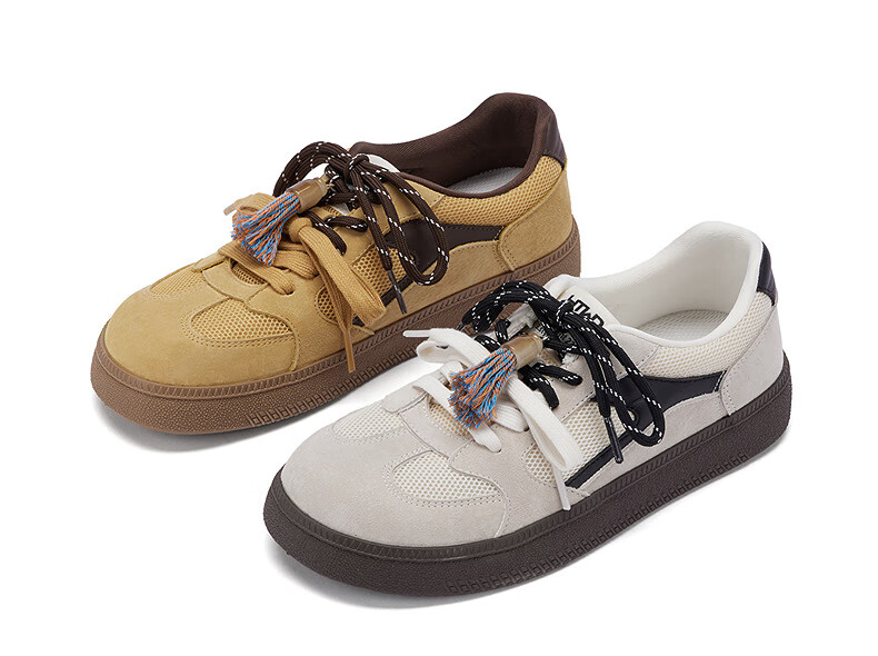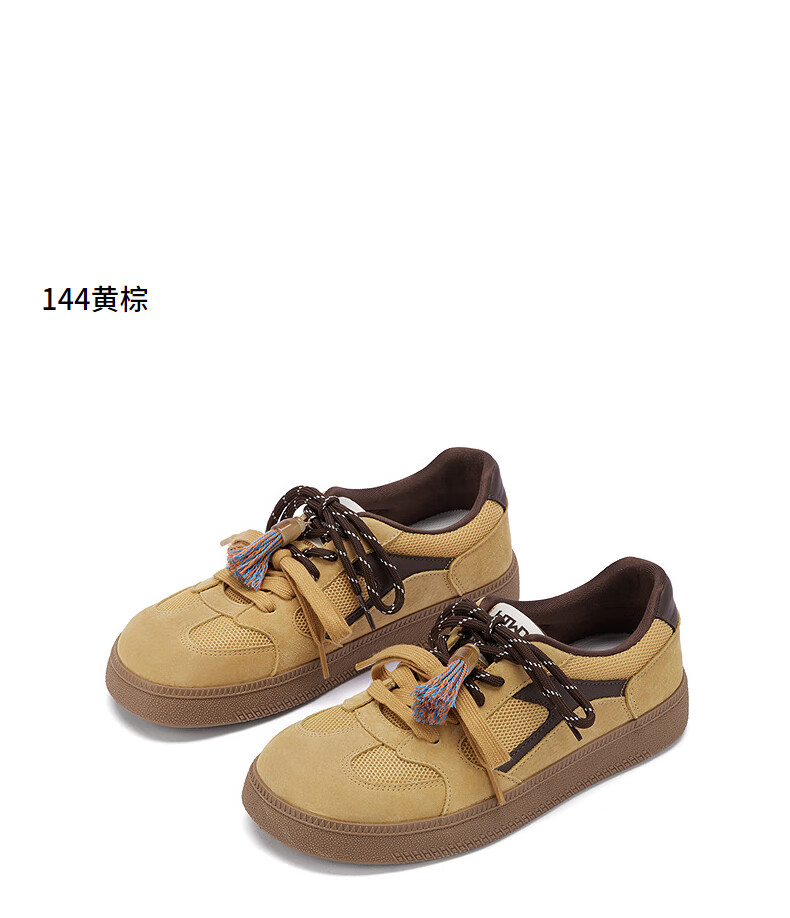 热风【商场同款】女鞋厚底德训鞋2025年秋新款百搭休闲鞋运动轻便板鞋 144黄棕 36