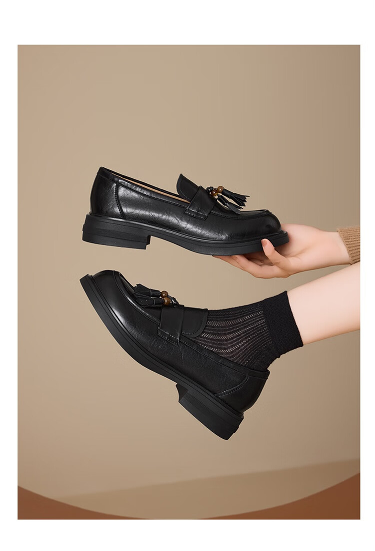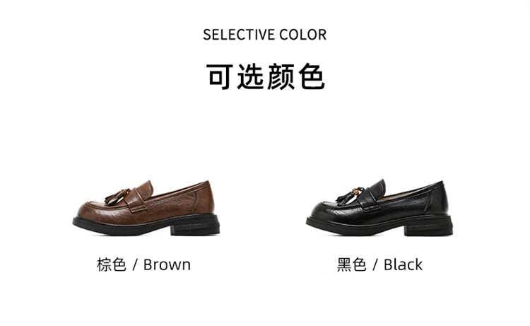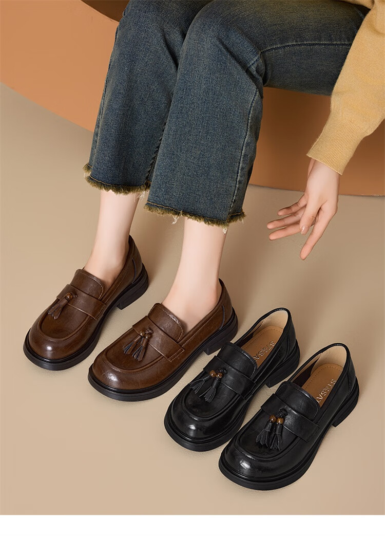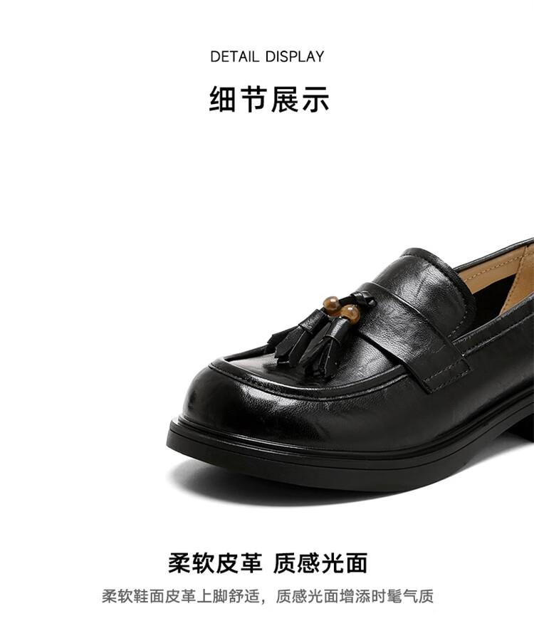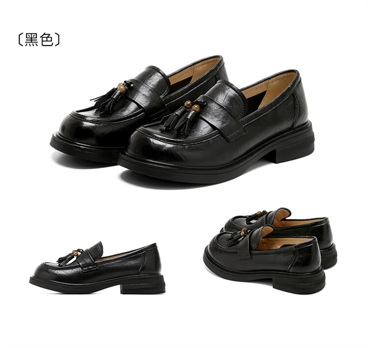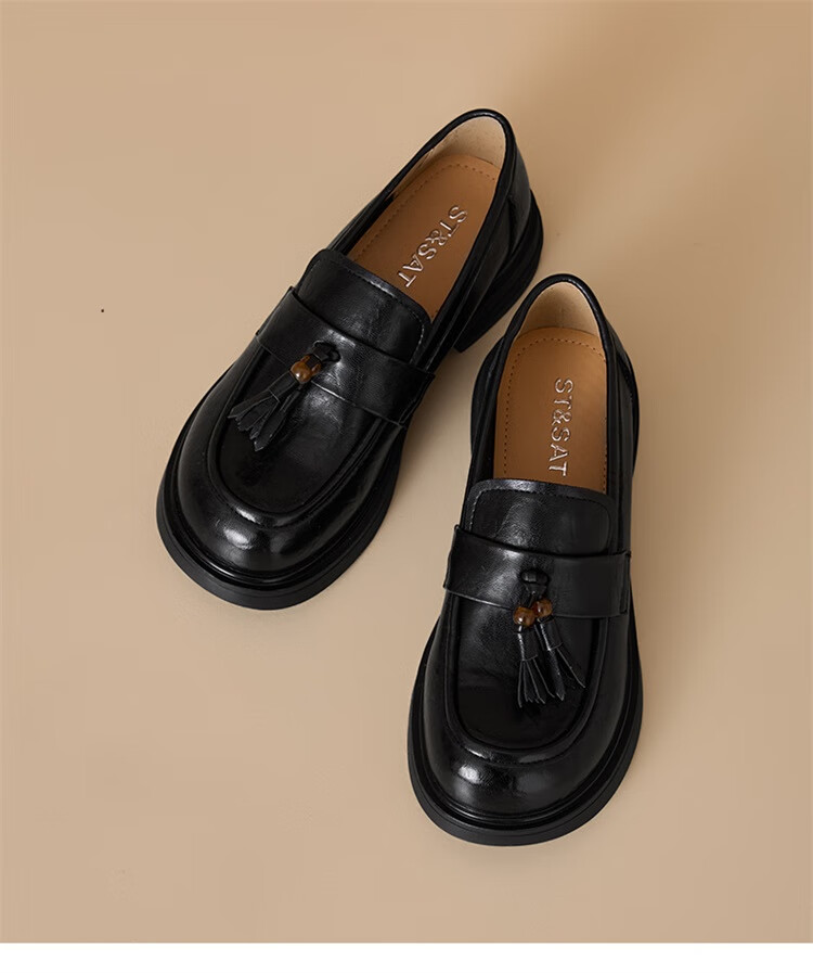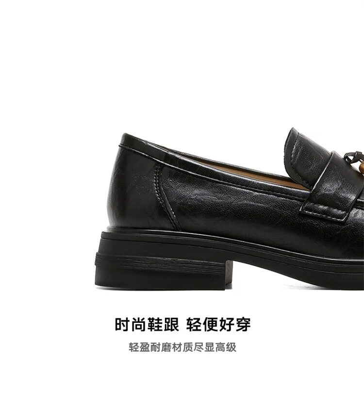 星期六时尚圆头流苏乐福鞋2025秋季新款百搭舒适单鞋MTSSD3111WMZ 黑色 35