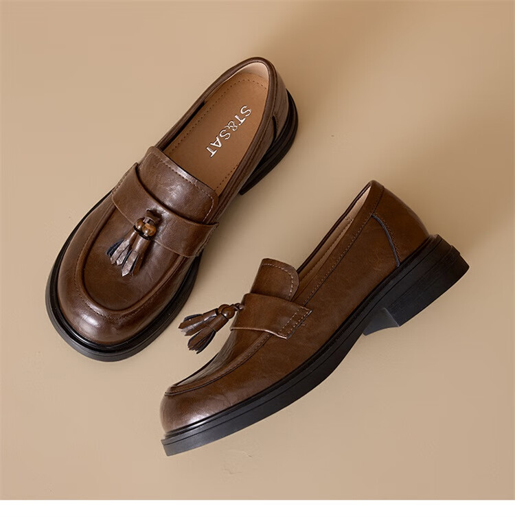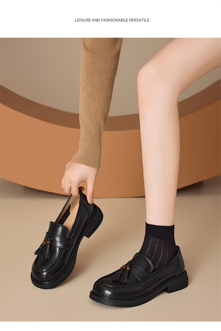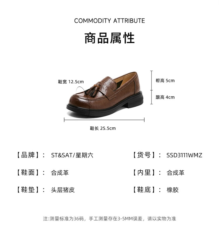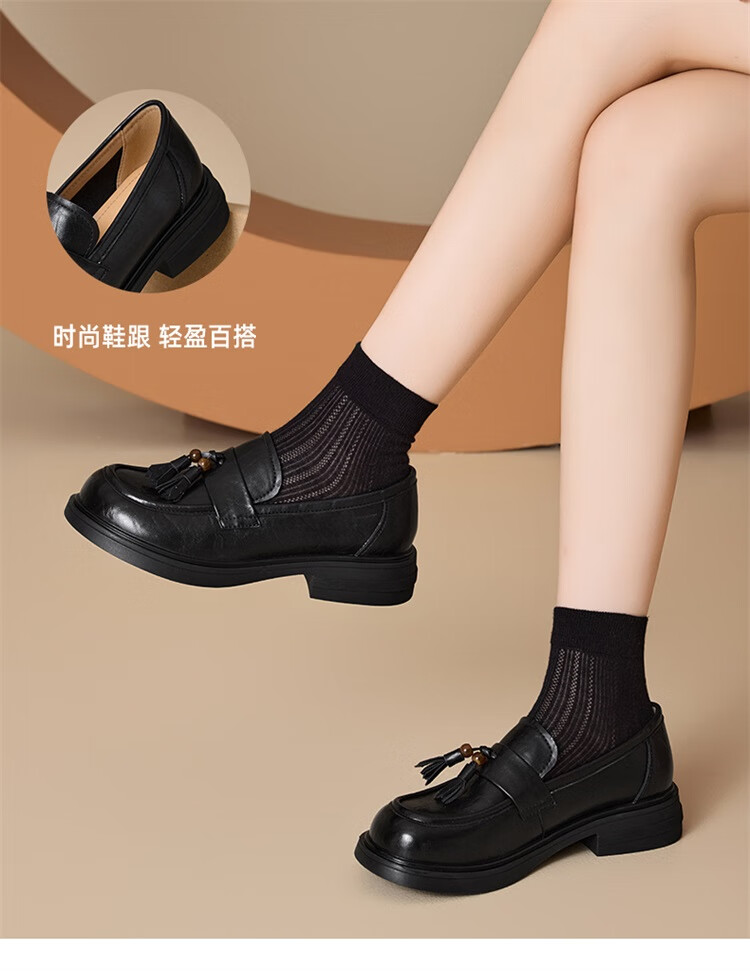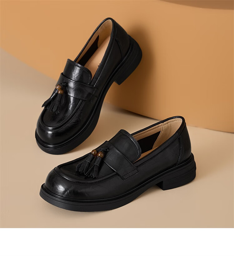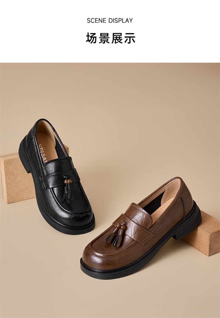 星期六时尚圆头流苏乐福鞋2025秋季新款百搭舒适单鞋MTSSD3111WMZ 黑色 35