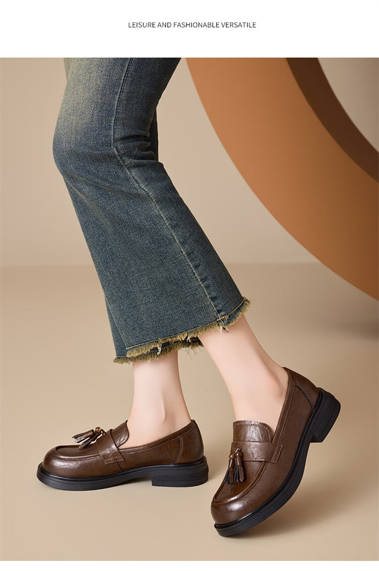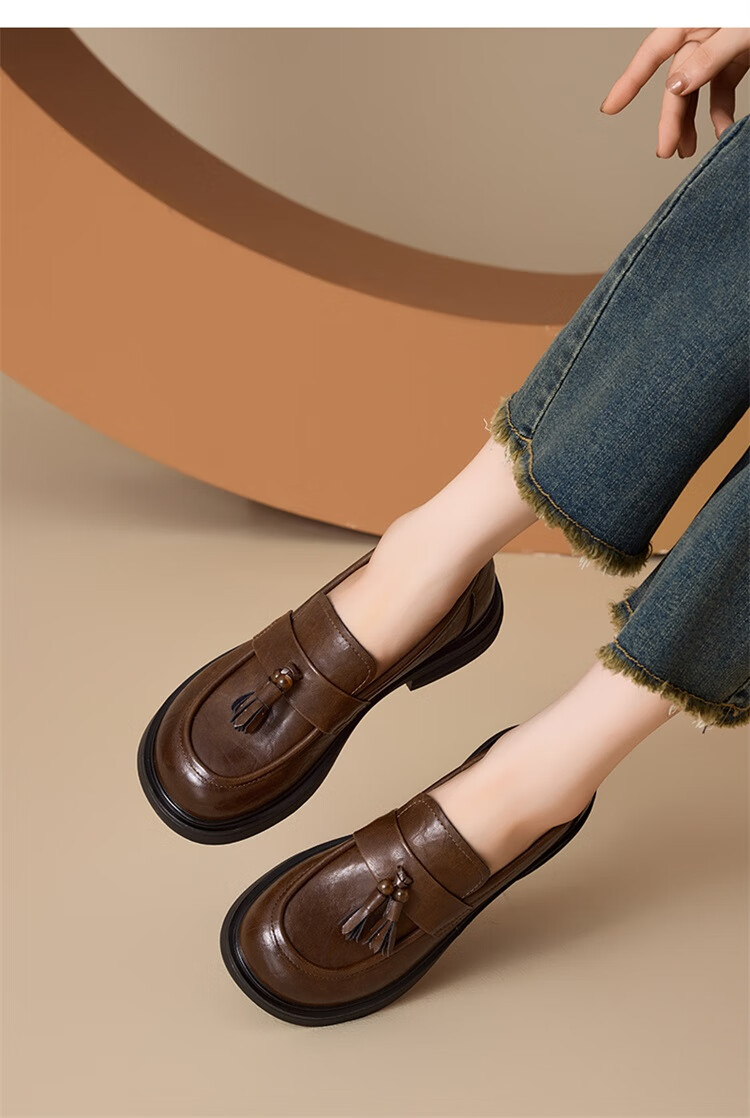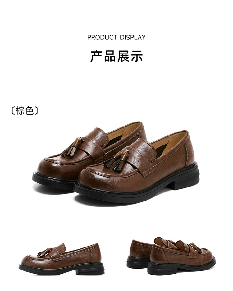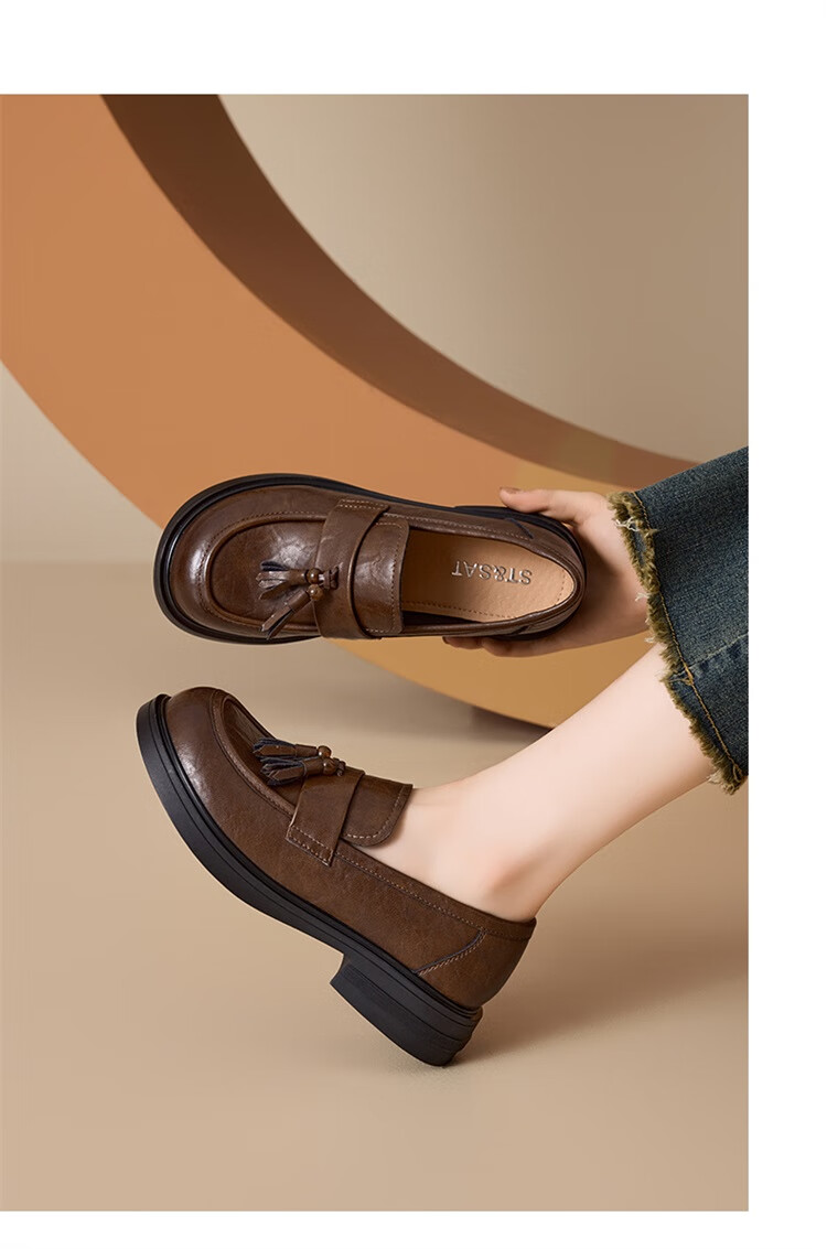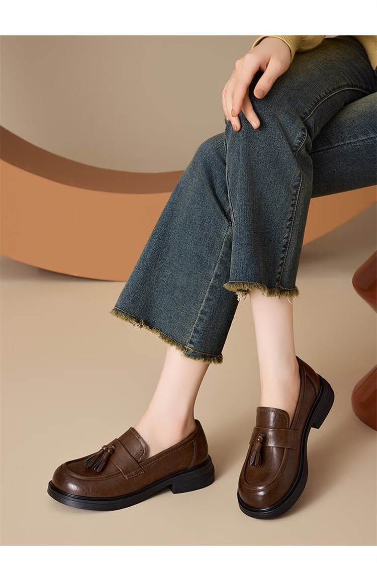 星期六时尚圆头流苏乐福鞋2025秋季新款百搭舒适单鞋MTSSD3111WMZ 黑色 35