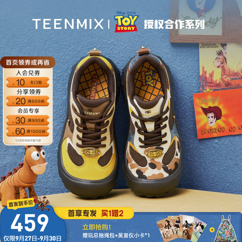 天美意玩具总动员联名胡迪厚底户外运动鞋大头休闲鞋女单鞋2025秋新款 米色 34