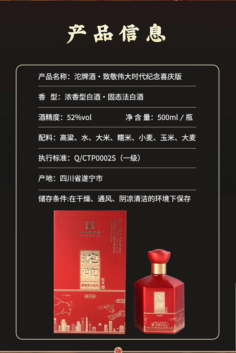 五粮液股份 东方龙 金龙献瑞 浓香型白酒 52度500ml*2瓶 双瓶 中秋送礼