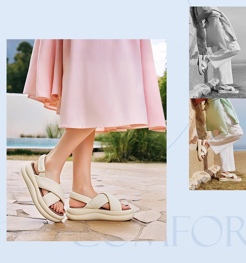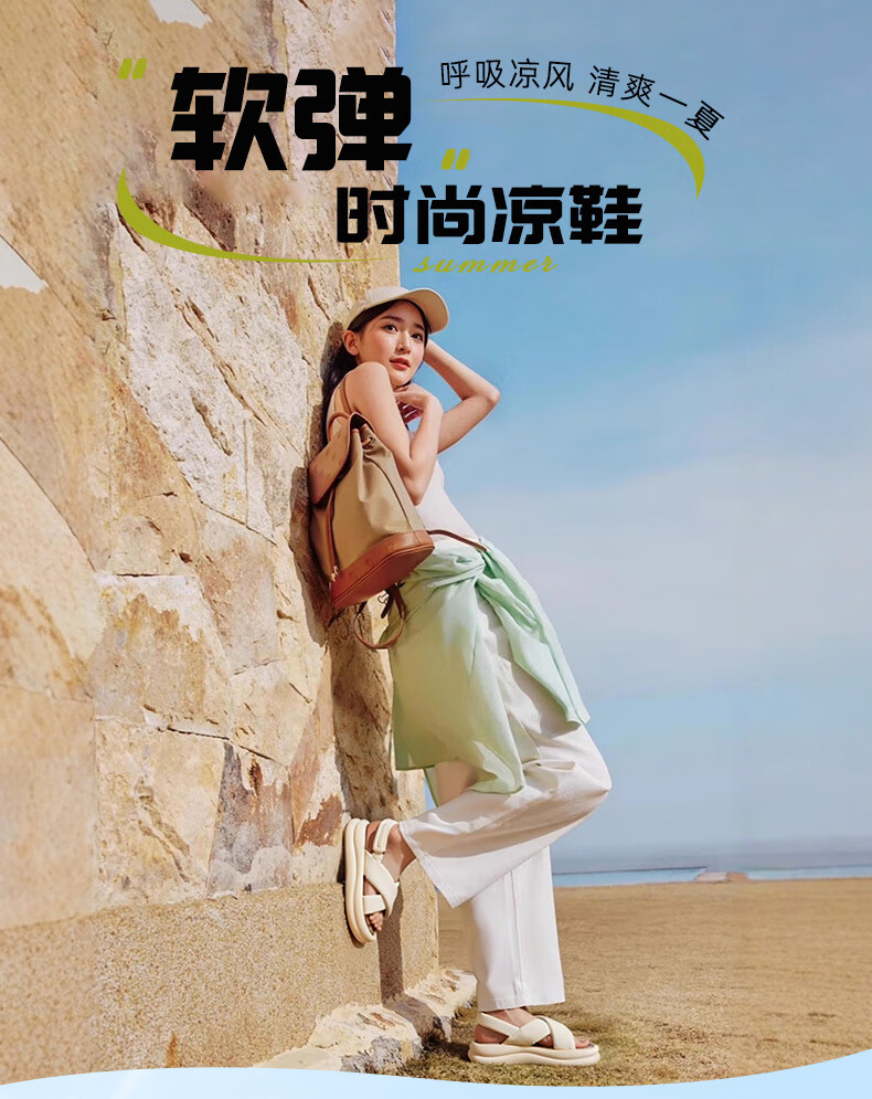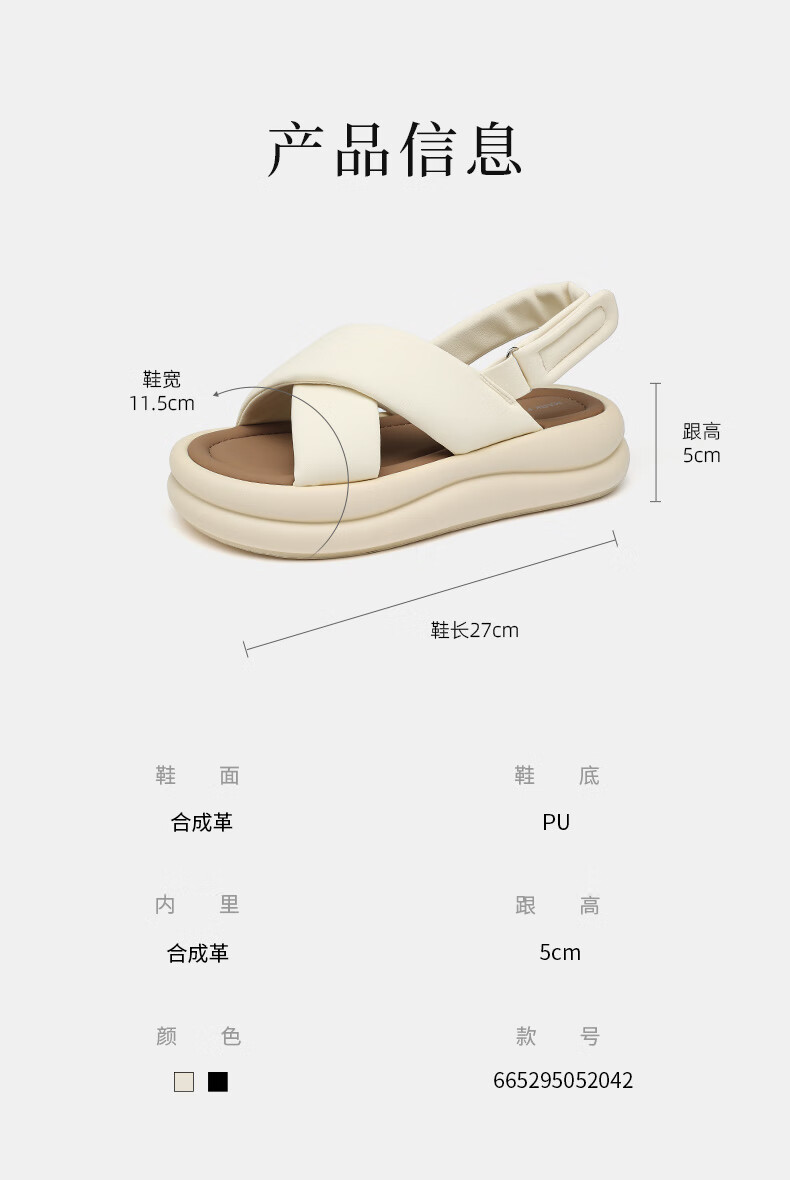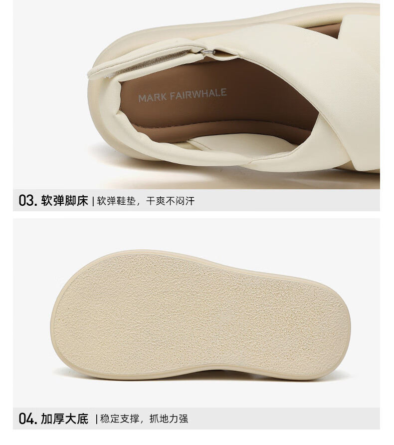马克华菲厚底凉鞋女外穿2025夏季新款超轻运动休闲凉鞋女 米白 37