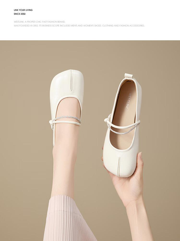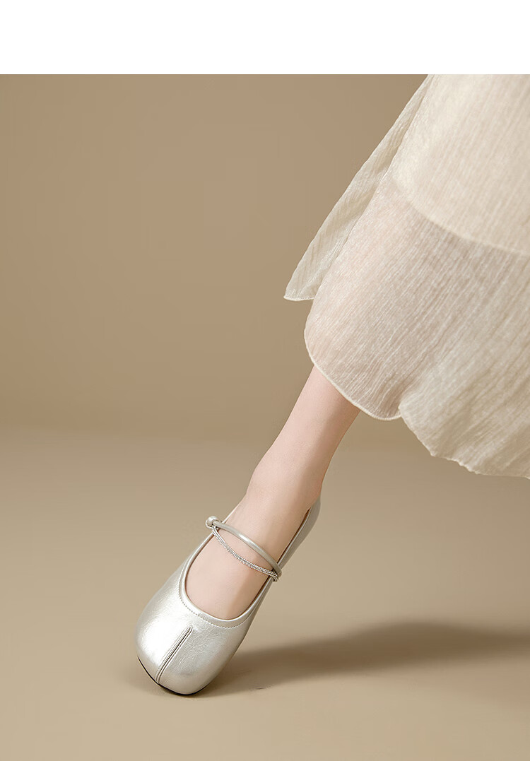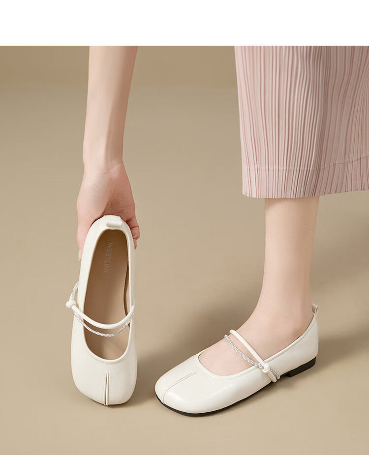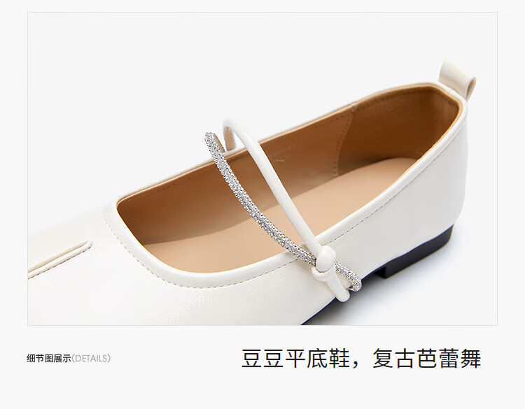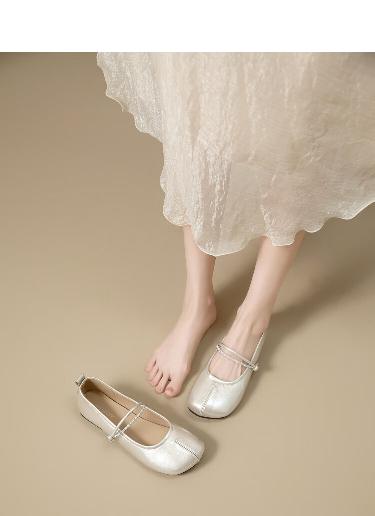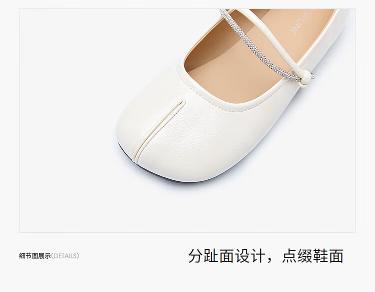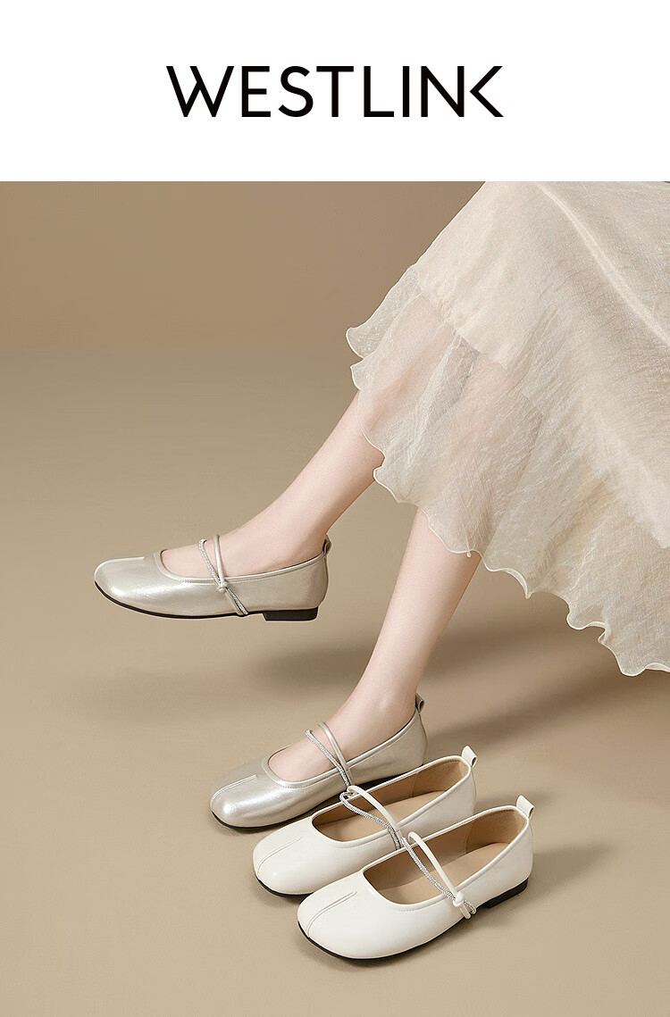 西遇平底单鞋女2025新款秋季法式舒适软底玛丽珍小皮鞋圆头分趾鞋 米色 35 (225)