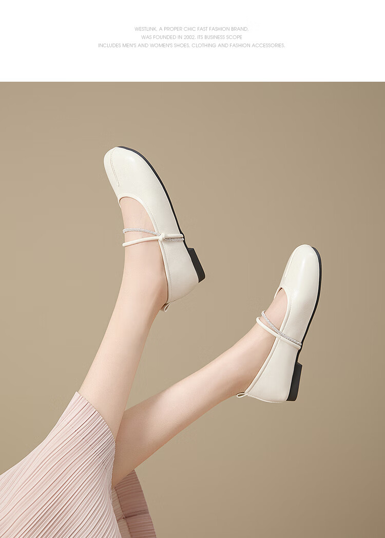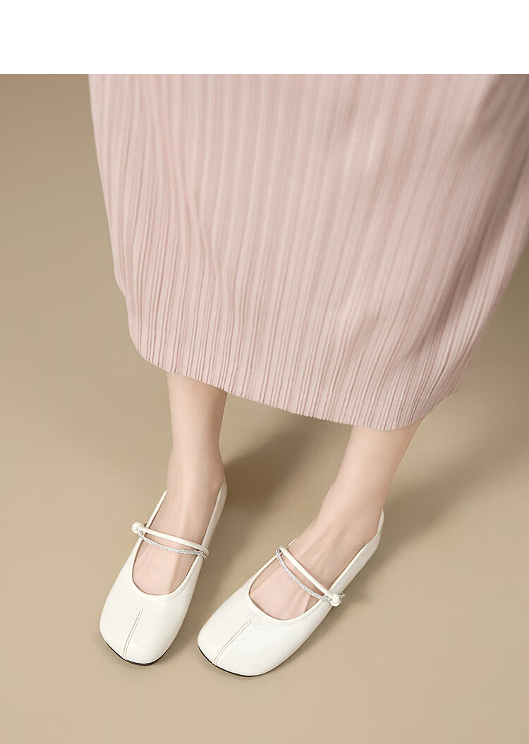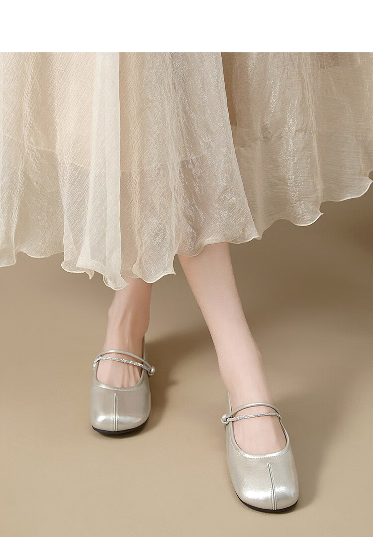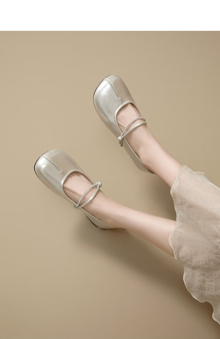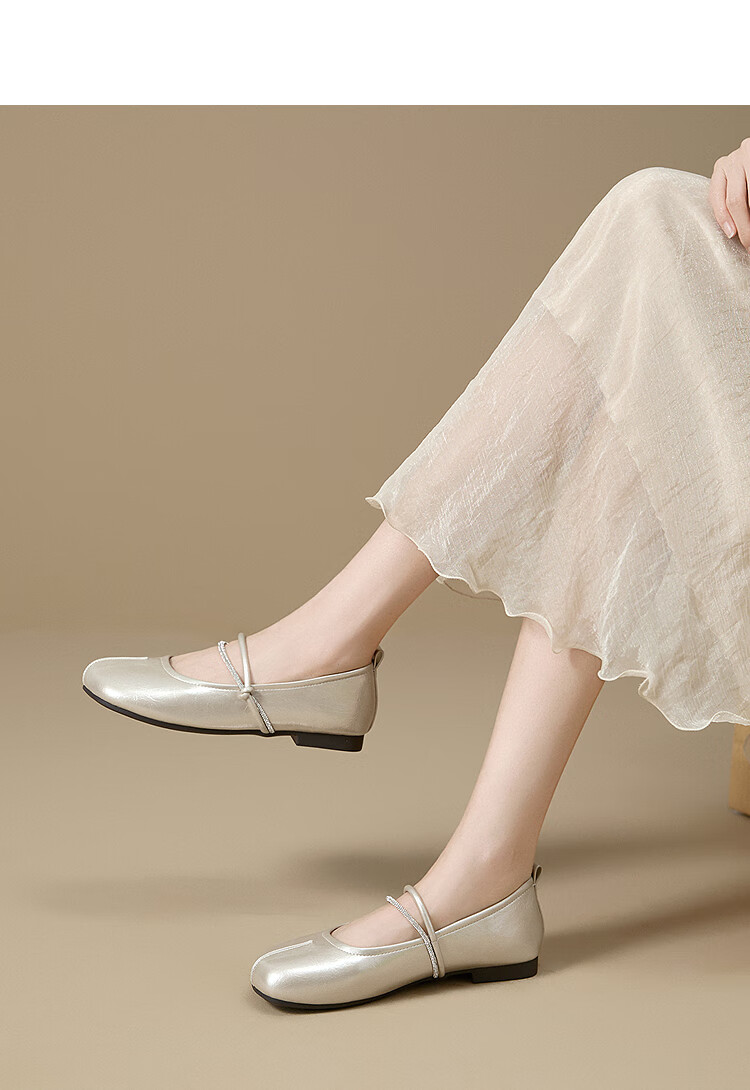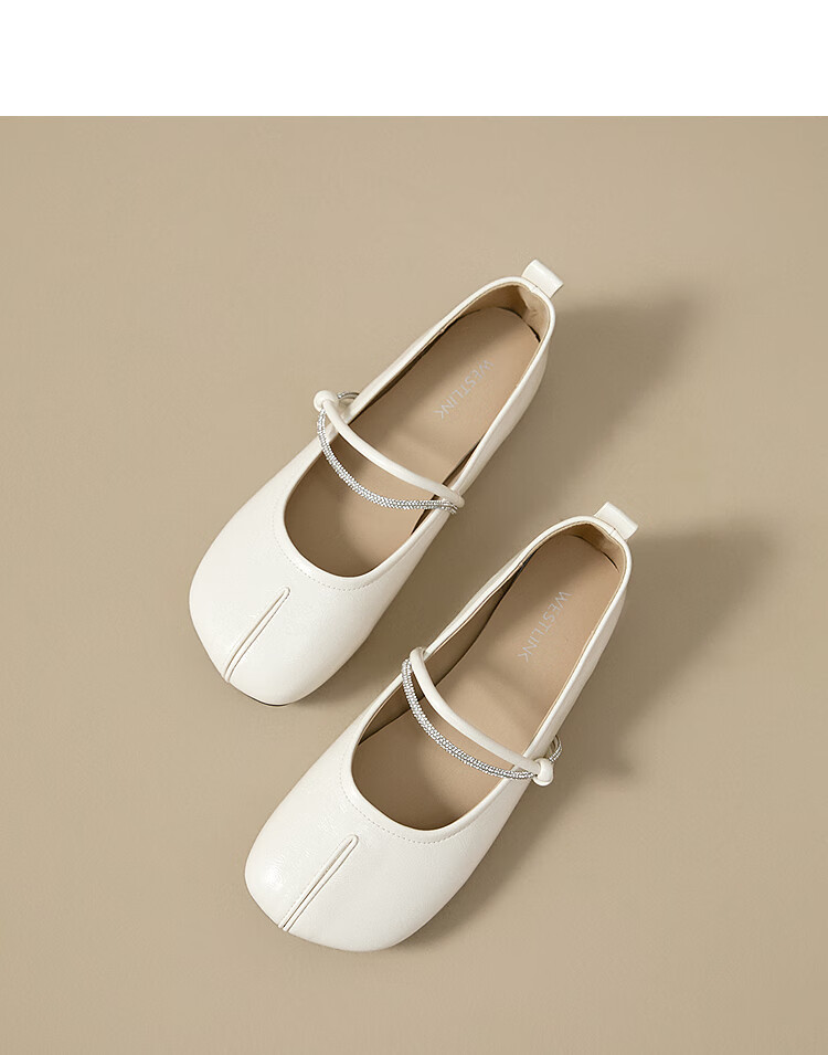 西遇平底单鞋女2025新款秋季法式舒适软底玛丽珍小皮鞋圆头分趾鞋 米色 35 (225)