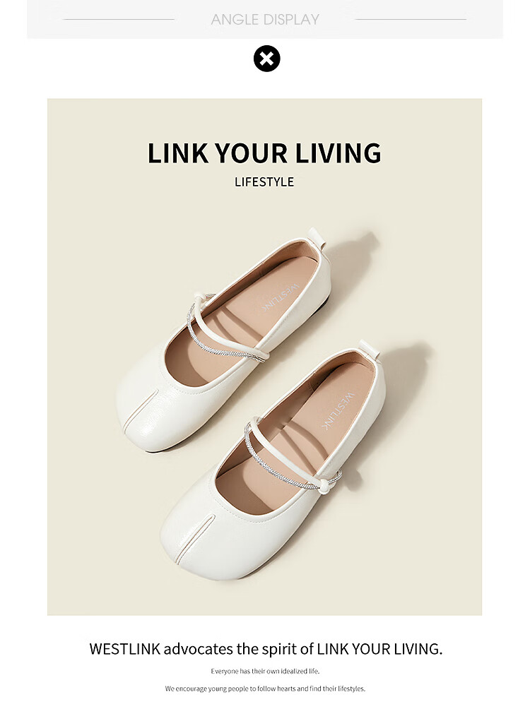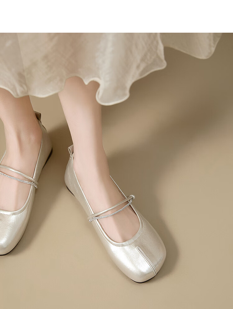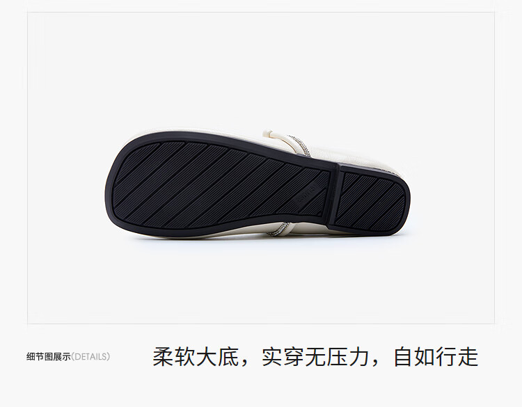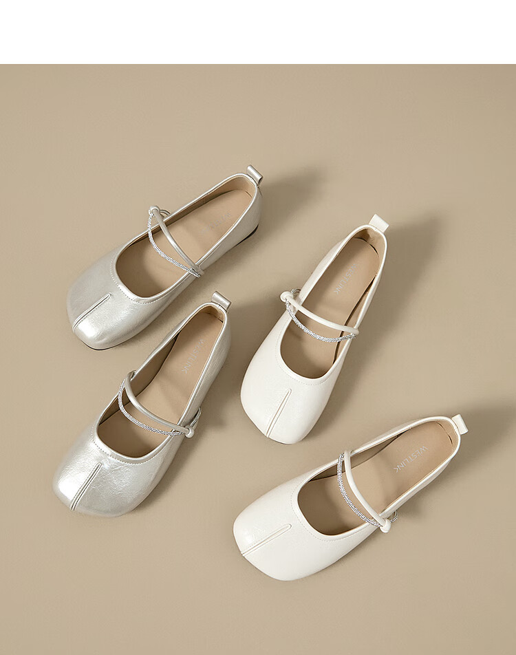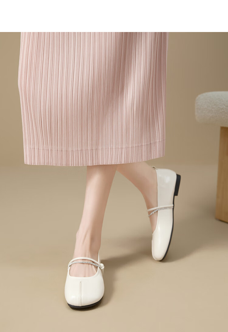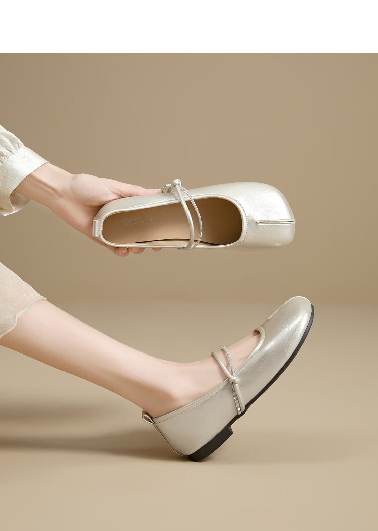 西遇平底单鞋女2025新款秋季法式舒适软底玛丽珍小皮鞋圆头分趾鞋 米色 35 (225)