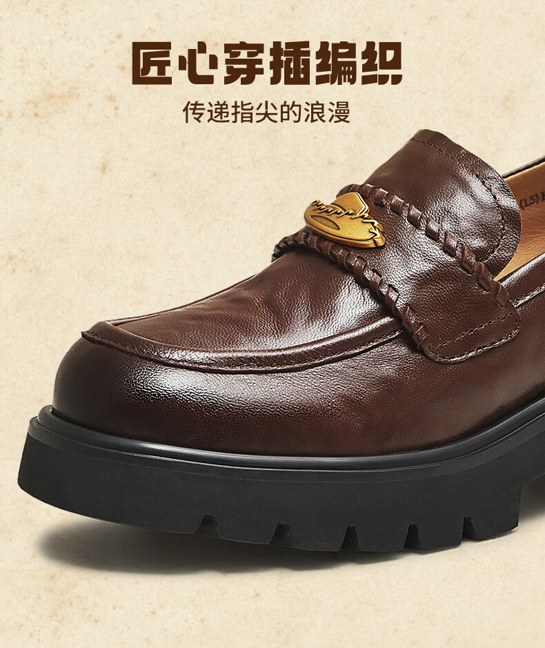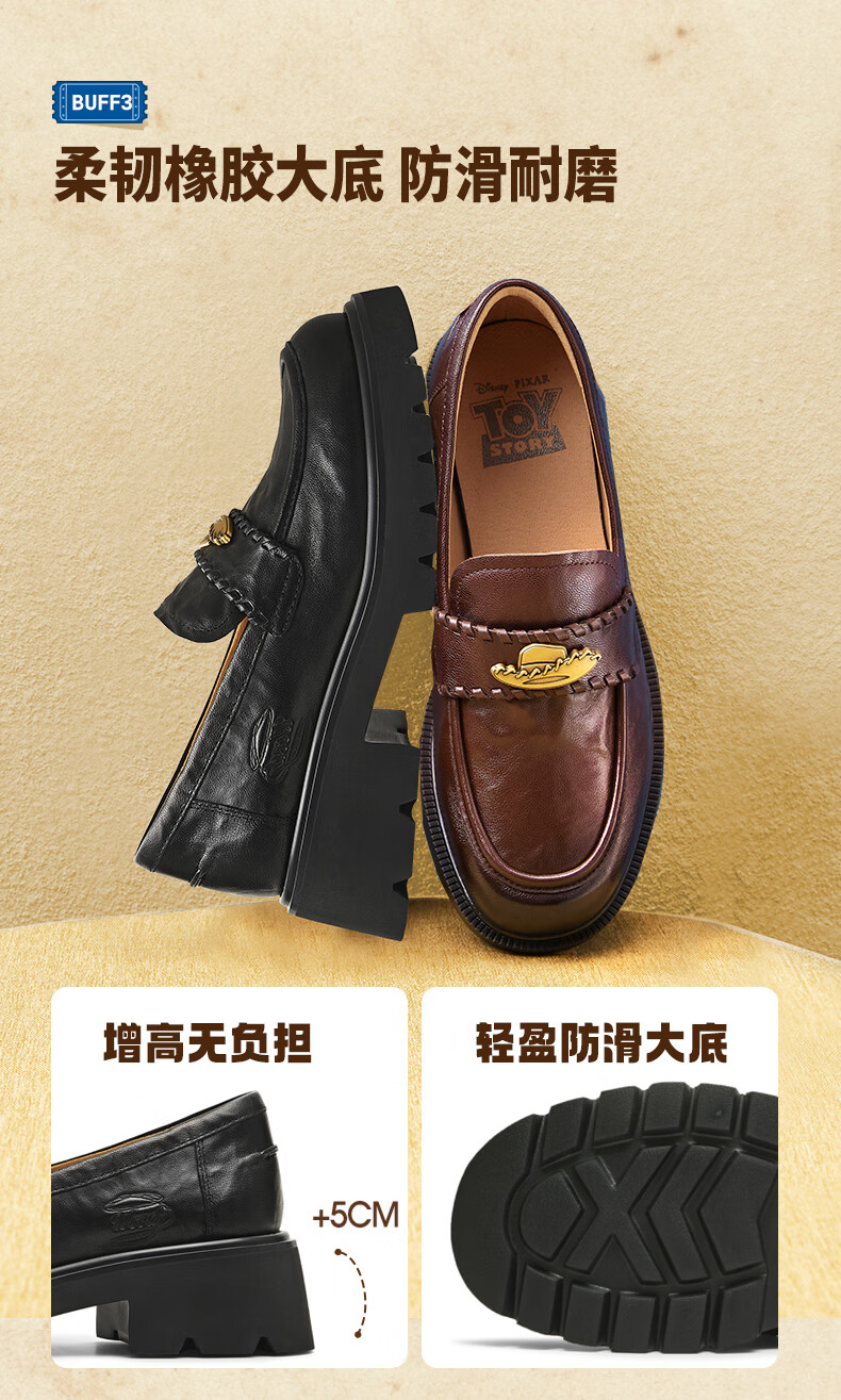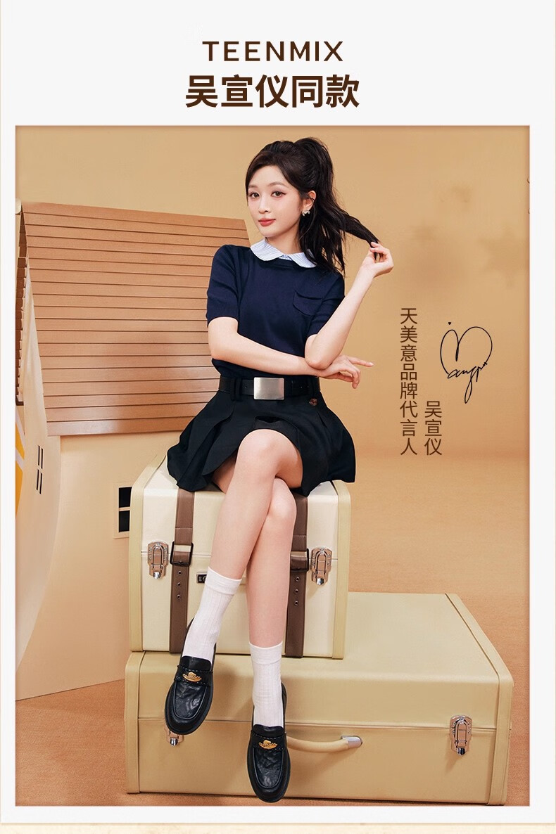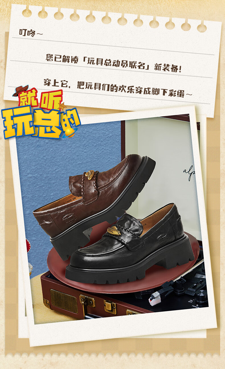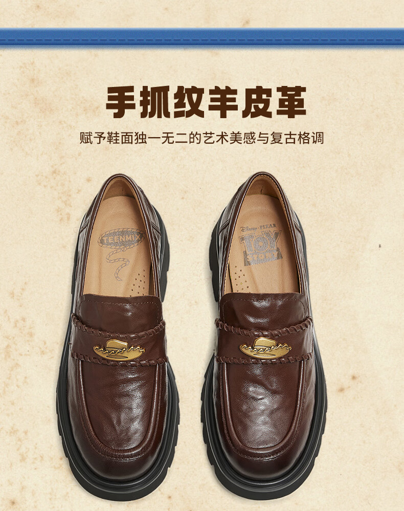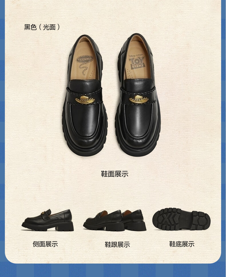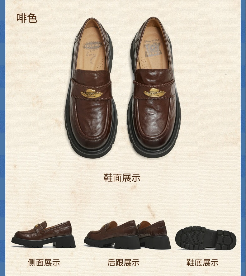 天美意吴宣仪同款玩具总动员联名常青藤乐福鞋软底皮鞋女厚底单鞋秋新款 5CM款-翠丝啡色(手抓羊皮) 35