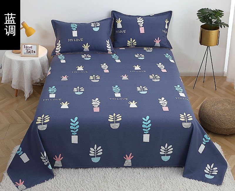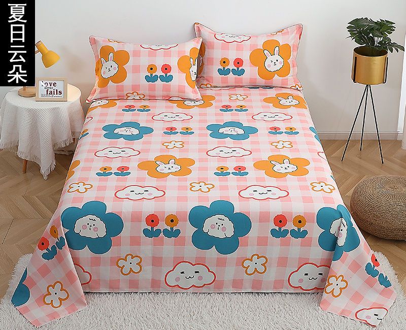 林夕一晨小碎花床单被套纯棉斜纹活性印花单件被罩单双人网红学生 亮橘郁金香 150*200床笠1件