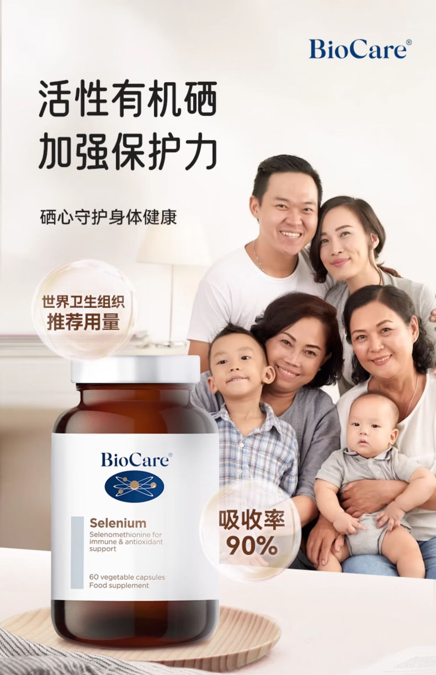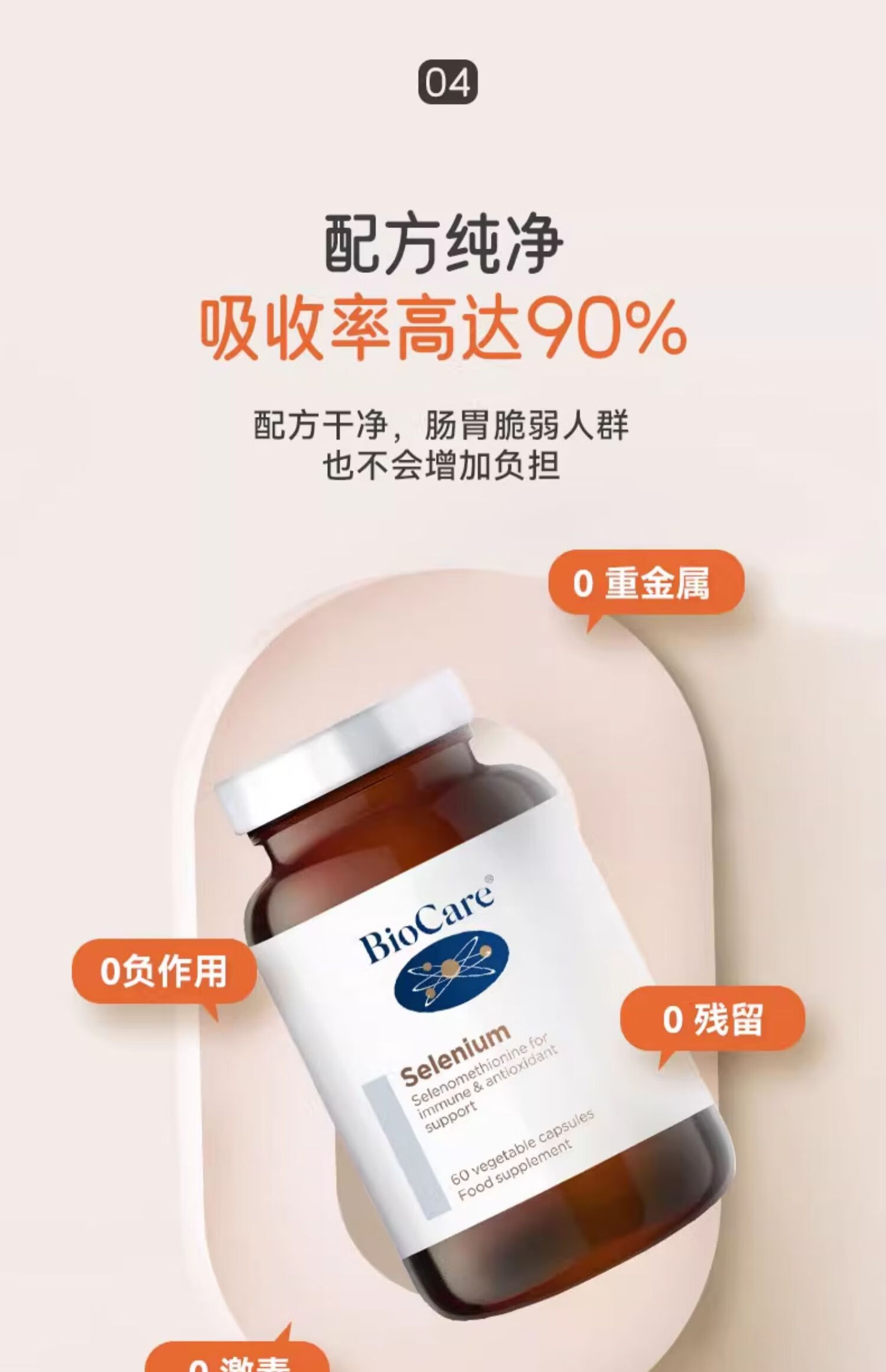 BioCare贝欧科有机硒胶囊60粒 英国原装进口补硒片硒代蛋氨酸女性非酵母