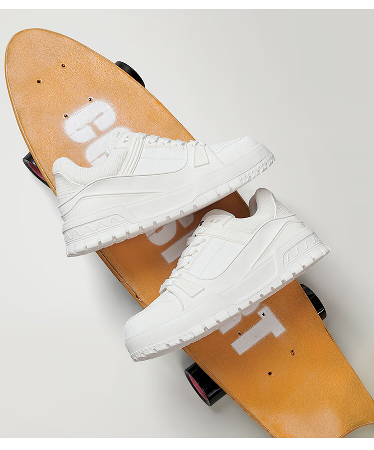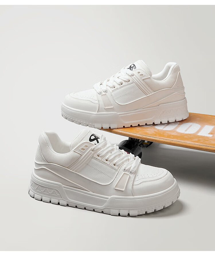 马克华菲男鞋厚底老爹鞋2025新款秋季增高鞋子男士运动休闲鞋 白棕 45