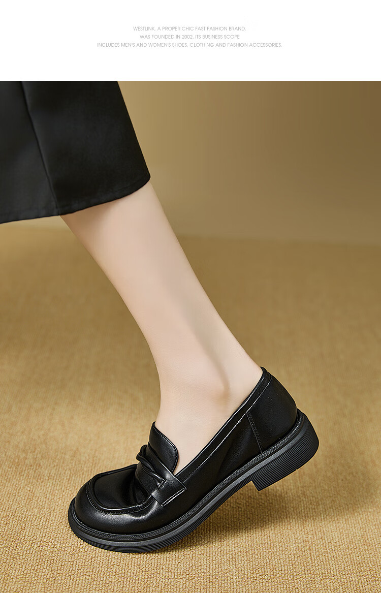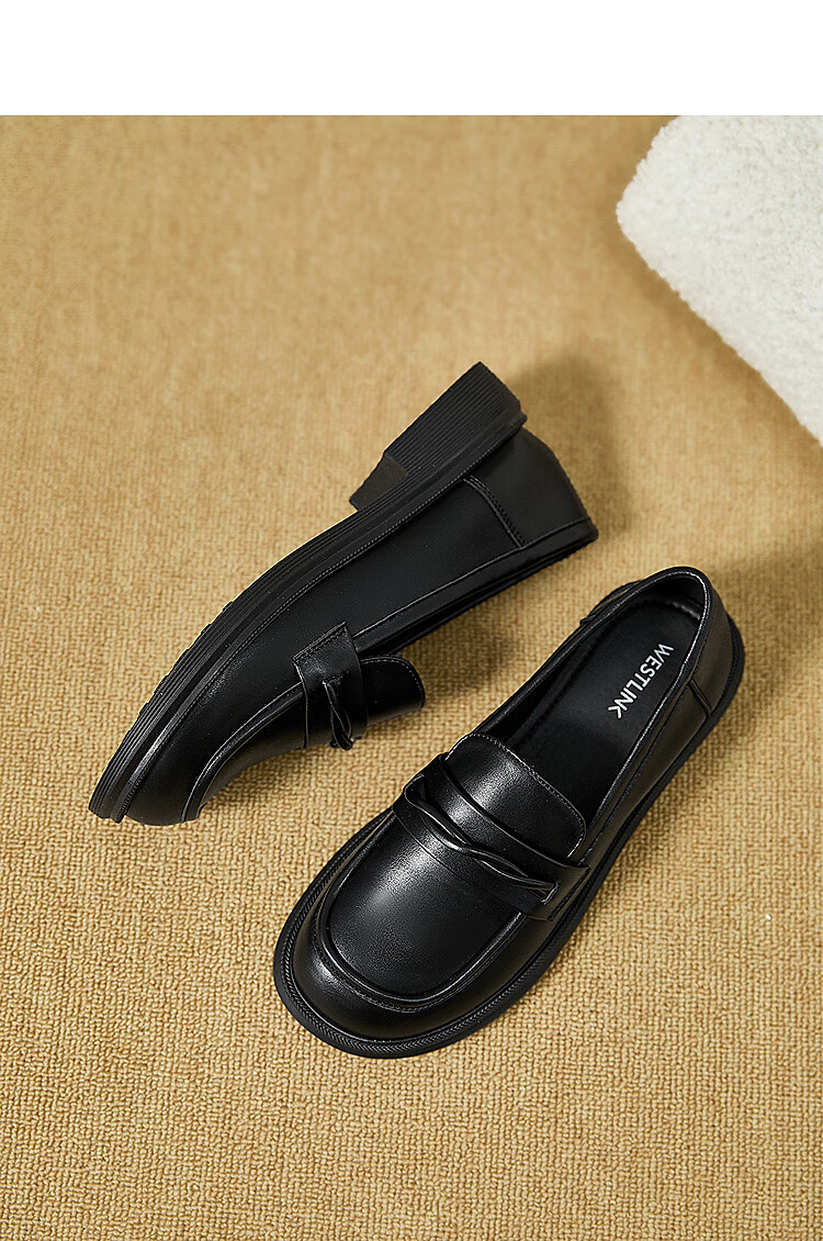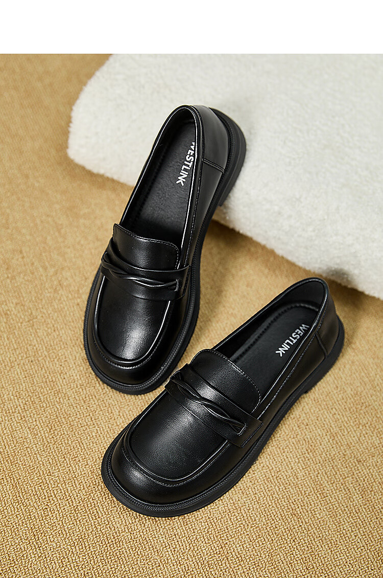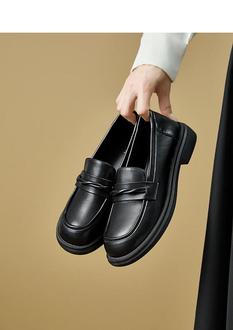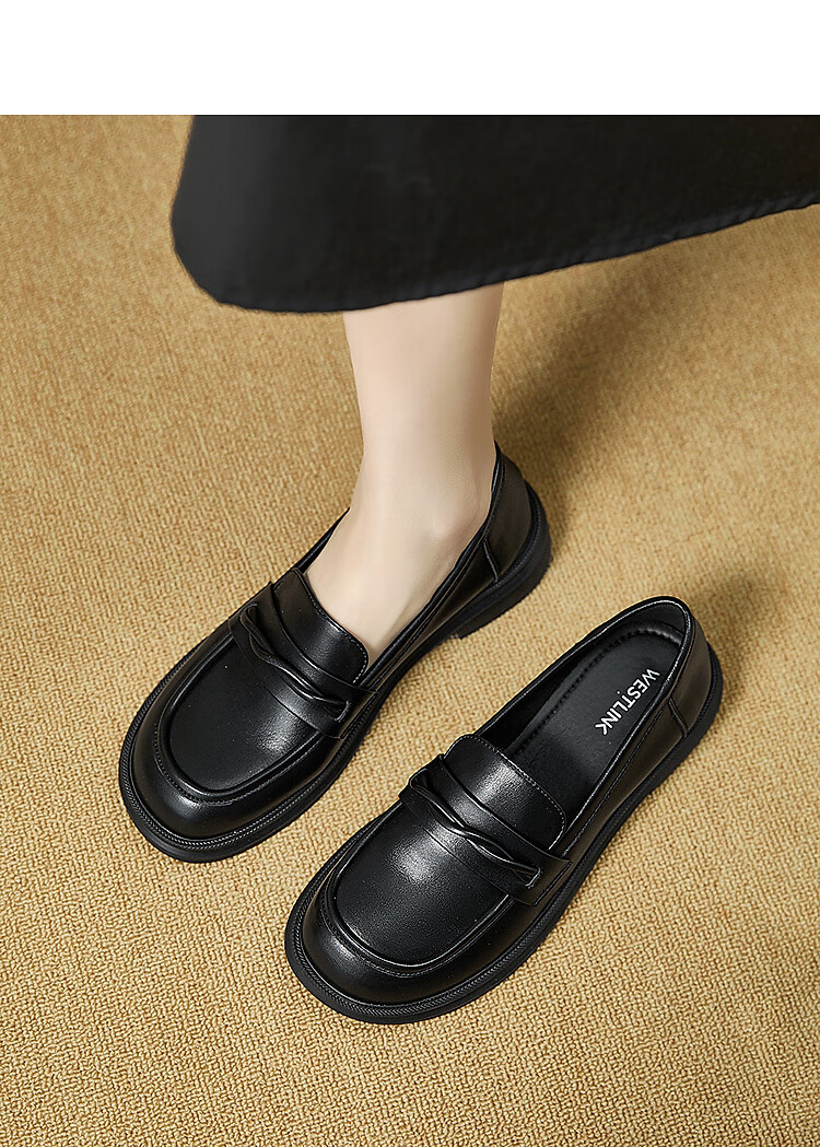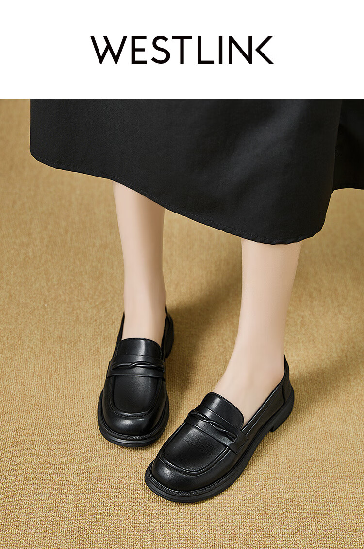 西遇平底乐福鞋女2025新款秋季简约一脚蹬单鞋黑色小皮鞋 黑色 (预售9月25日) 35 (225)