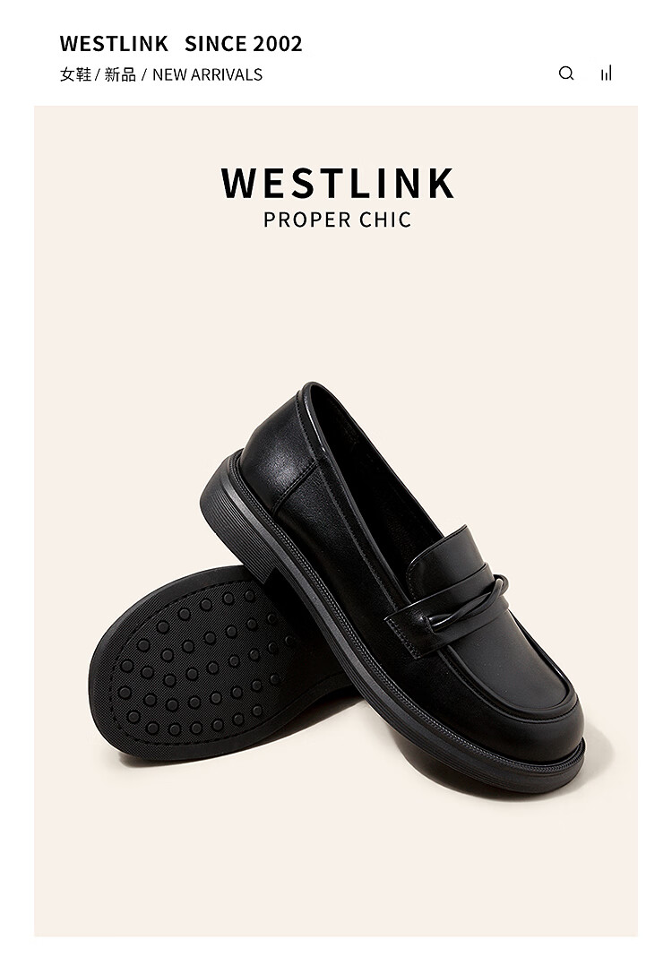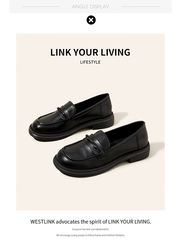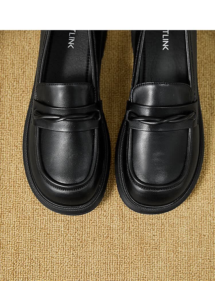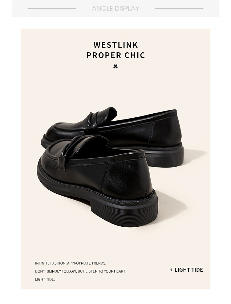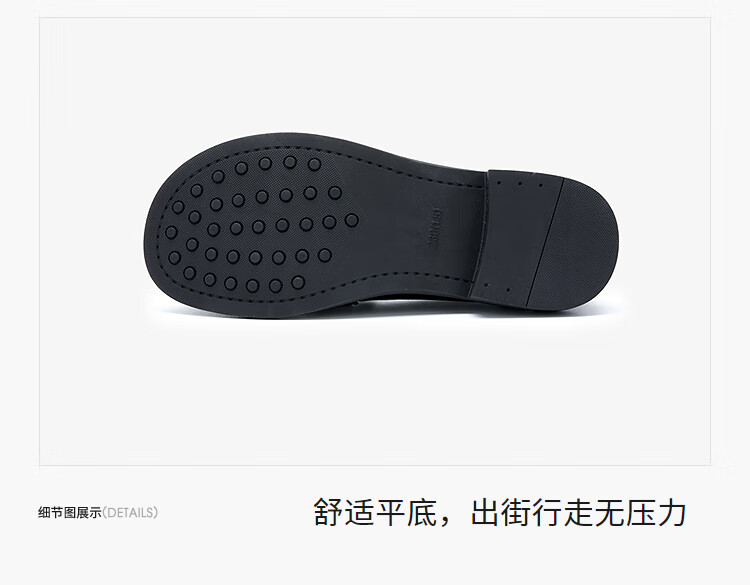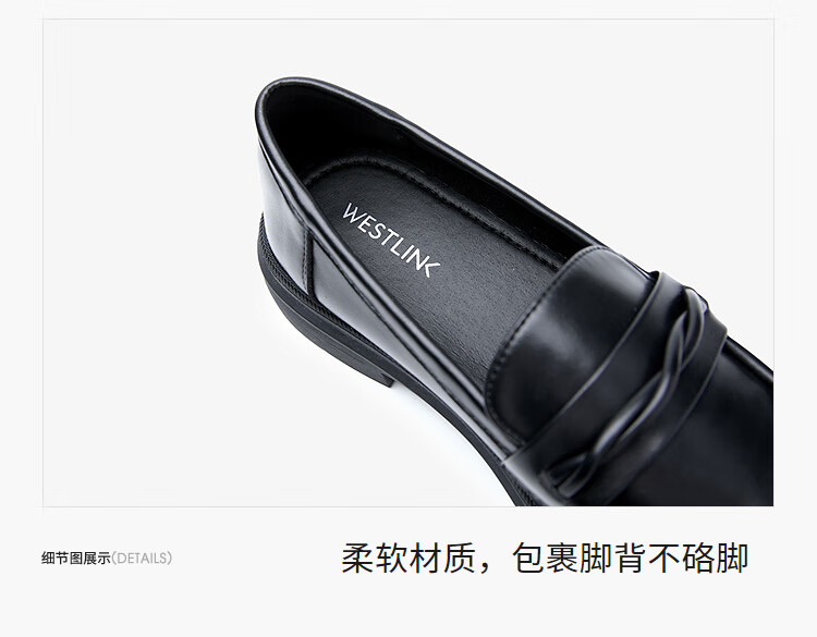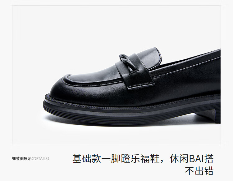 西遇平底乐福鞋女2025新款秋季简约一脚蹬单鞋黑色小皮鞋 黑色 (预售9月25日) 35 (225)