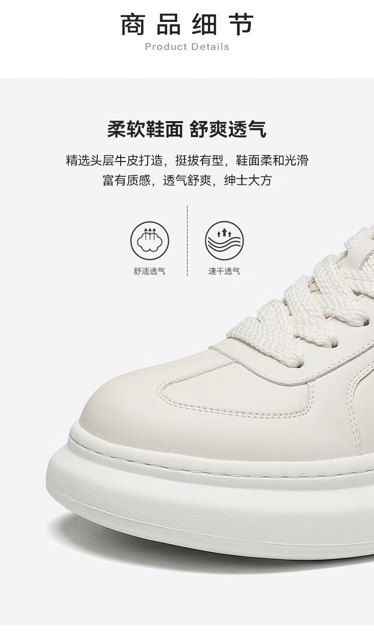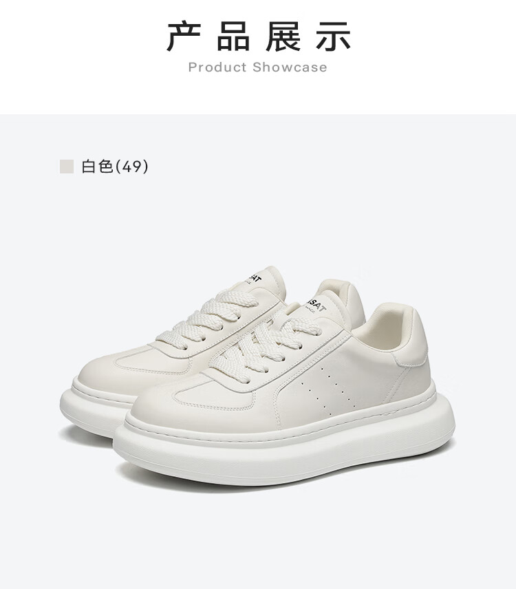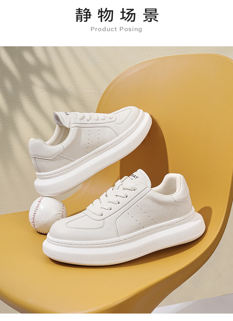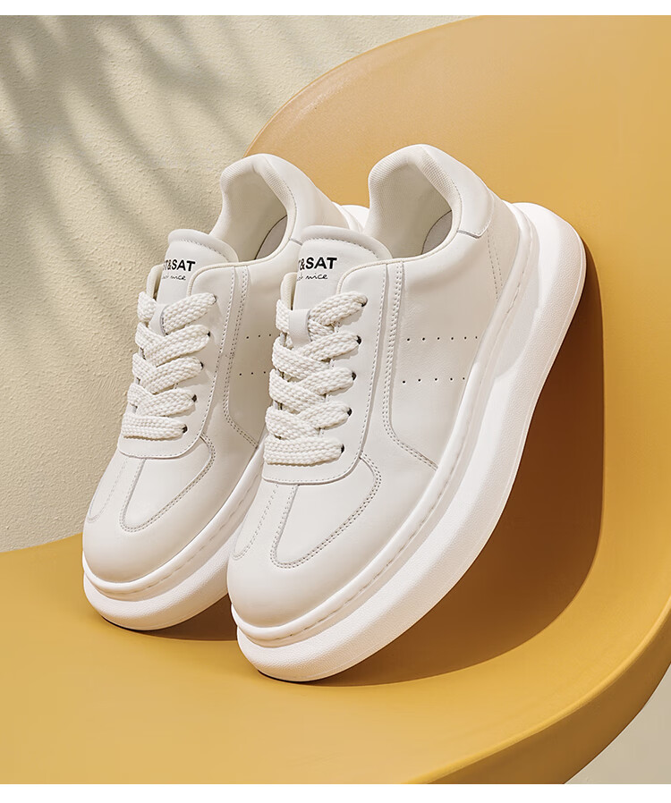星期六男鞋时尚头层牛皮男士厚底增高休闲运动鞋透气板鞋小白鞋子男
