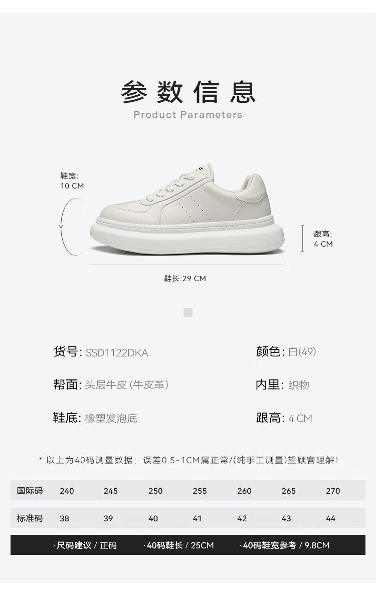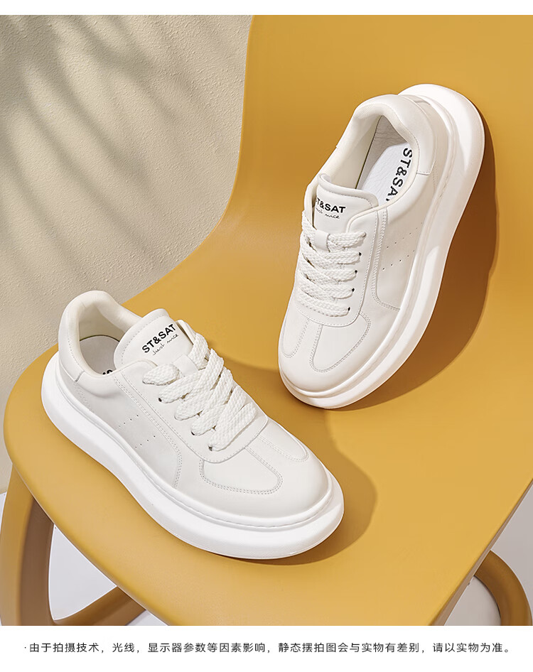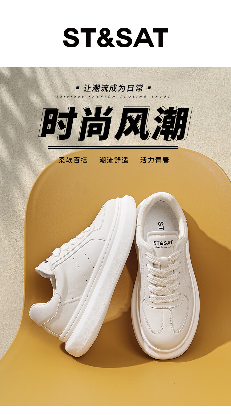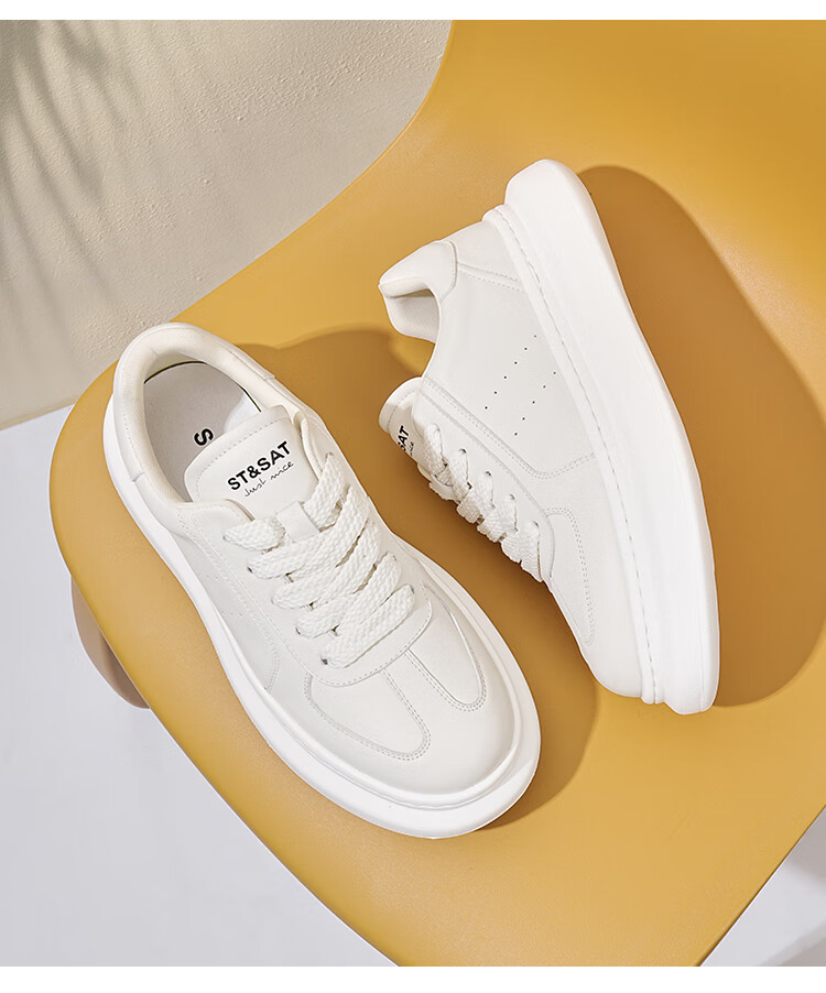 星期六男鞋时尚头层牛皮男士厚底增高休闲运动鞋透气板鞋小白鞋子男