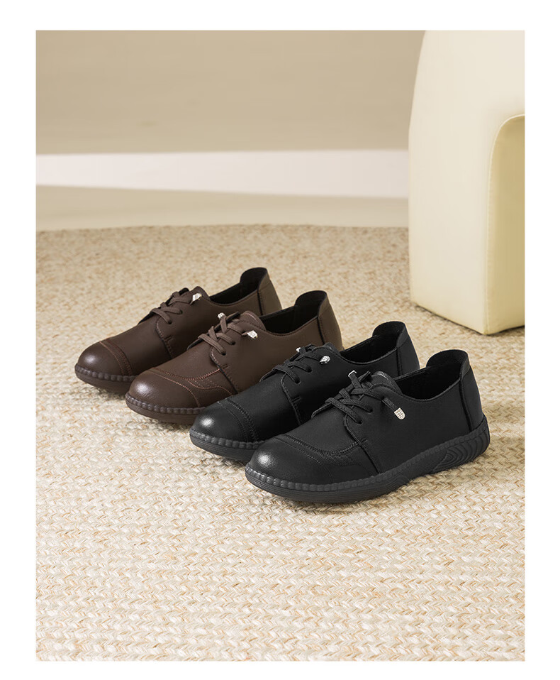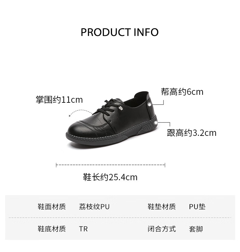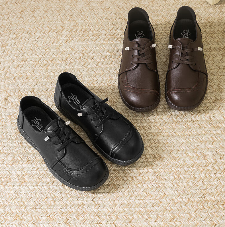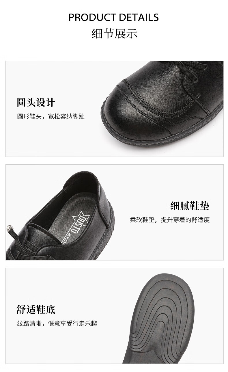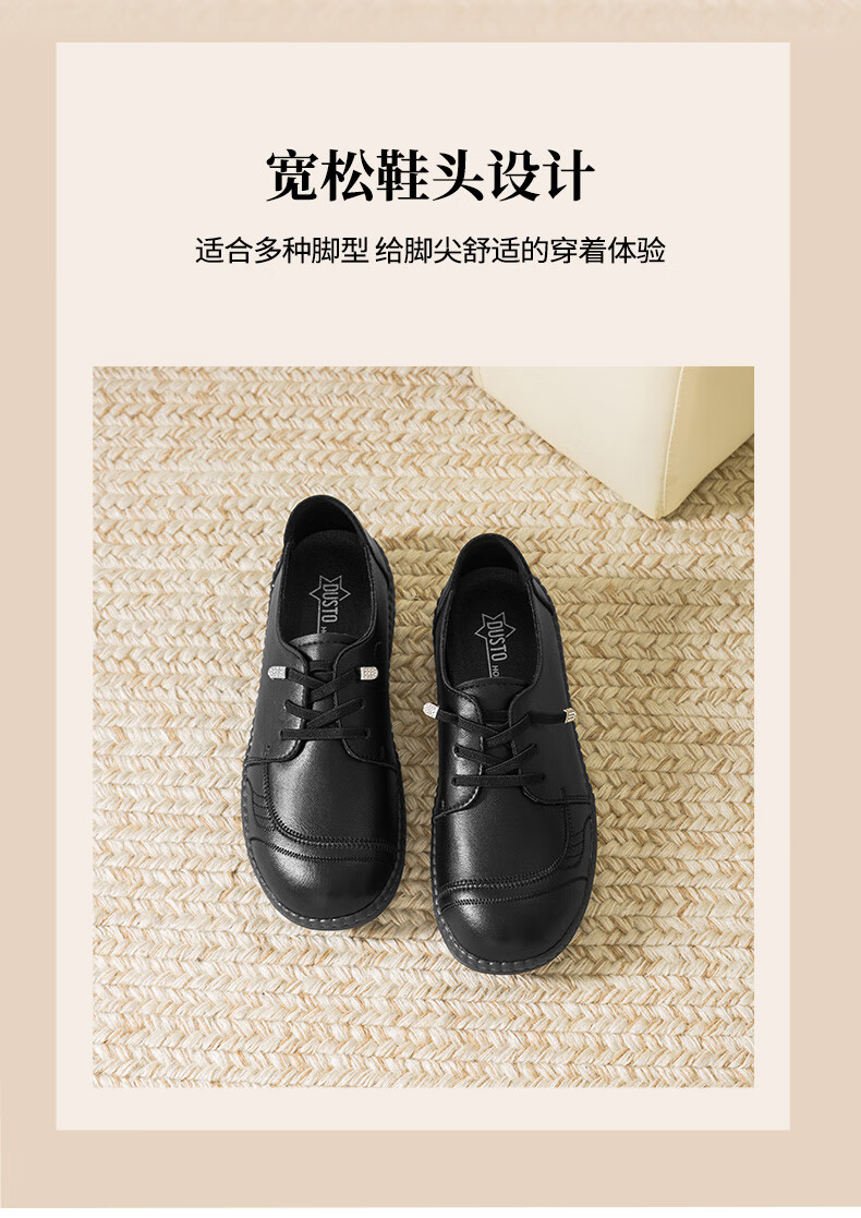 大东乐福鞋女鞋2025秋季新款舒适平底中跟套脚圆头饰扣Q1716 黑色 35