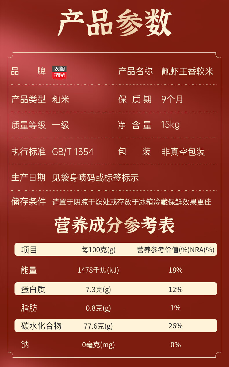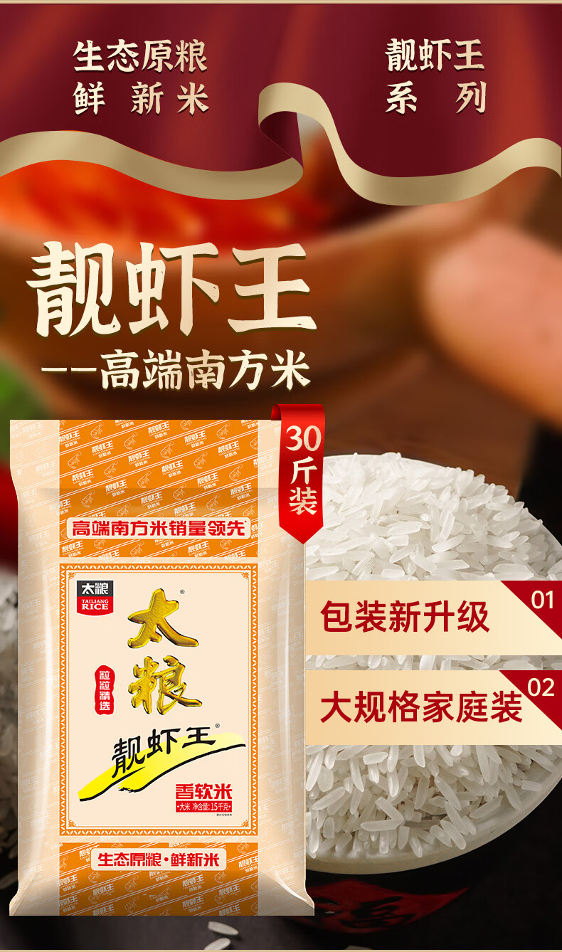 太粮 靓虾王香软米30斤 油粘米籼米 长粒猫牙米 当季新米(全网爆款)