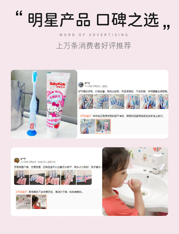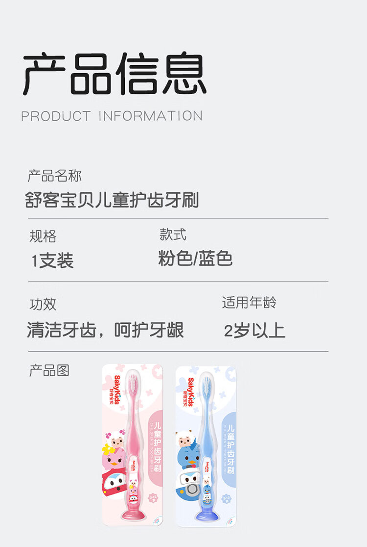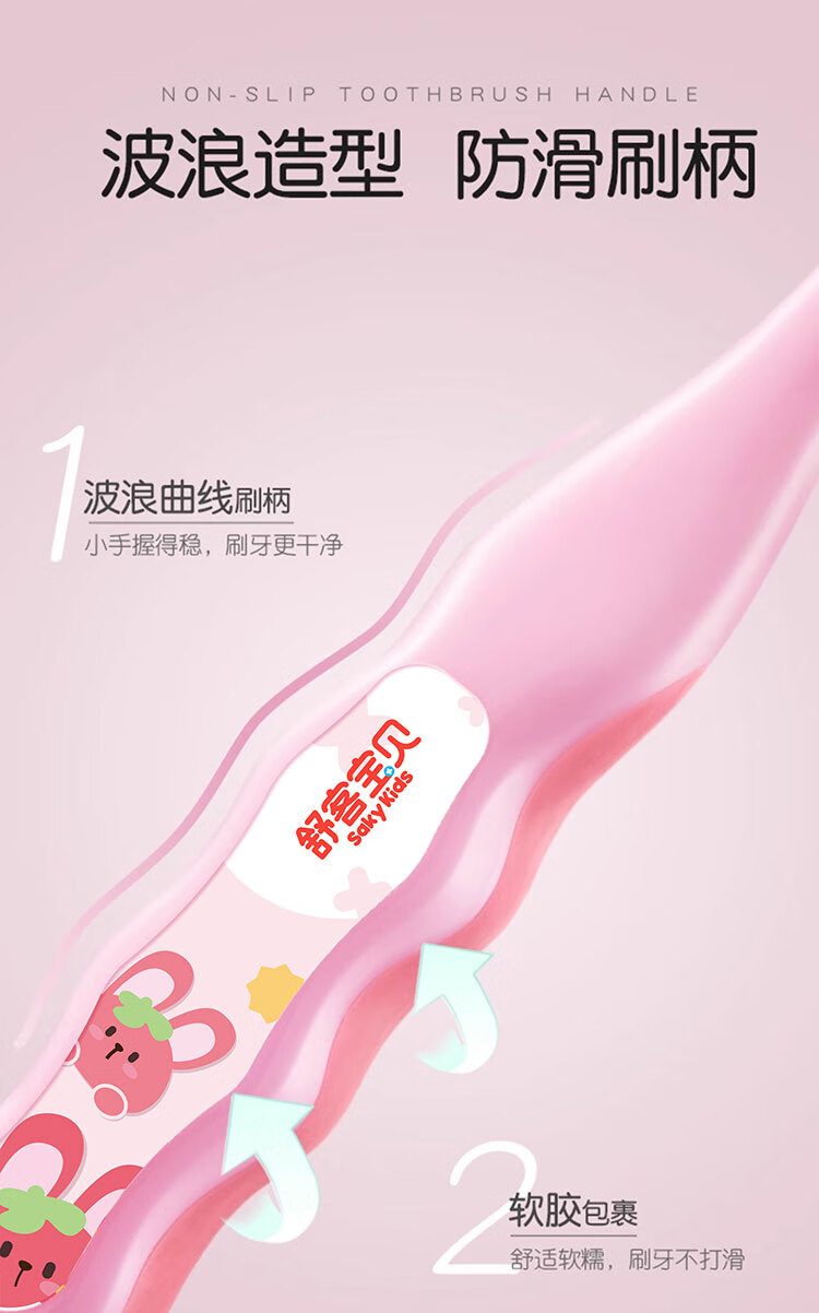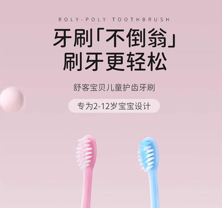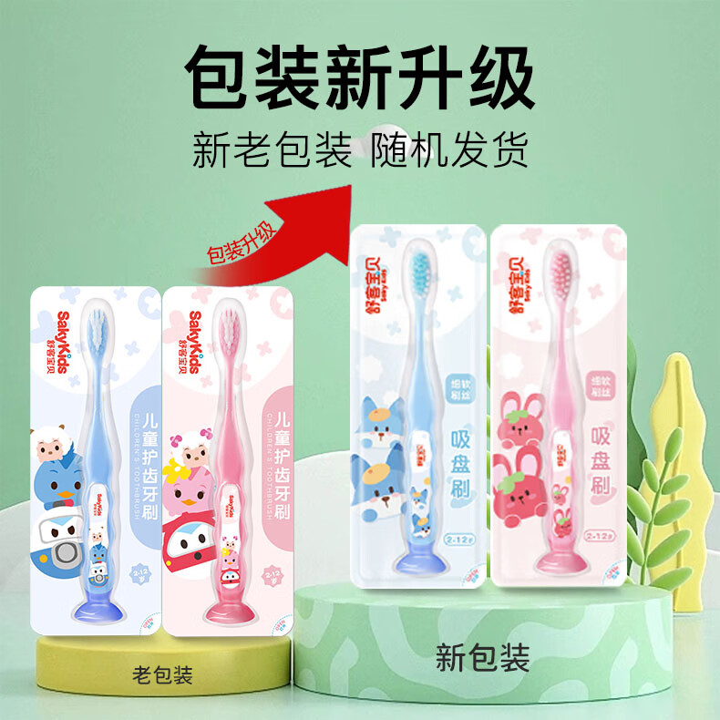 舒客儿童护齿牙刷2-12岁宝宝软毛护龈牙齿清洁吸盘底座防滑 软毛 6支 【蓝+粉各3支】